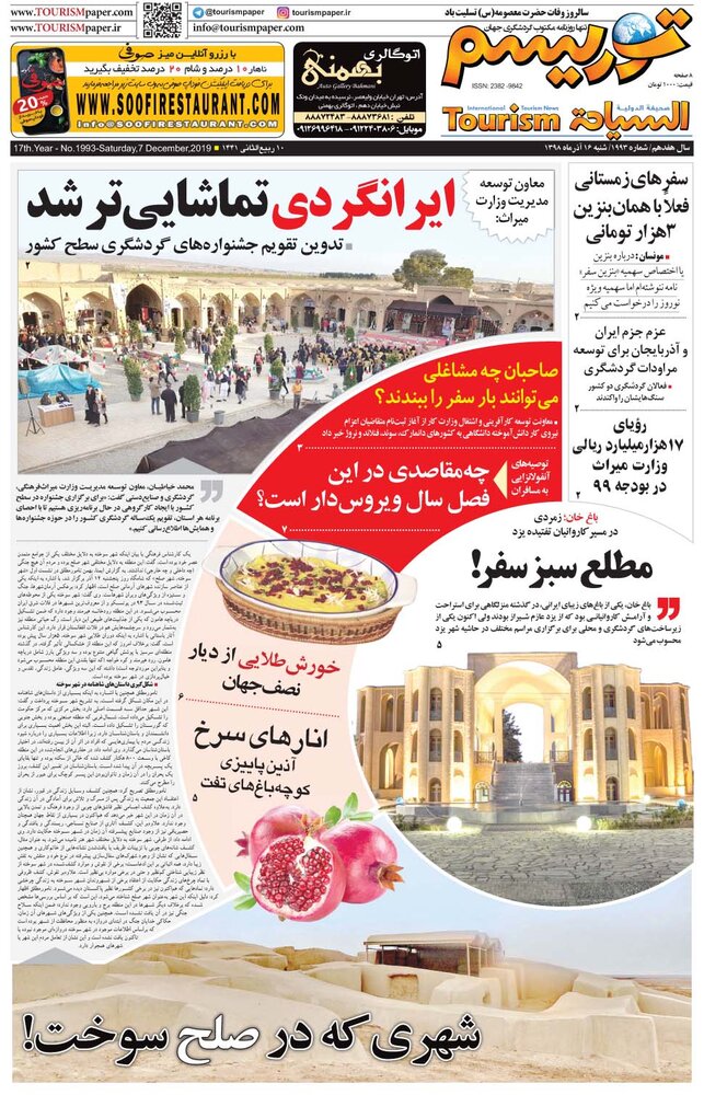 خانه/فرهنگ و هنر/رسانه/ایرانگردی تماشایی تر شد رسانه ایرانگردی تماشایی تر شد نگاهی به جلد امروز روزنامه توریسم 16 آذر 13980 فیس بوک توییتر لینکدین پینترست نگاهی به جلد روزنامه توریسم امروز. امتیاز کاربر: اولین نفر باشید ! برچسب هاروزنامه روزنامه توریسم روزنامه توریسم امروز سفر گردشگری 16 آذر 13980 فیس بوک توییتر لینکدین پینترست