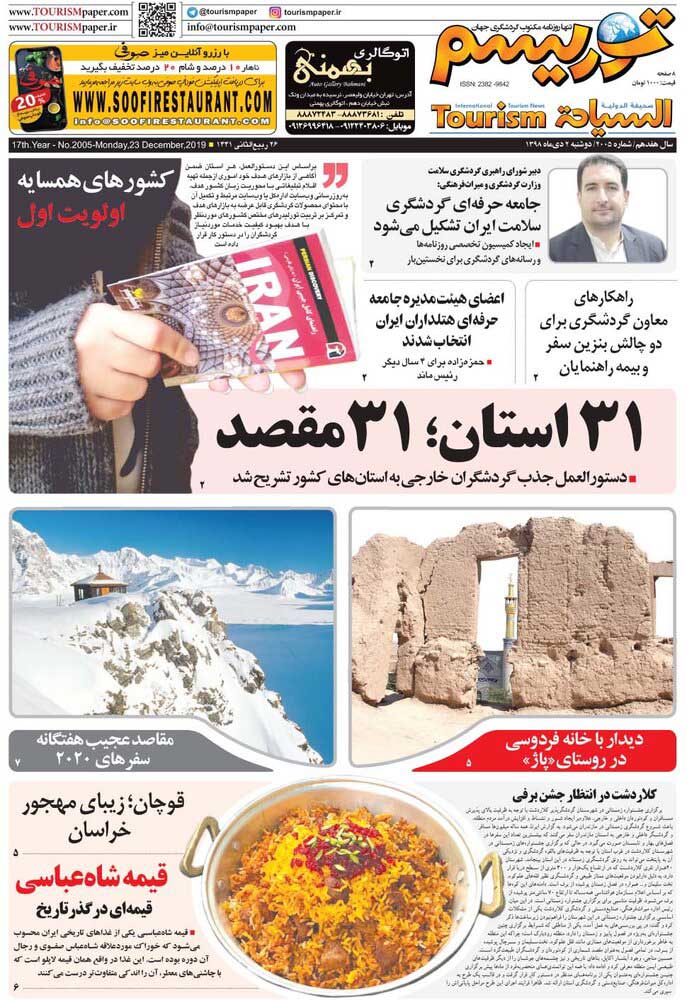 جلد روزنامه توریسم امروز دوم دی ماه را ببینید.