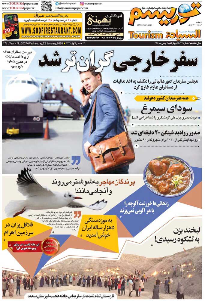 صفحه اول روزنامه توریسم چهارشنبه دوم بهمن ماه را ببینید.