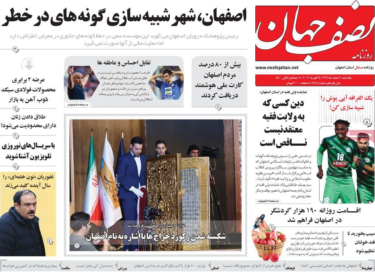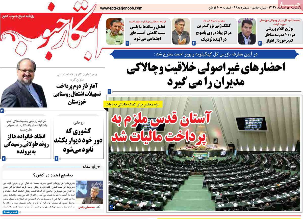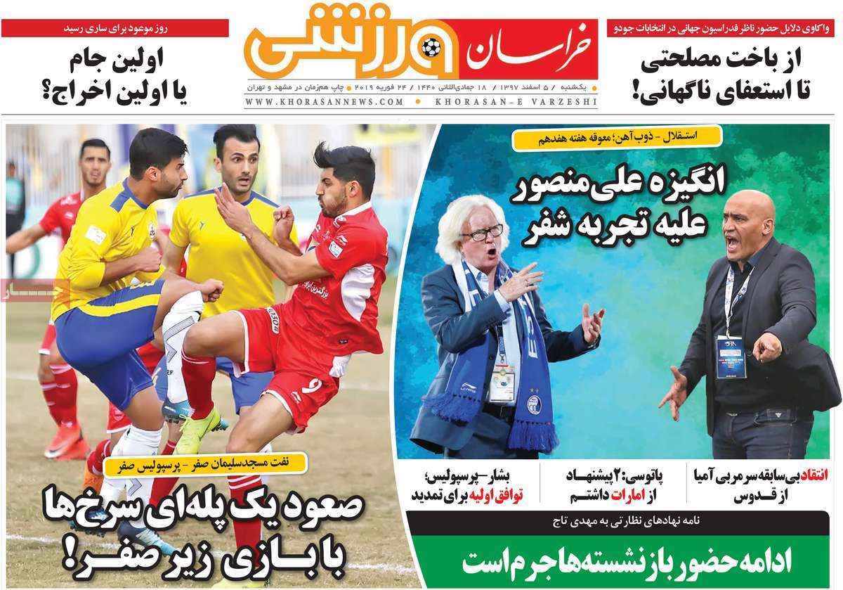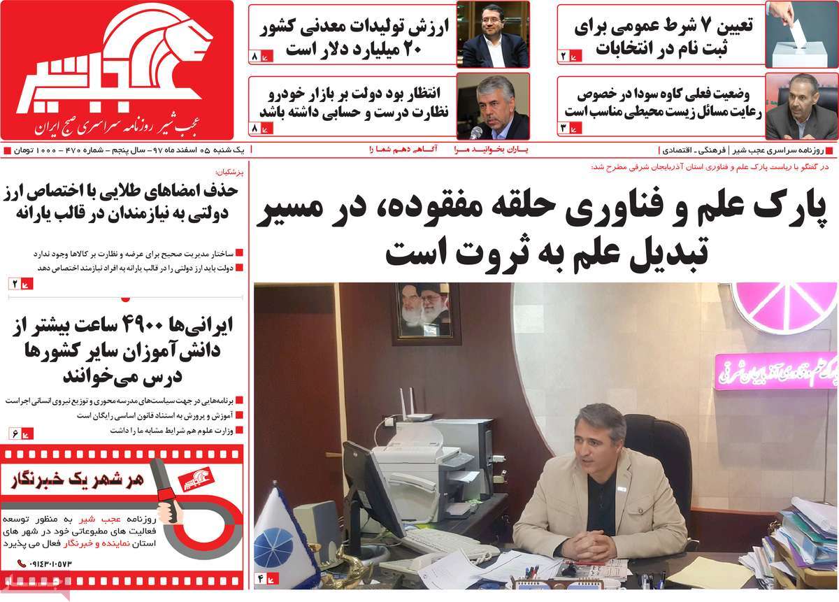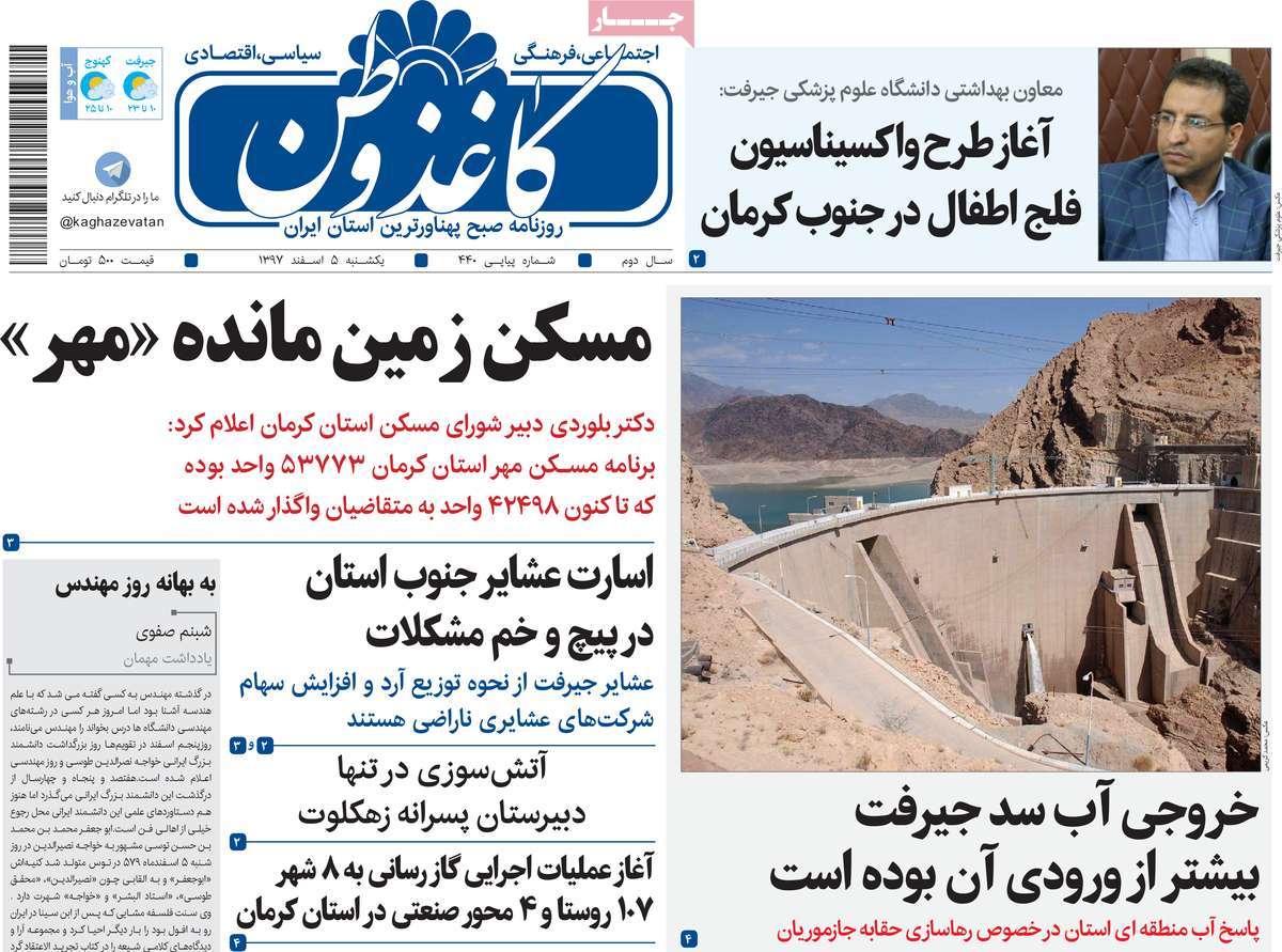 صفحه اول روزنامه های کشوری و استانی؛ یکشنبه پنجم اسفند ماه 1397 /تصاویر