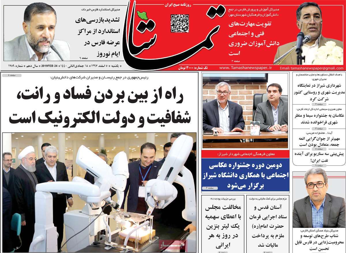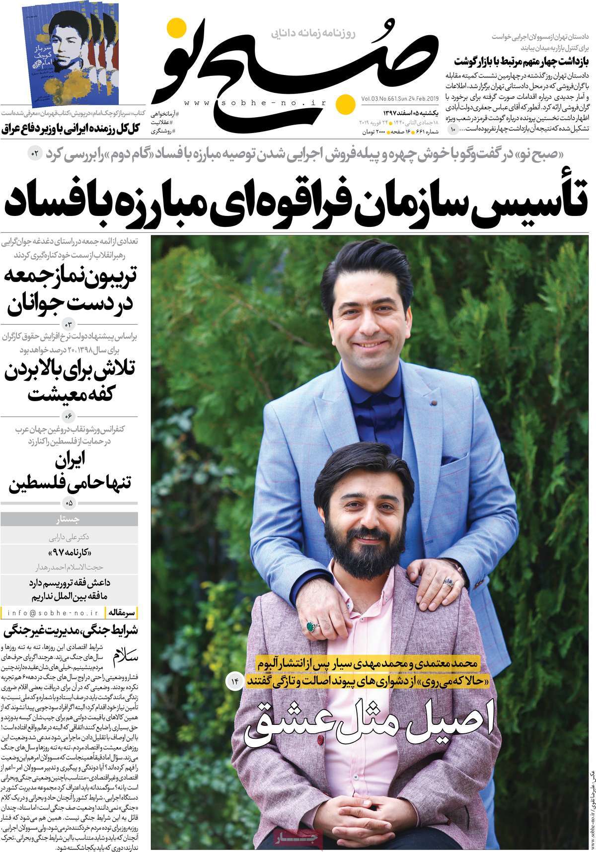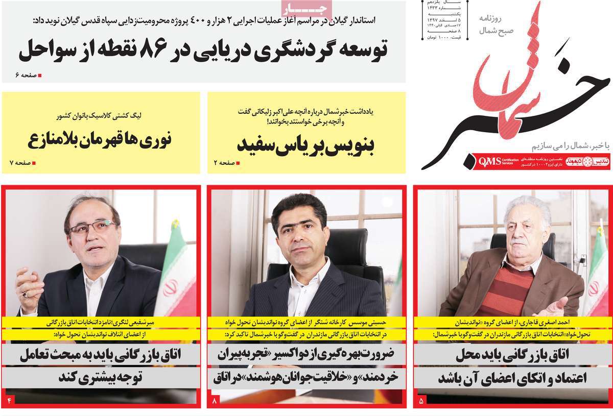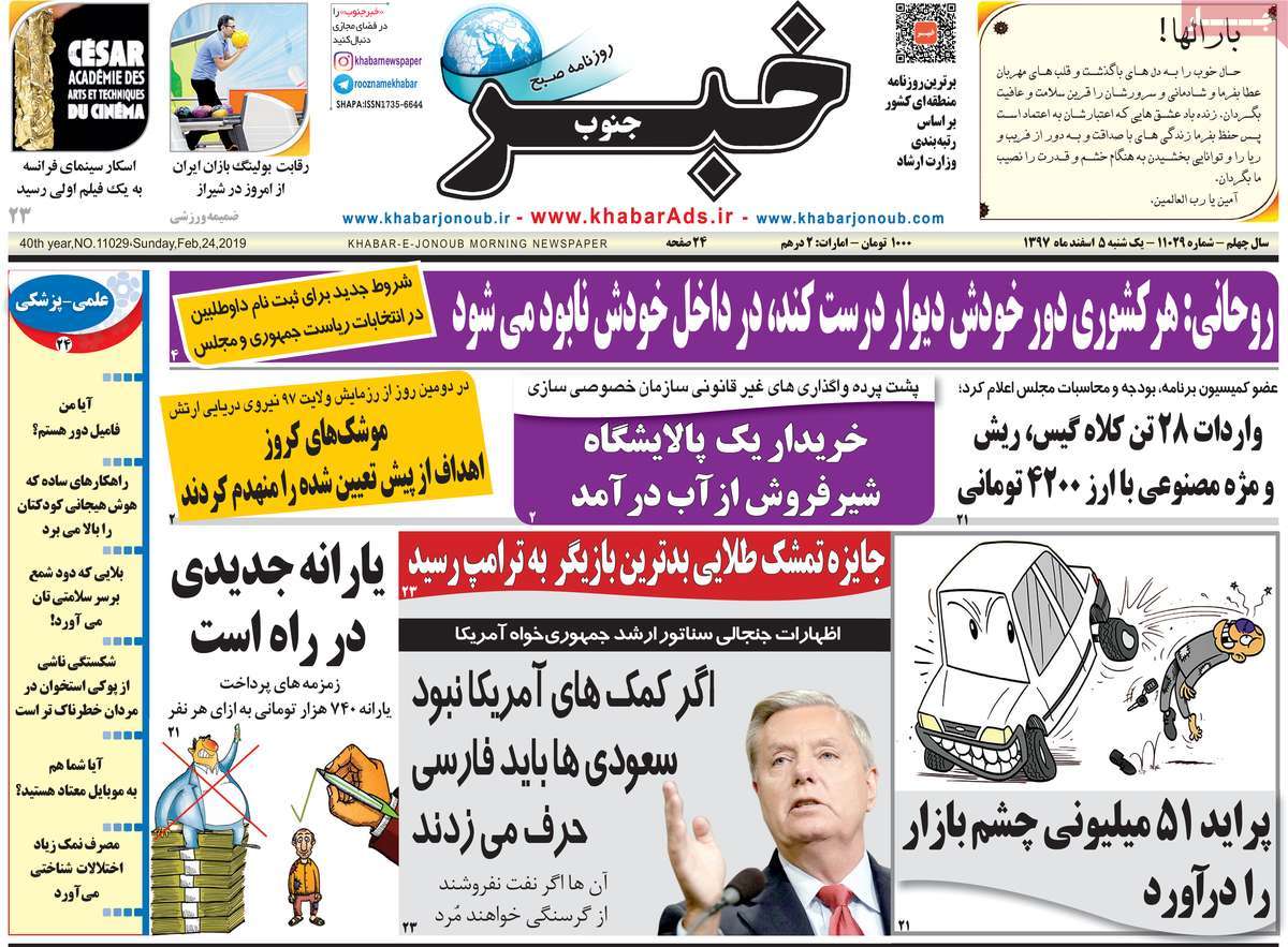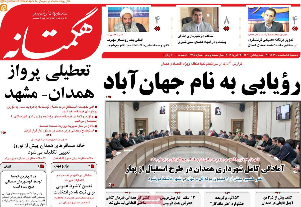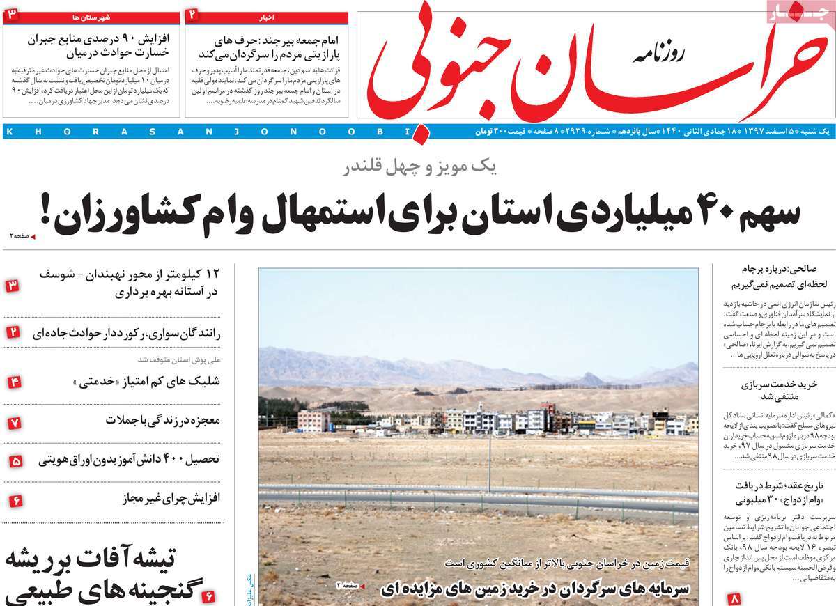 صفحه اول روزنامه های کشوری و استانی؛ یکشنبه پنجم اسفند ماه 1397 /تصاویر