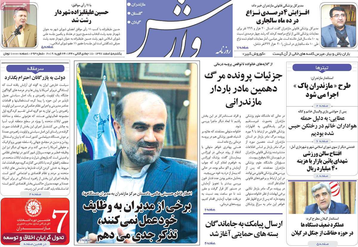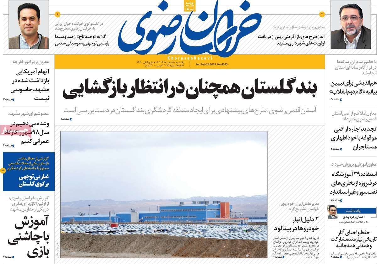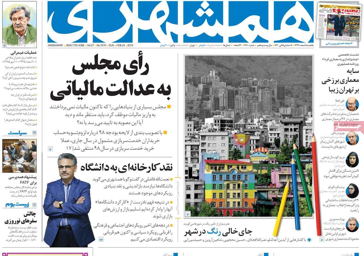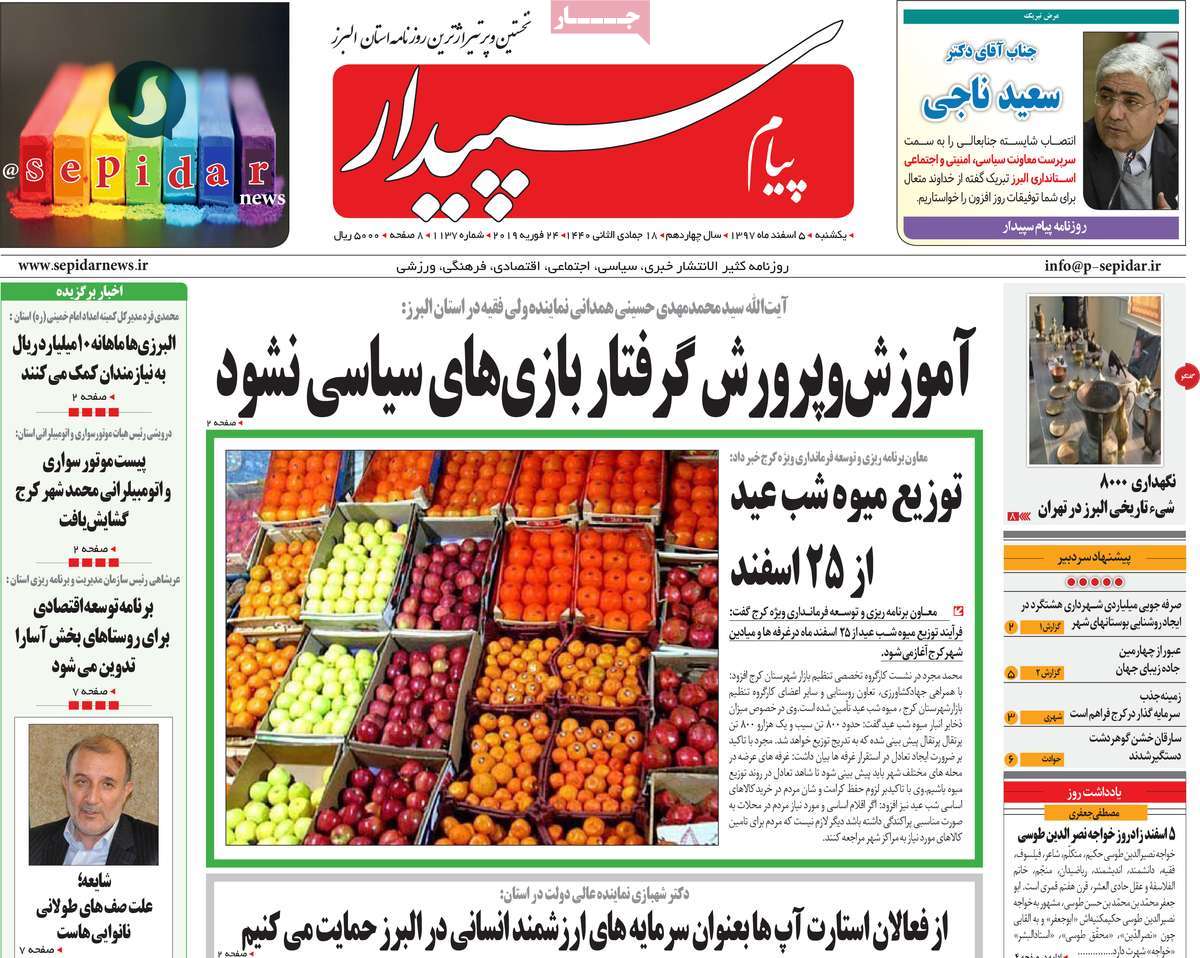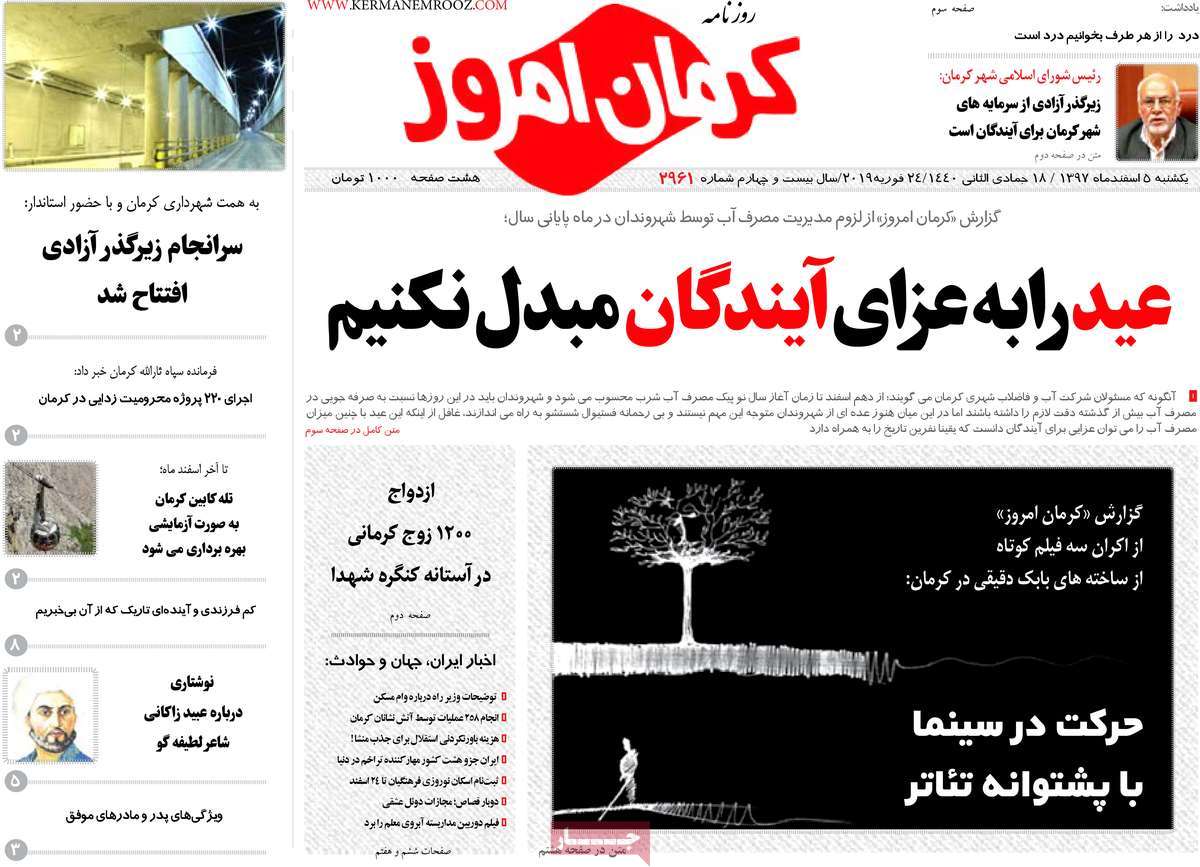 صفحه اول روزنامه های کشوری و استانی؛ یکشنبه پنجم اسفند ماه 1397 /تصاویر