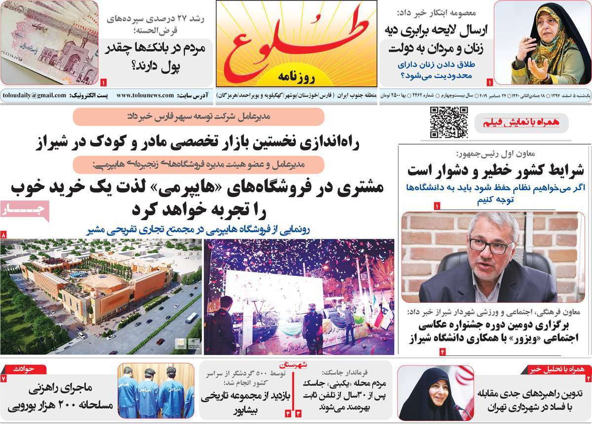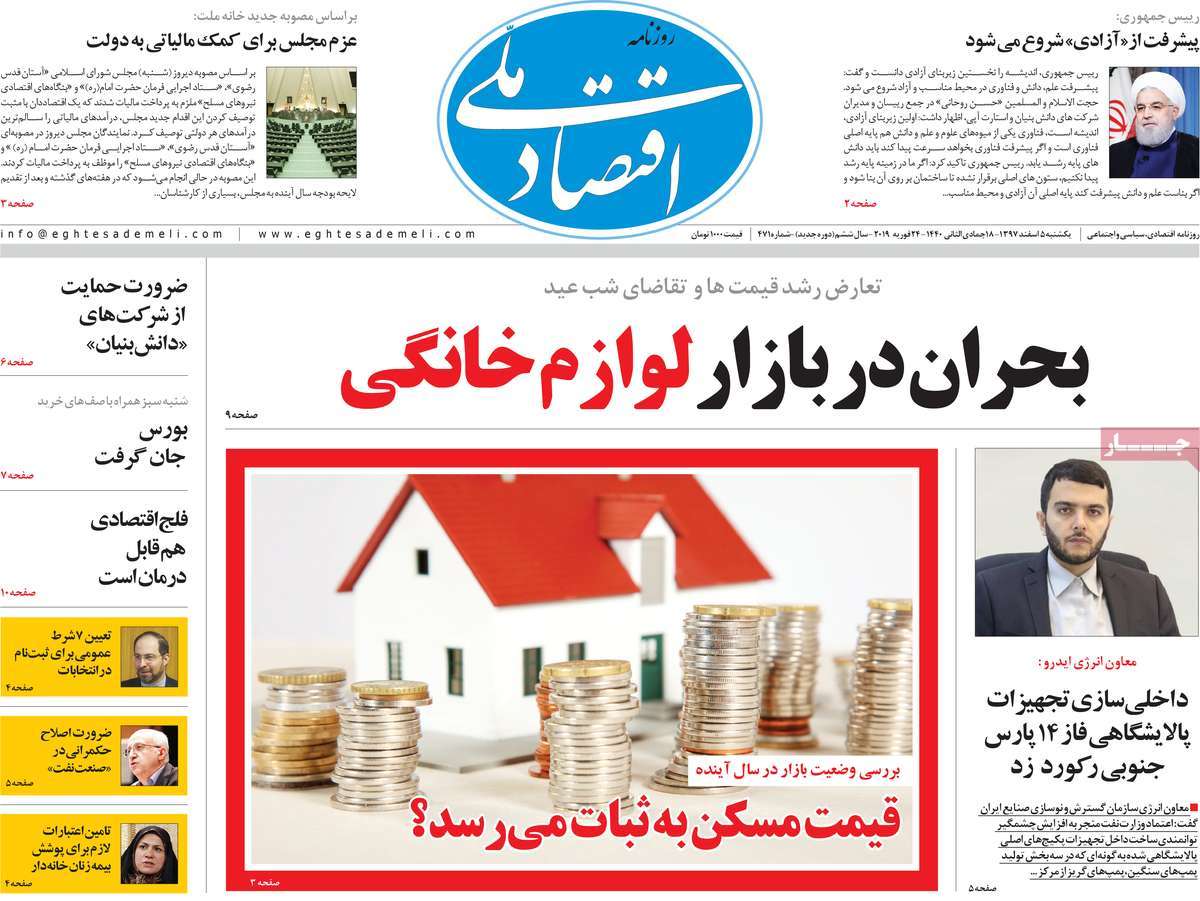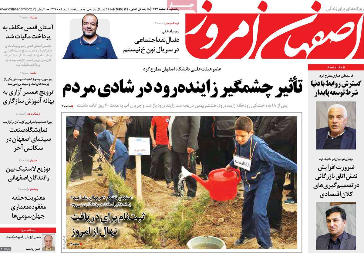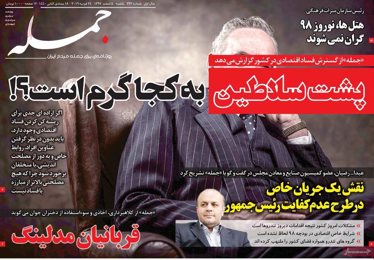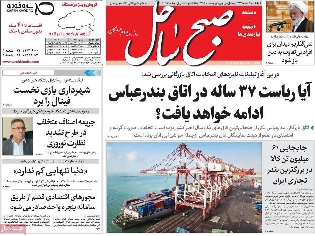 صفحه اول روزنامه های کشوری و استانی؛ یکشنبه پنجم اسفند ماه 1397 /تصاویر