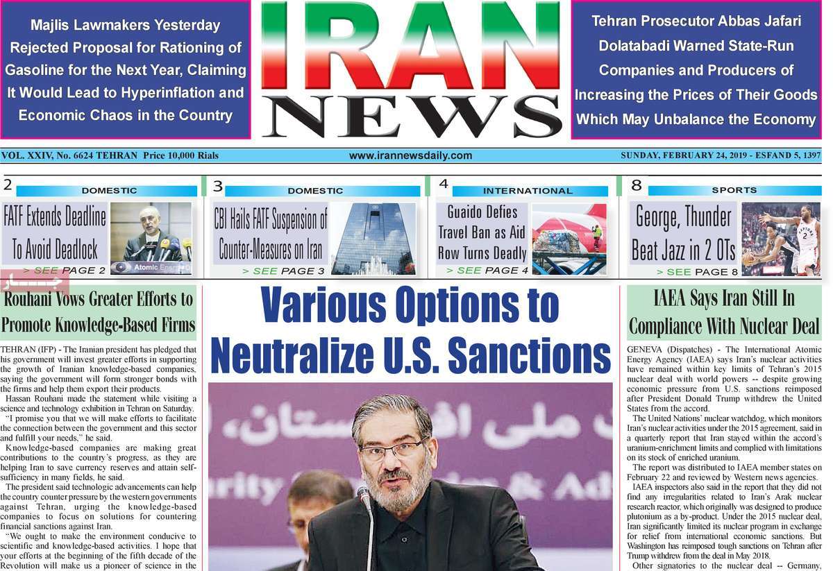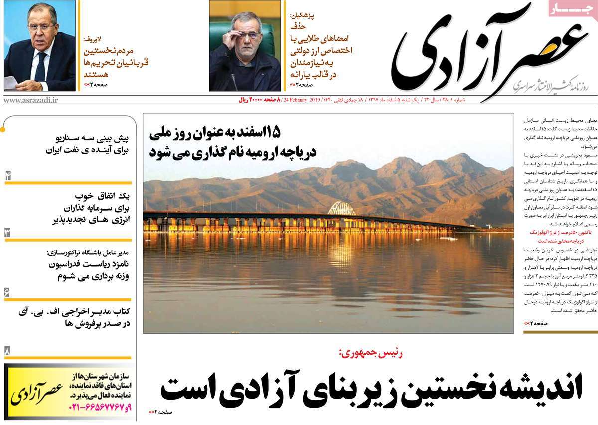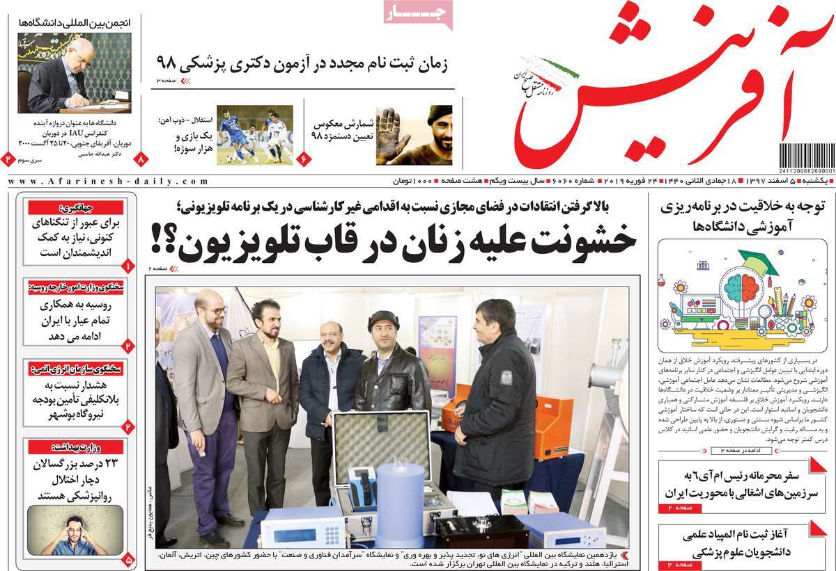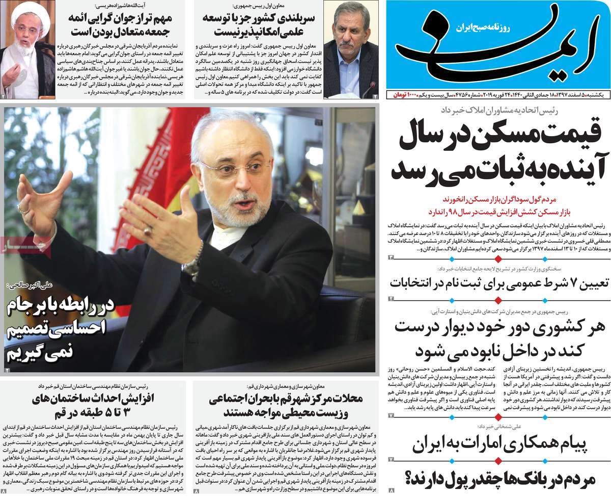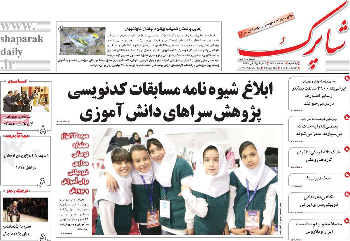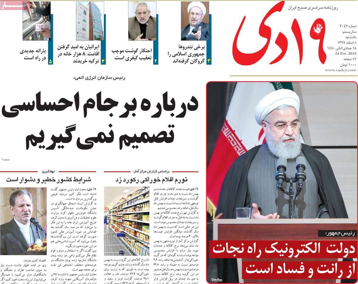 صفحه اول روزنامه های کشوری و استانی؛ یکشنبه پنجم اسفند ماه 1397 /تصاویر