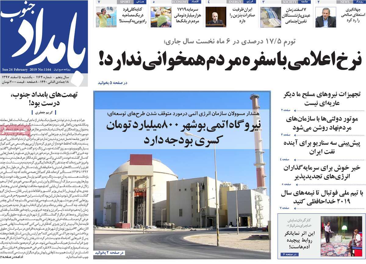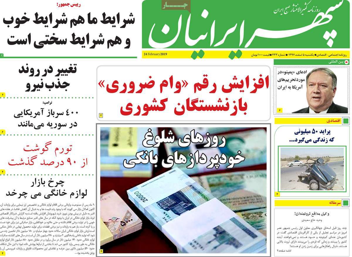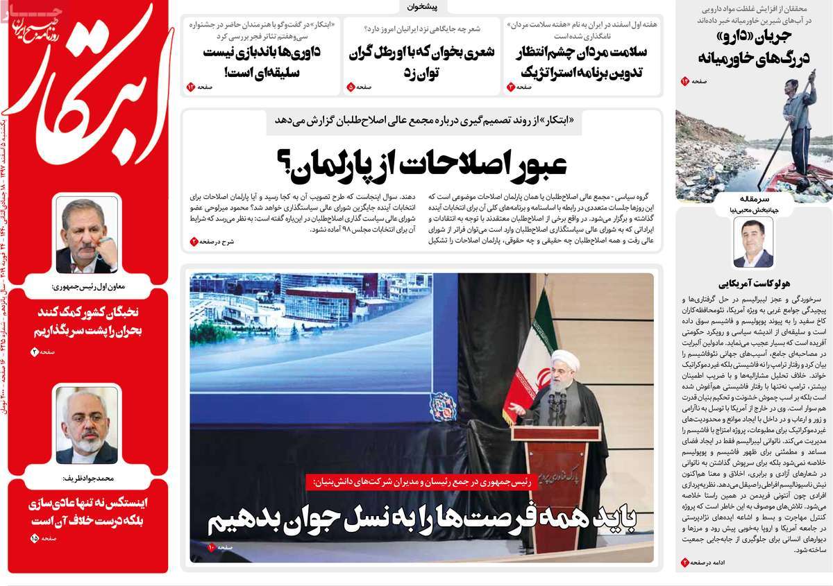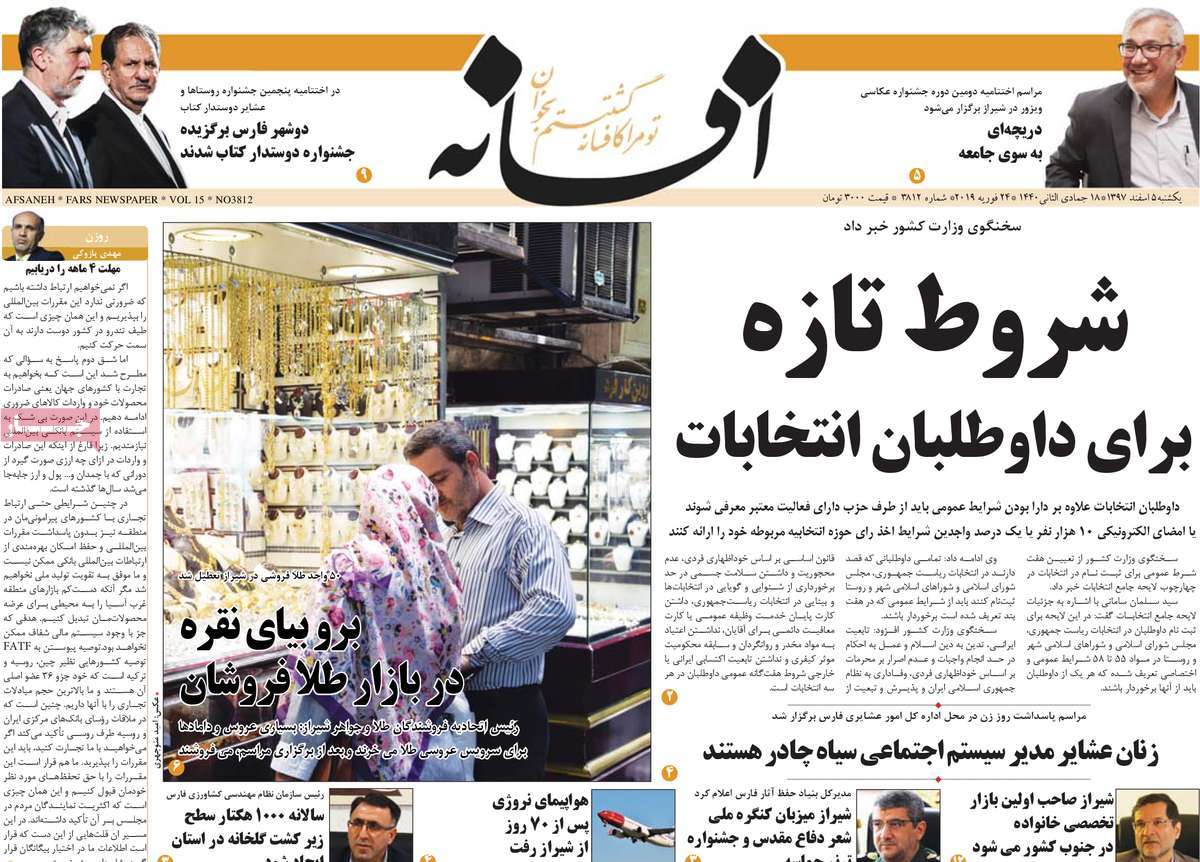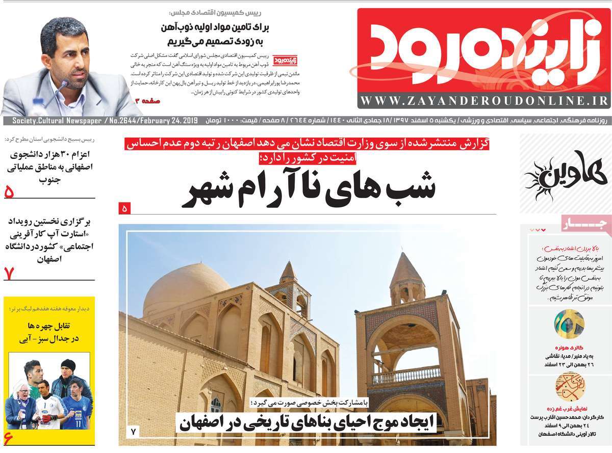 صفحه اول روزنامه های کشوری و استانی؛ یکشنبه پنجم اسفند ماه 1397 /تصاویر