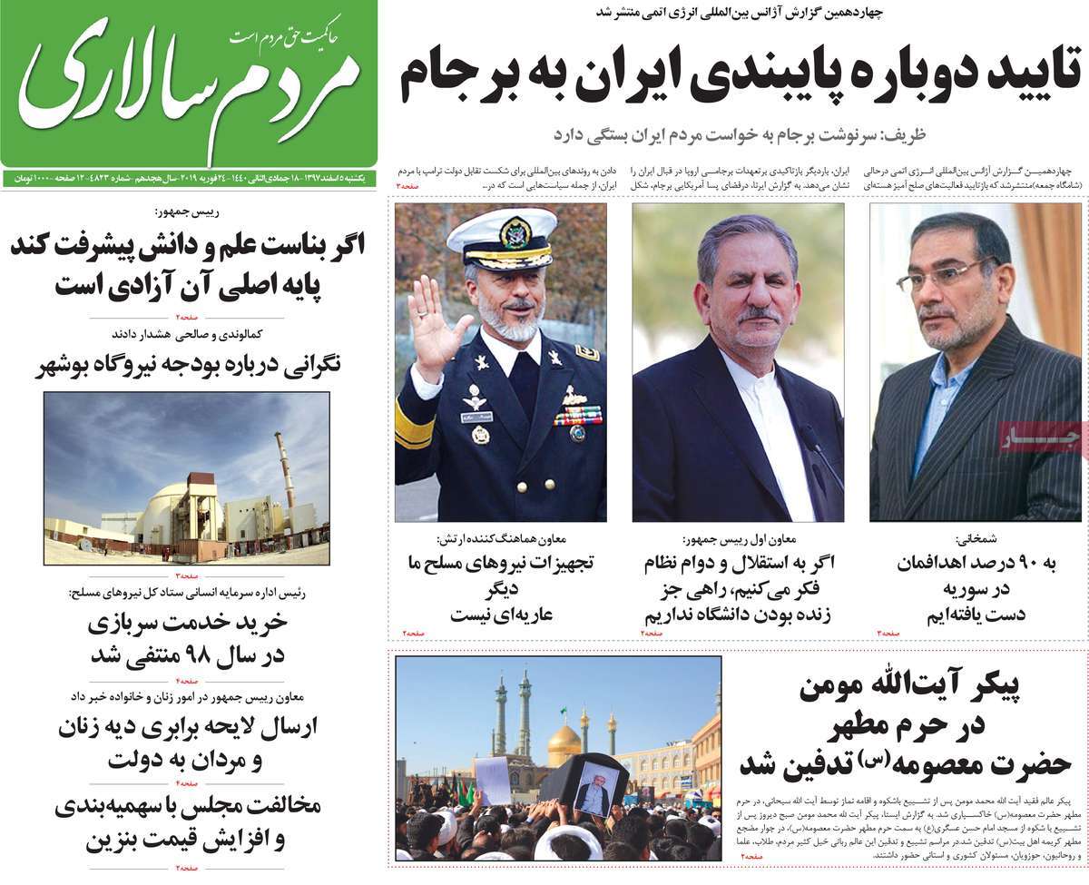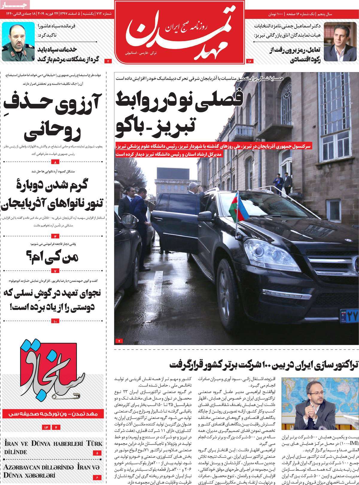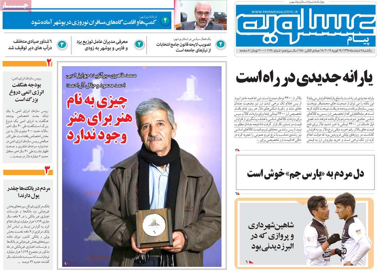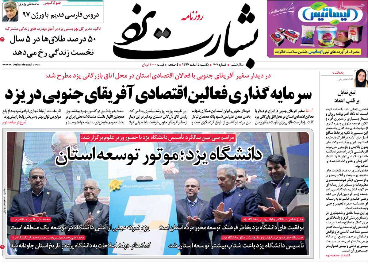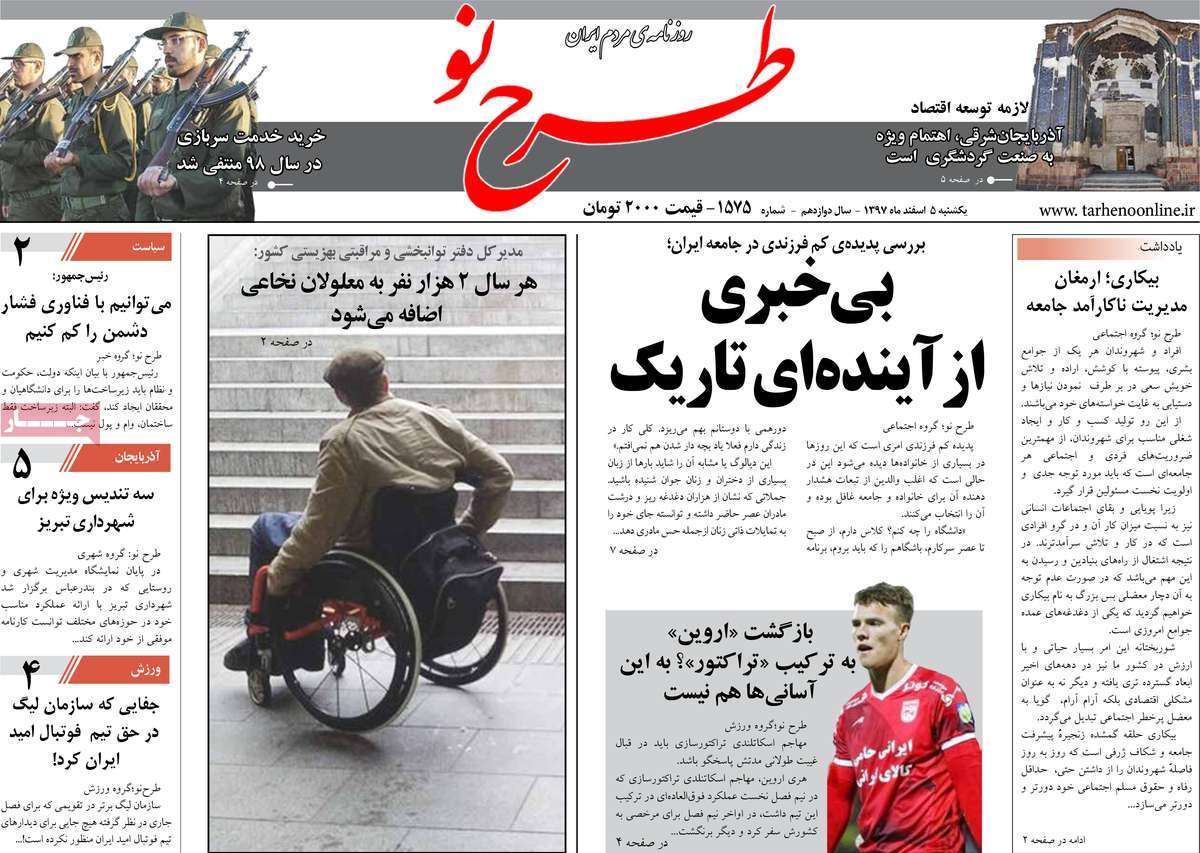صفحه اول روزنامه های کشوری و استانی؛ یکشنبه پنجم اسفند ماه 1397 /تصاویر