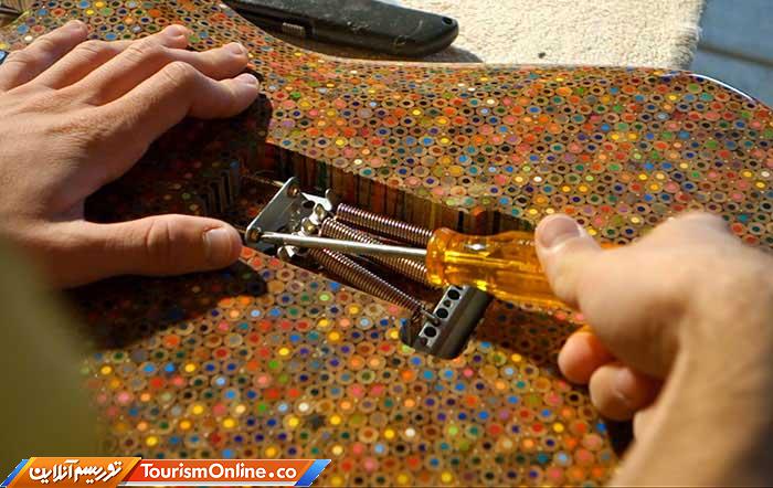 «روکاس ال» که خود نوازنده گیتار است ،گیتار جالبی را با استفاده از یک هزار و ۲۰۰ مداد رنگی ساخته است.