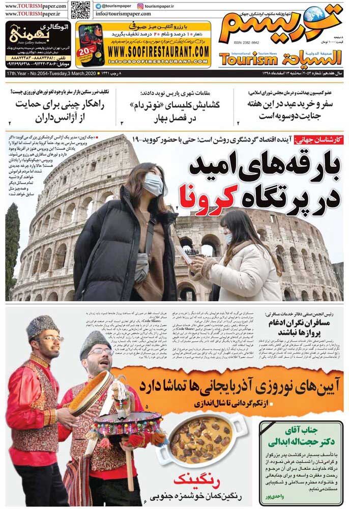 صفحه اول روزنامه توریسم امروز را ببینید.