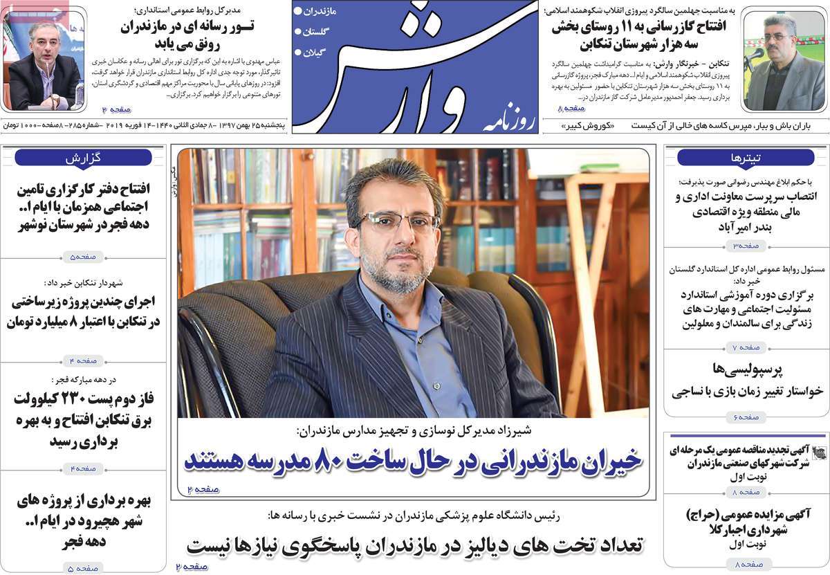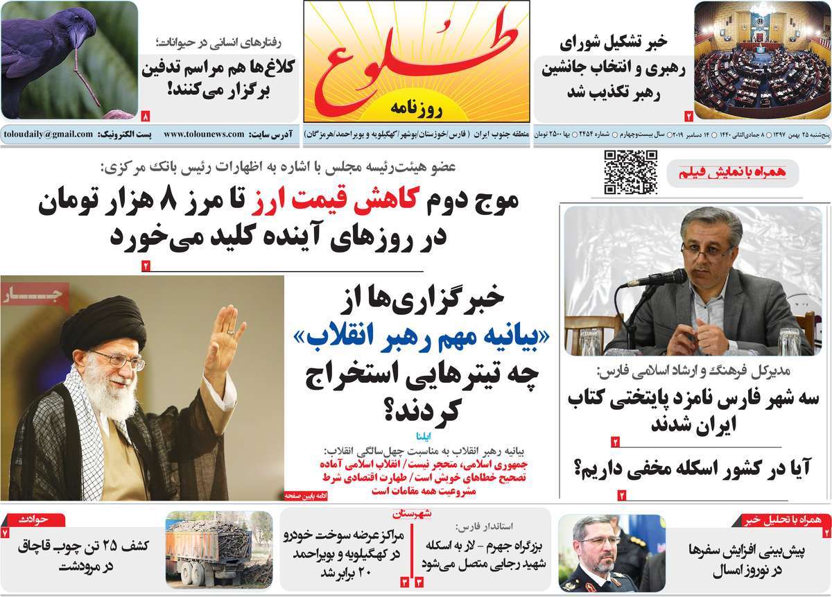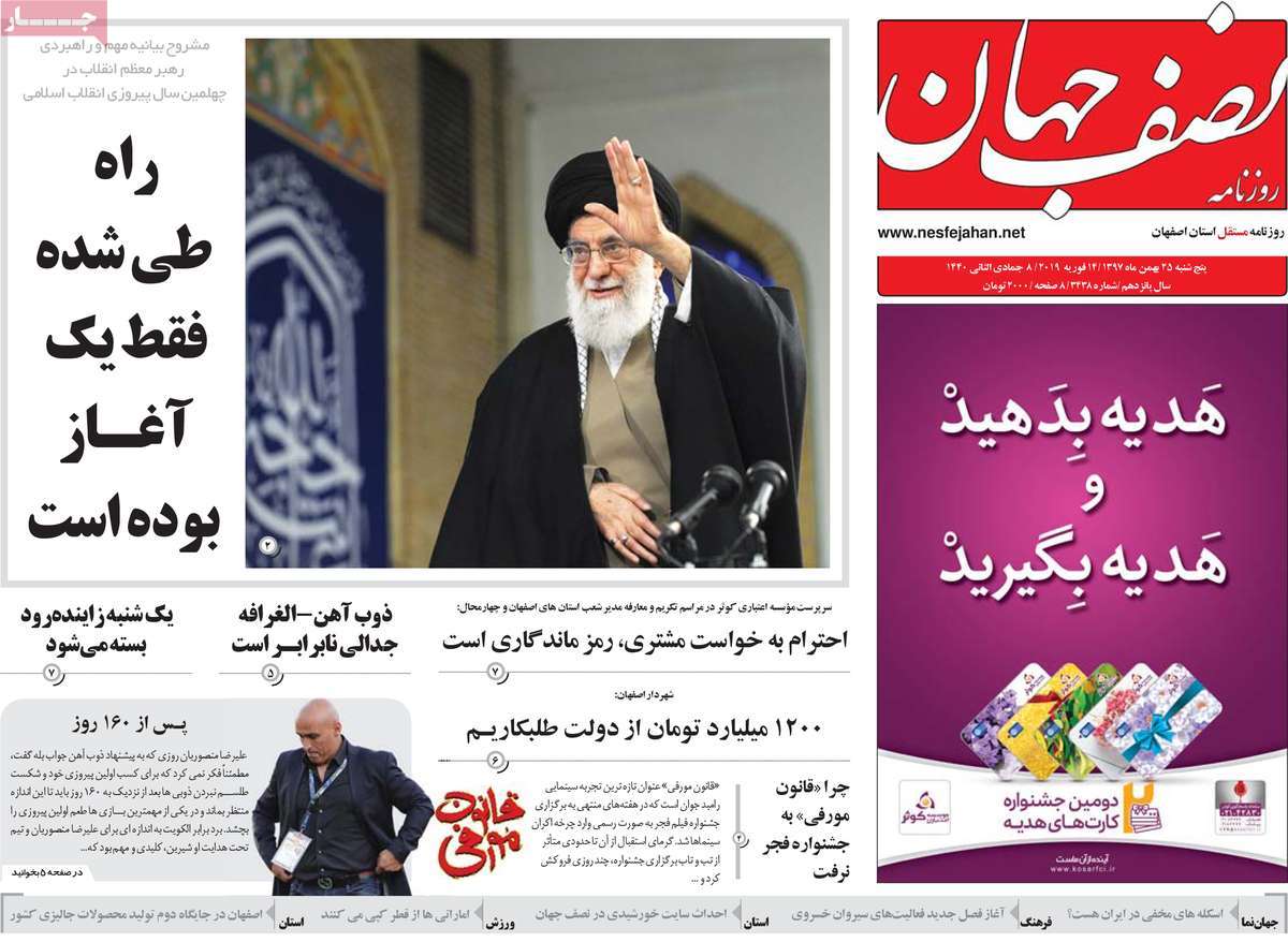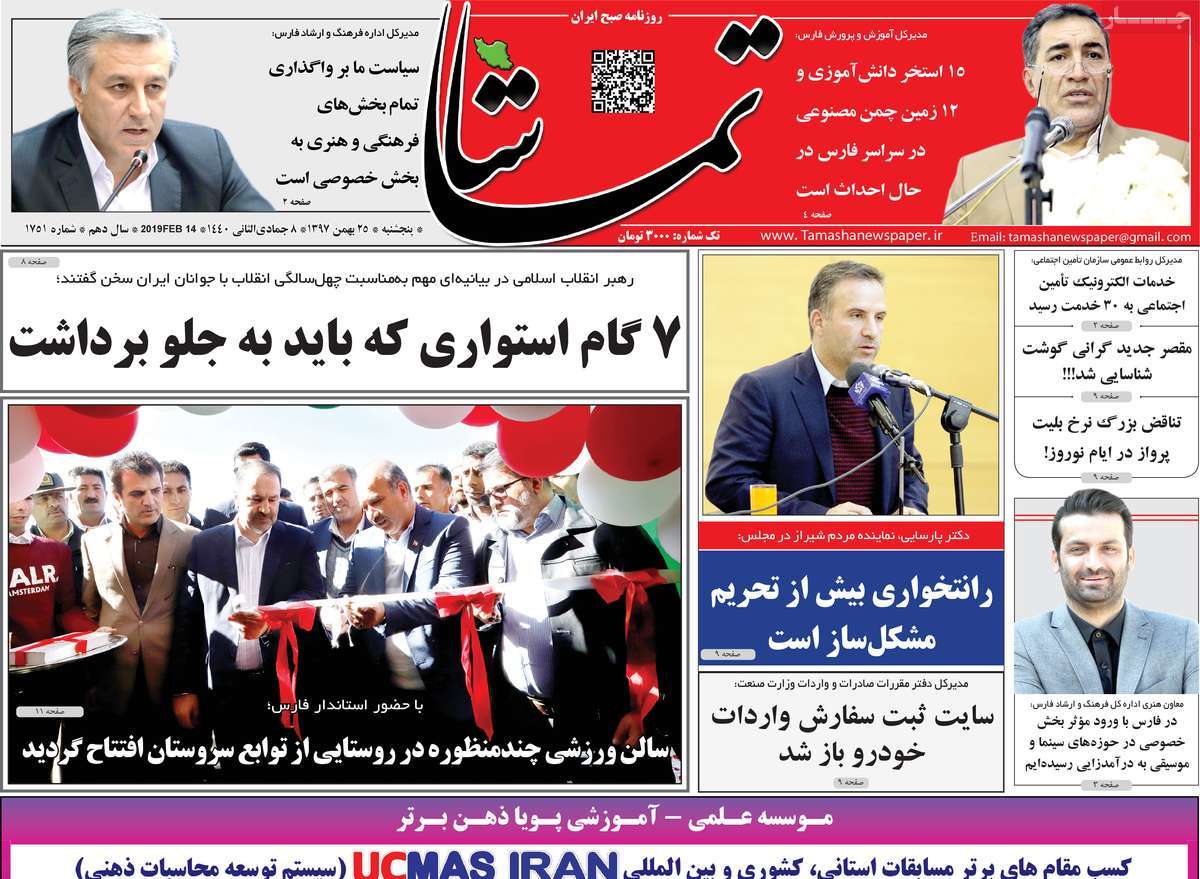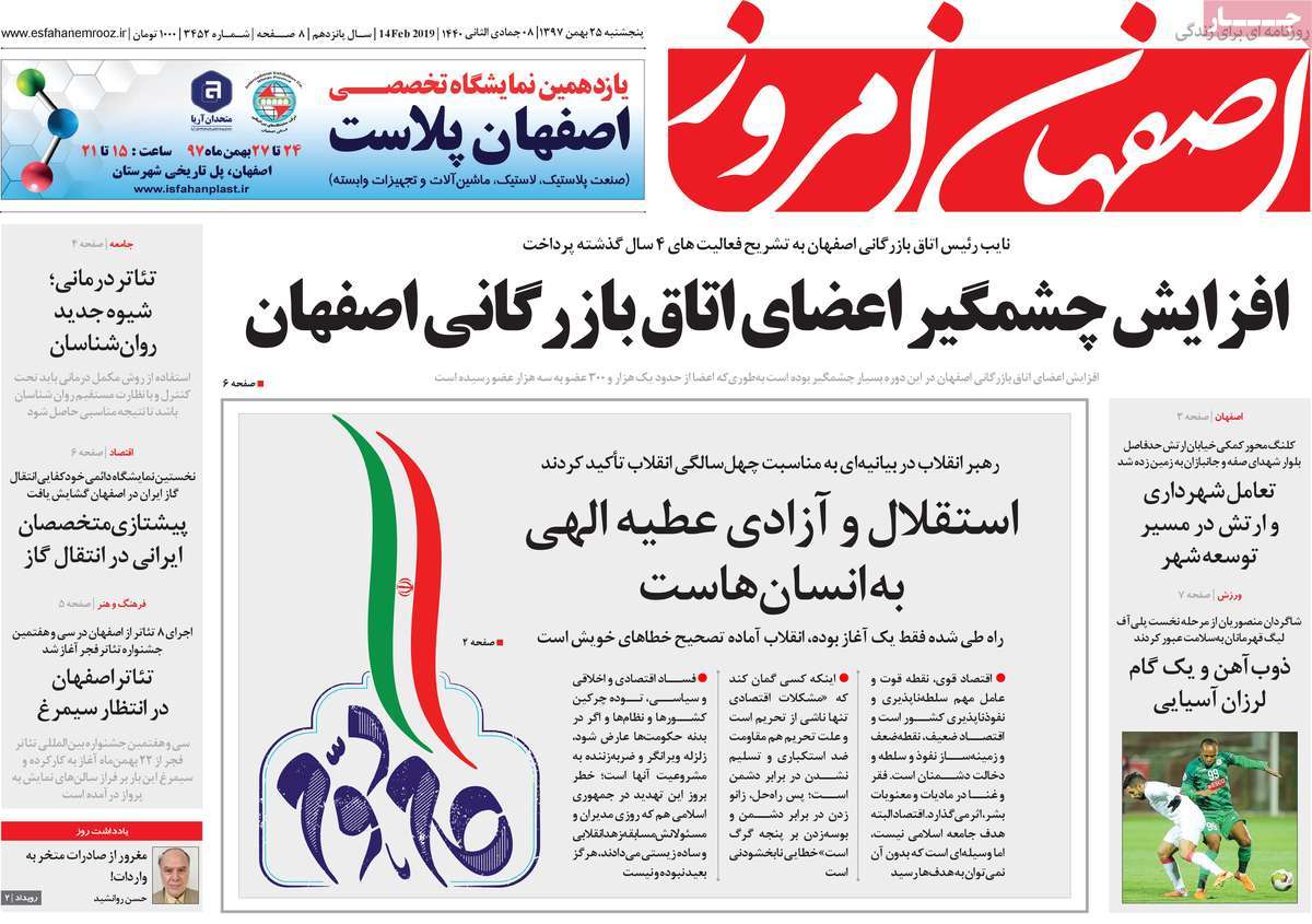 صفحه اول روزنامه های کشوری و استانی؛ پنج شنبه 25 بهمن ماه 1397 /تصاویر