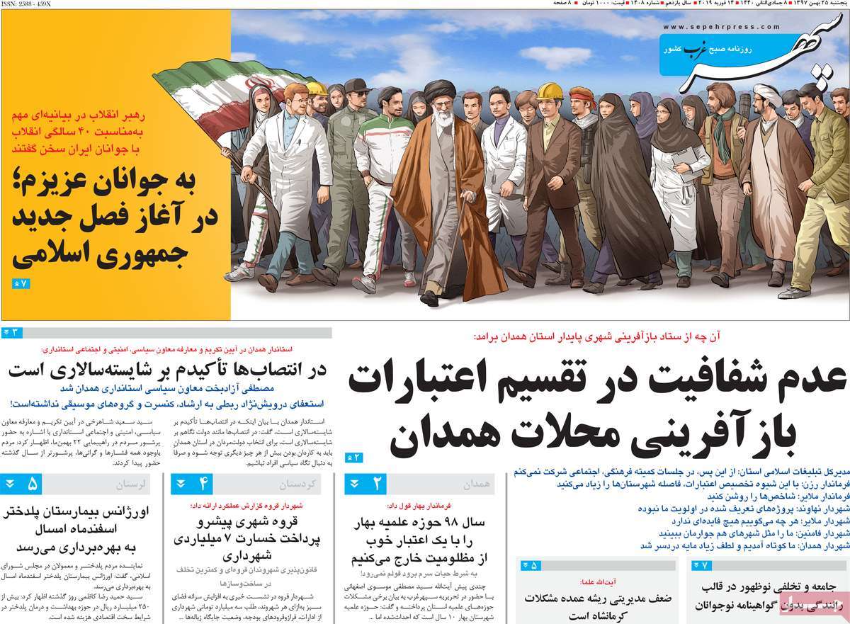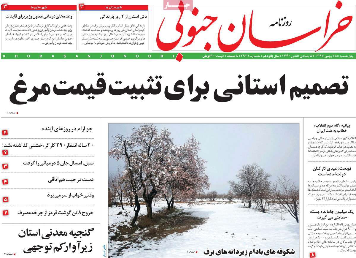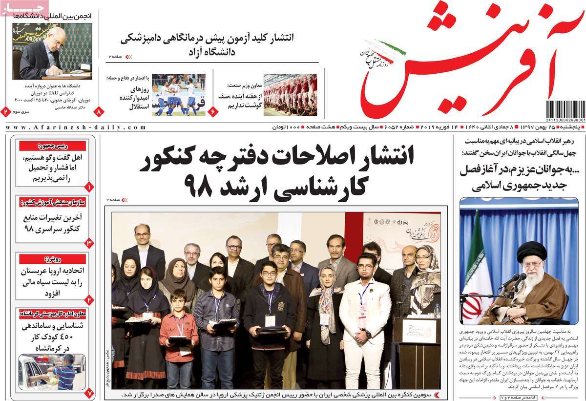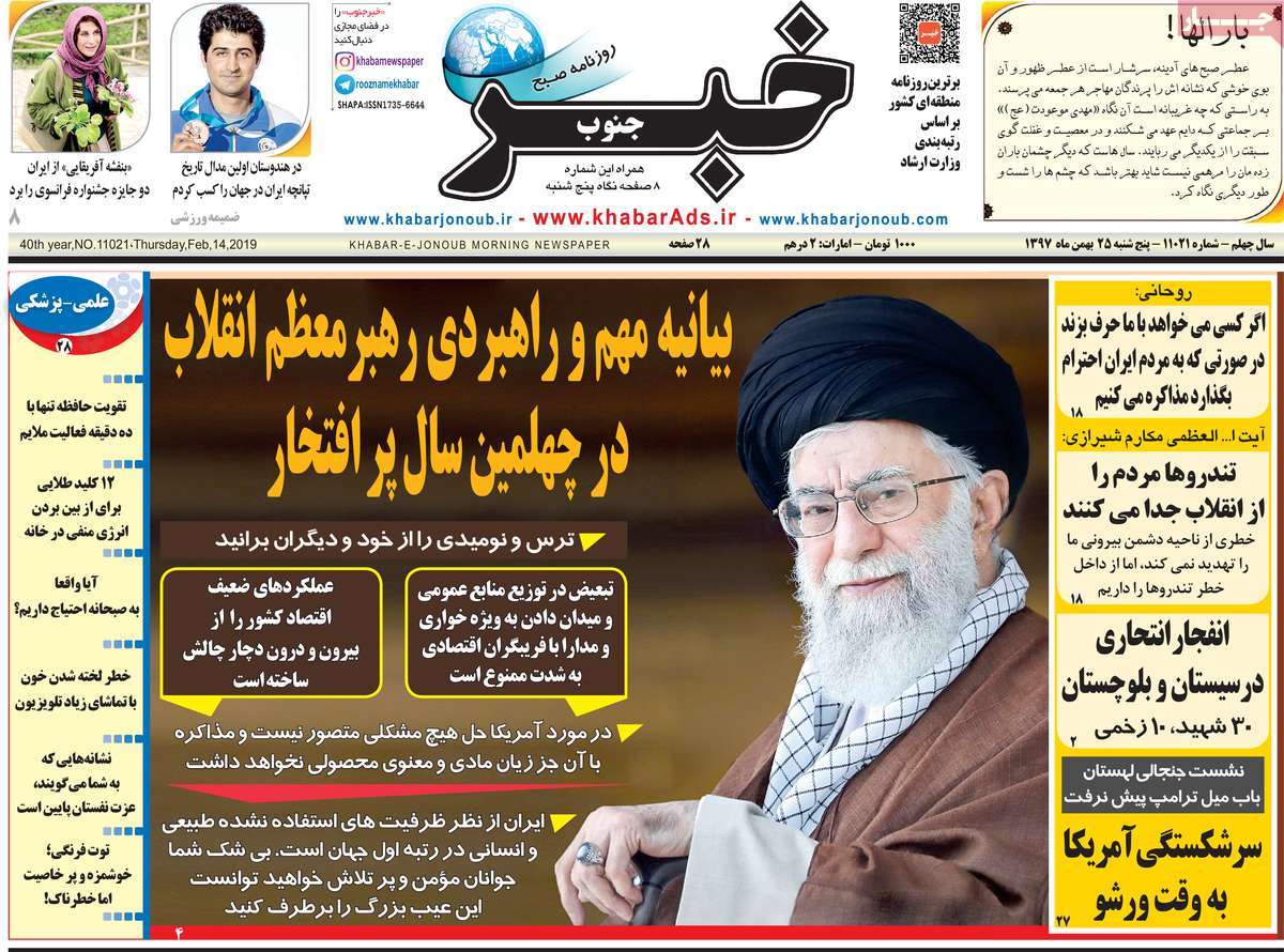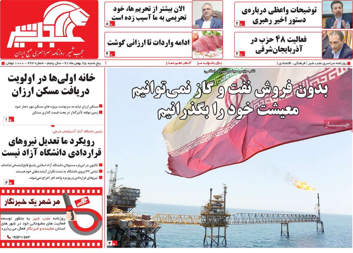 صفحه اول روزنامه های کشوری و استانی؛ پنج شنبه 25 بهمن ماه 1397 /تصاویر