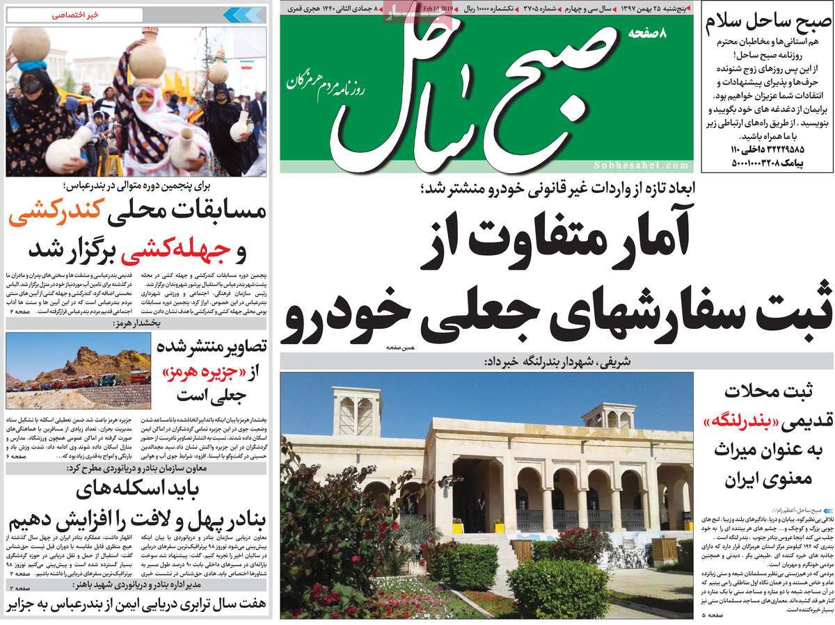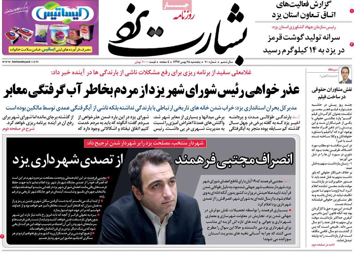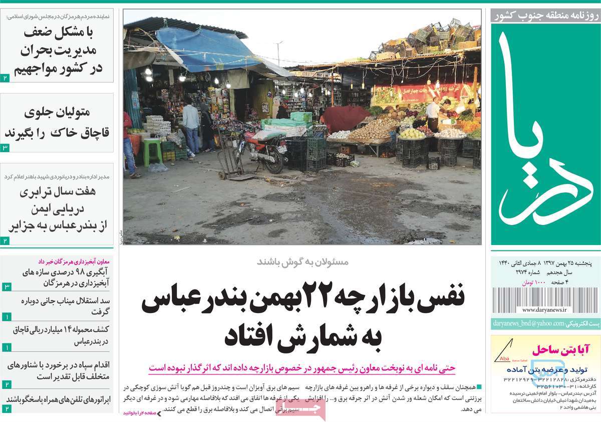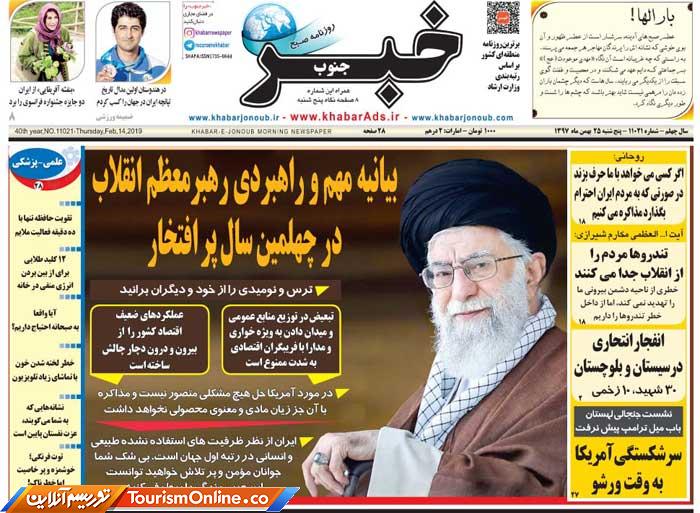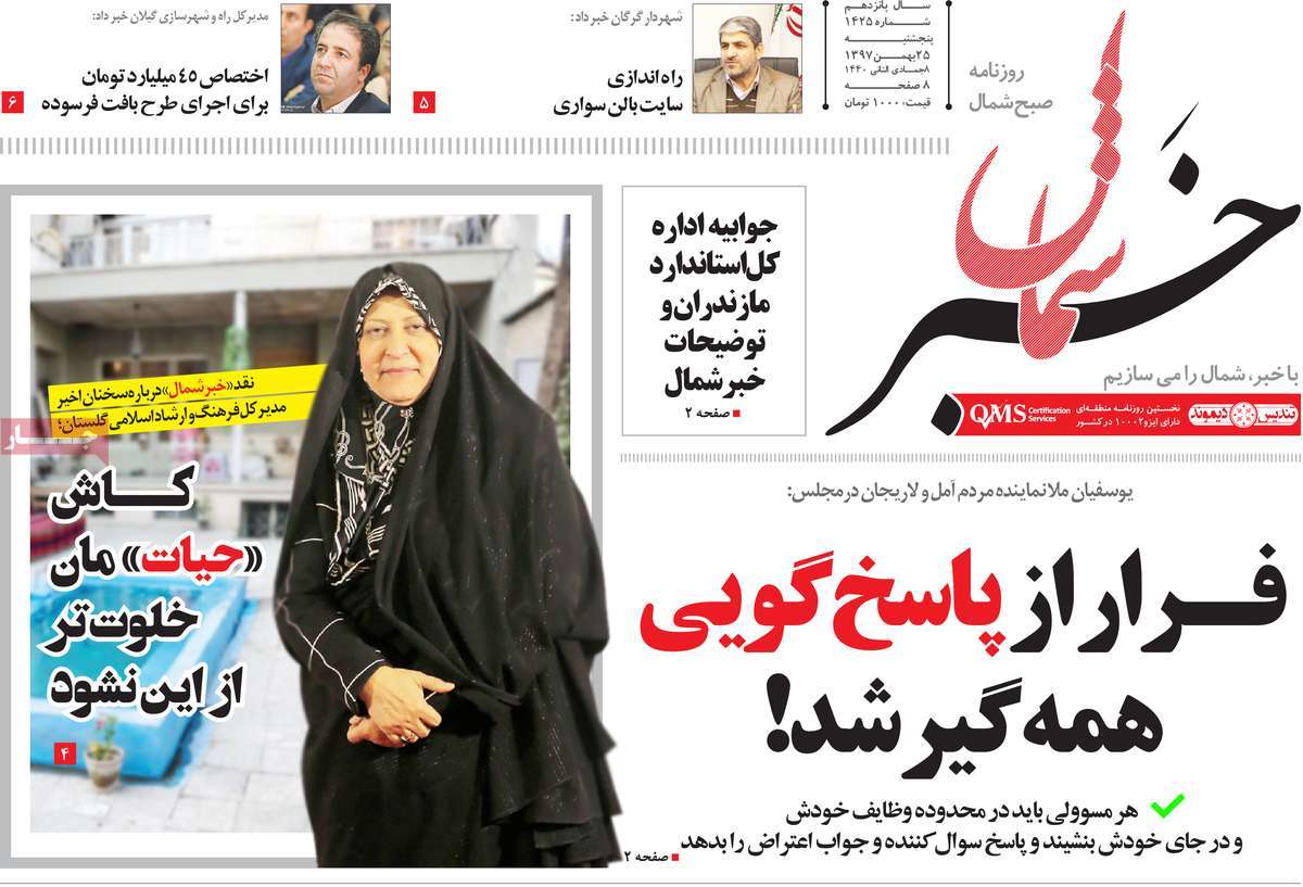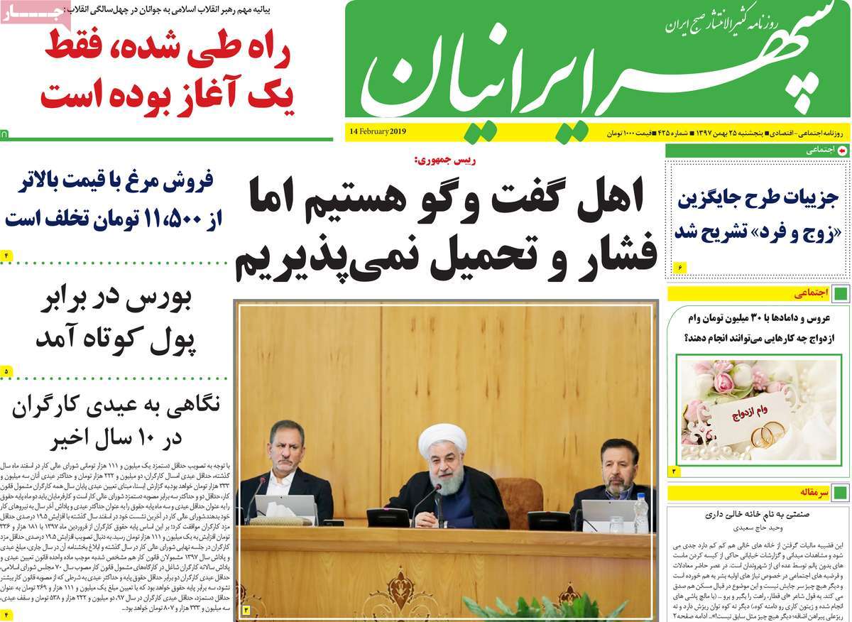 صفحه اول روزنامه های کشوری و استانی؛ پنج شنبه 25 بهمن ماه 1397 /تصاویر