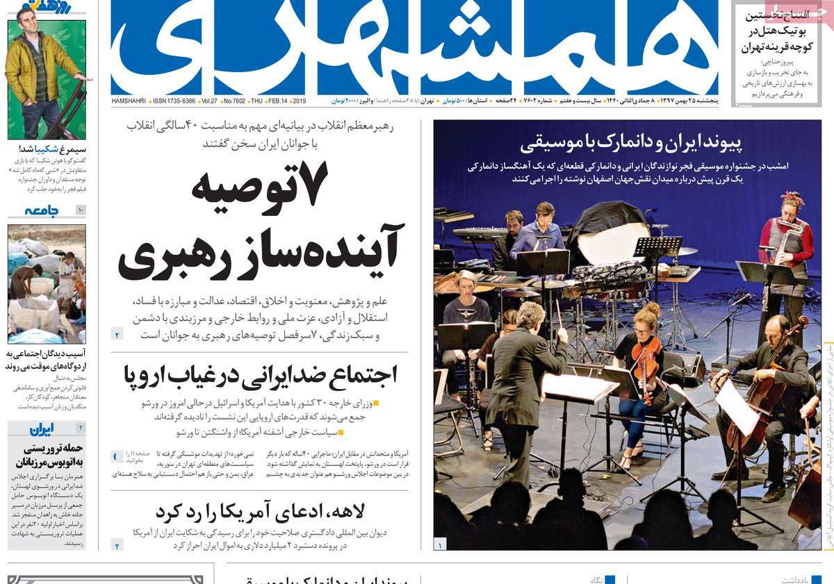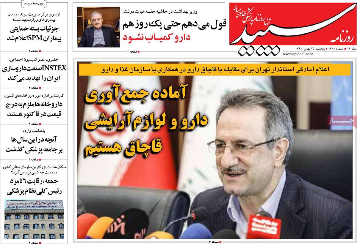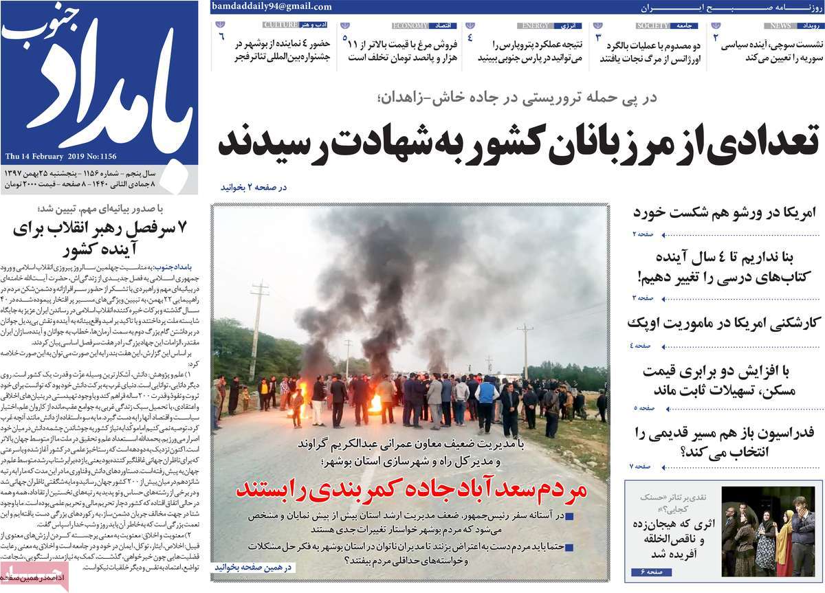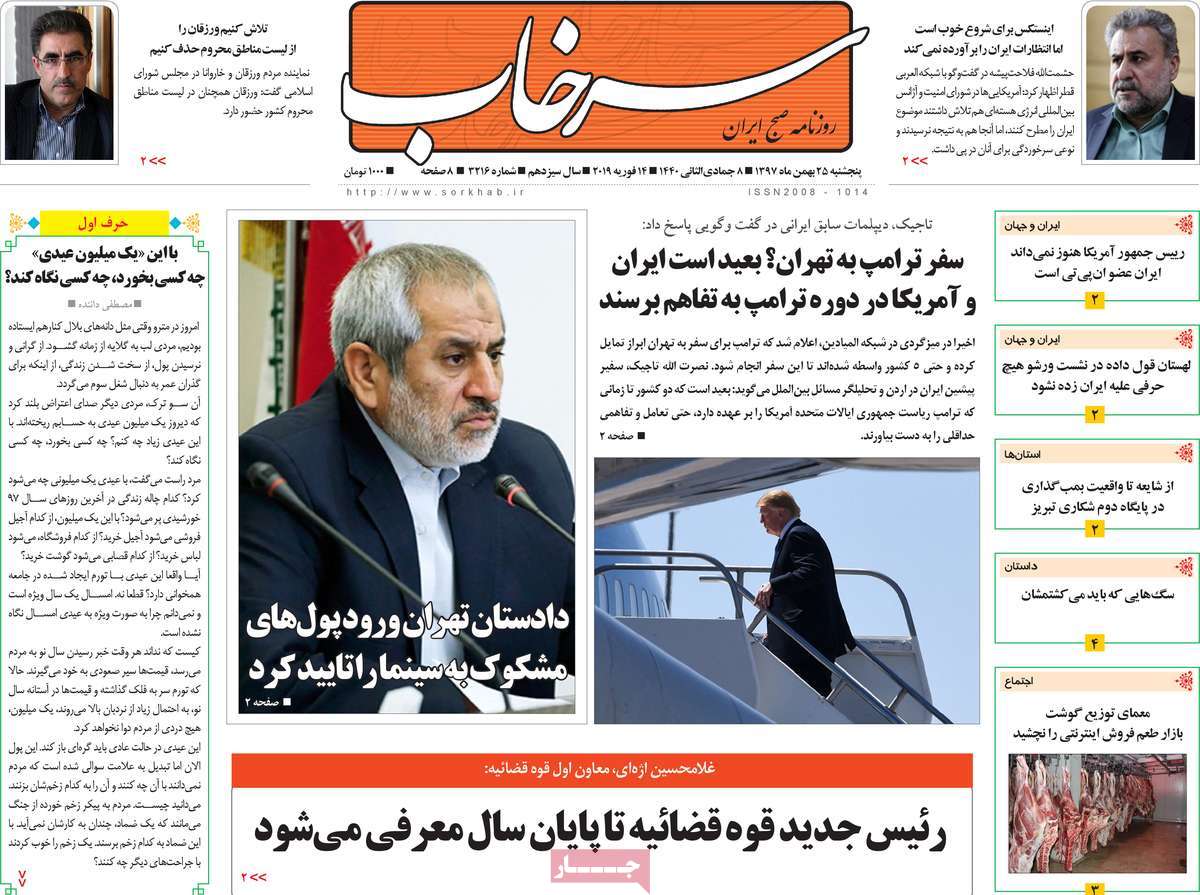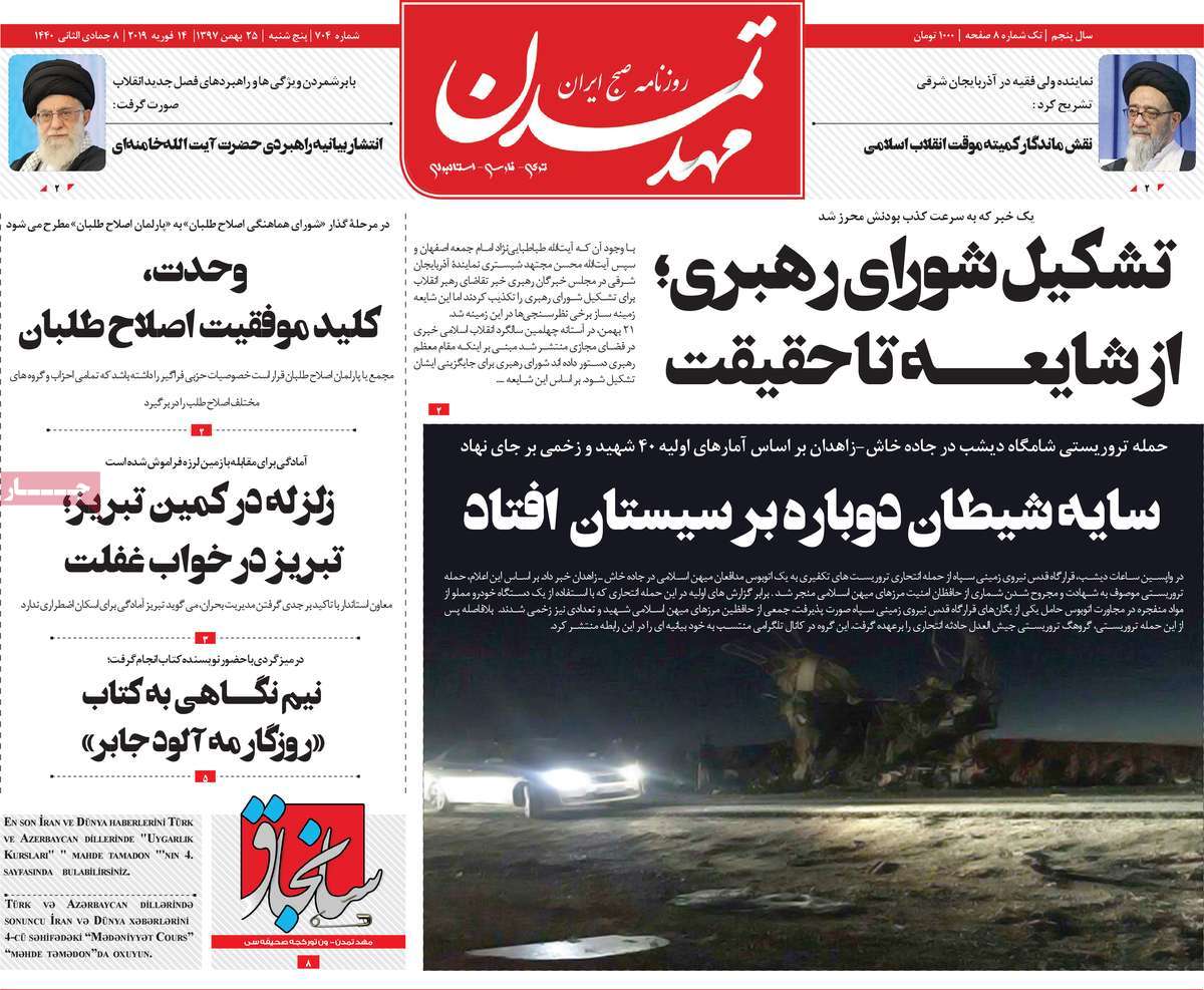 صفحه اول روزنامه های کشوری و استانی؛ پنج شنبه 25 بهمن ماه 1397 /تصاویر