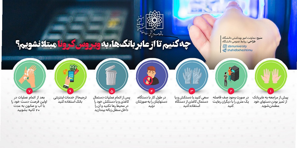 ۱) پیش از مراجعه به بانکها و یا استفاده از دستگاههای خودپرداز از تمیز بودن دستهای خود مطمئن شوید.