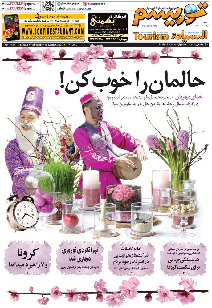 خانه/روزنامه توریسم/حالمان را خوب کن! روزنامه توریسم حالمان را خوب کن! جلد روزنامه امروز توریسم 28 اسفند 13980 فیس بوک توییتر لینکدین پینترست جلد روزنامه تاریخ ۲۸ اسفند روزنامه توریسم را ببینید. امتیاز کاربر: اولین نفر باشید ! برچسب هاتوریسم آنلاین روزنامه توریسم 28 اسفند 13980 فیس بوک توییتر لینکدین پینترست
