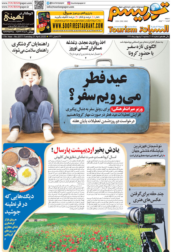 خانه/روزنامه توریسم/عید فطر می رویم سفر؟ رسانهروزنامه توریسمویژه عید فطر می رویم سفر؟ جلد روزنامه توریسم امروز 2 اردیبهشت 13990 فیس بوک توییتر لینکدین پینترست صفحه اول روزنامه توریسم امروز را ببینید. امتیاز کاربر: اولین نفر باشید ! برچسب هاروزنامه توریسم 2 اردیبهشت 13990 فیس بوک توییتر لینکدین پینترست