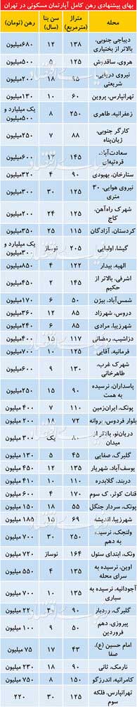تازه ترین قیمت رهن خانه در تهران/جدول