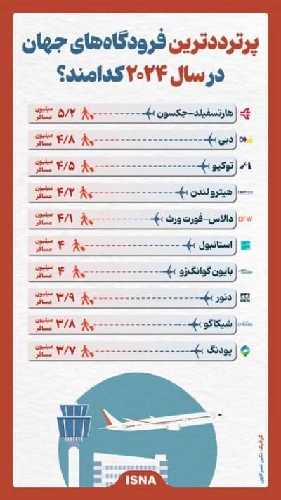 پرترددترین فرودگاههای جهان در سال ۲۰۲۴ /اینفوگرافیک