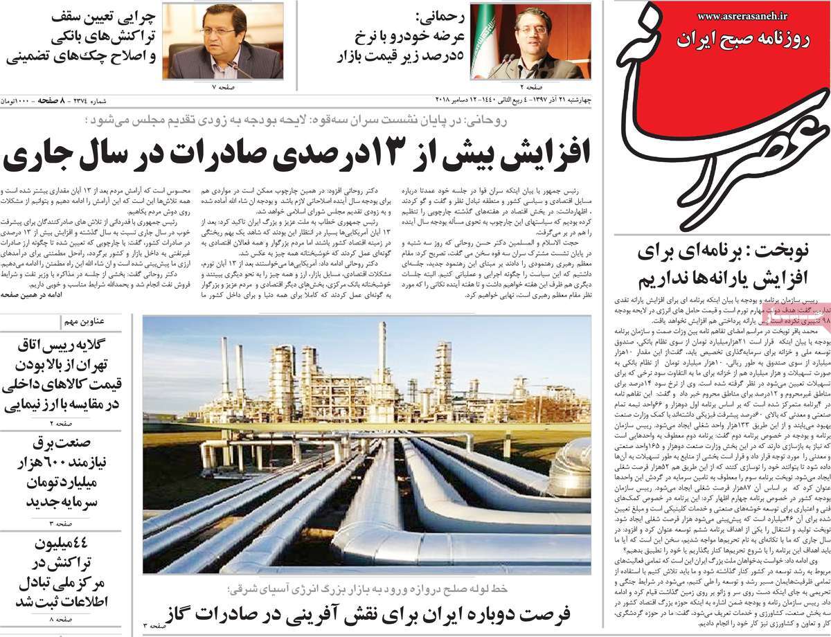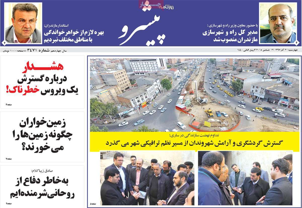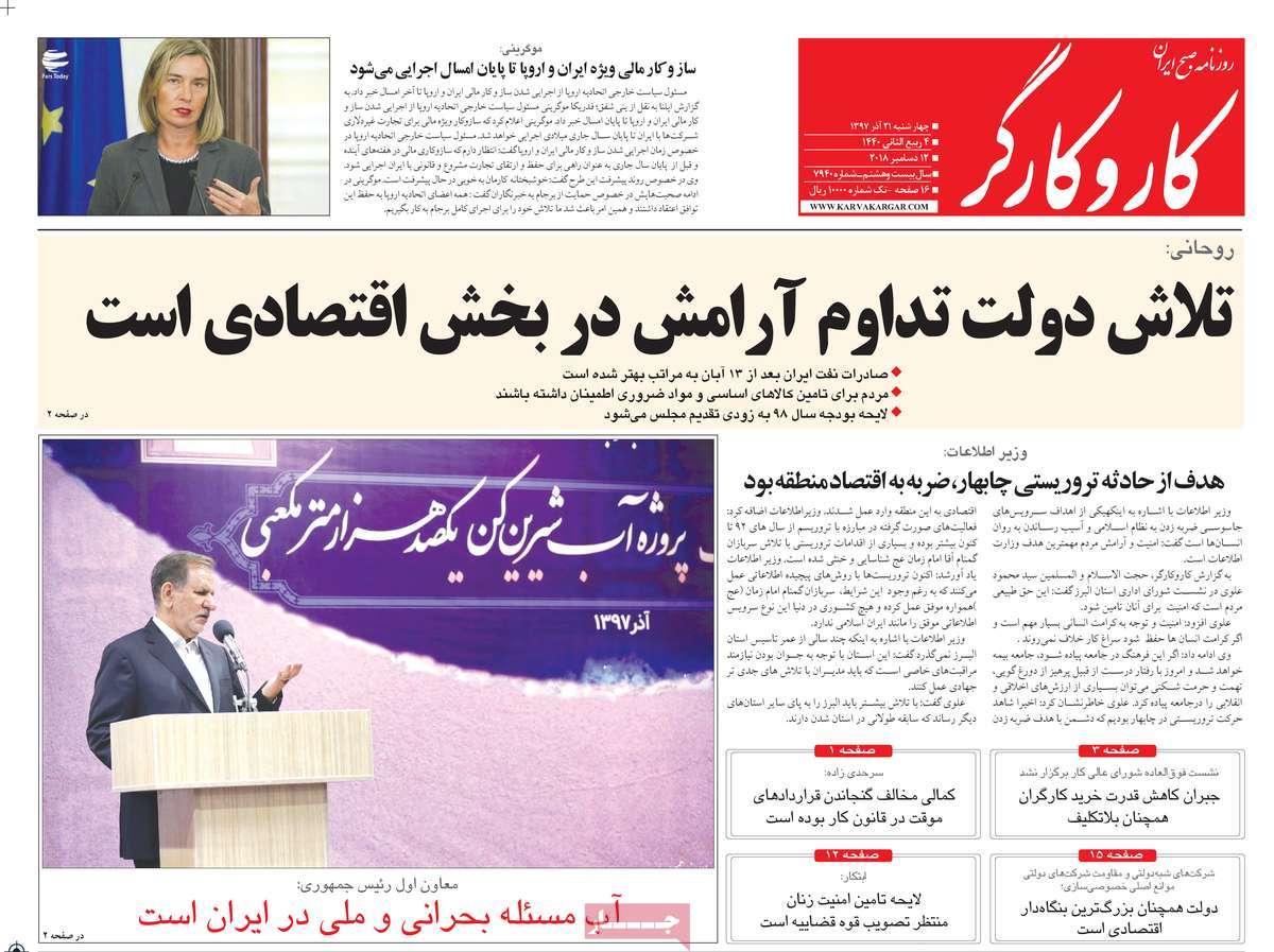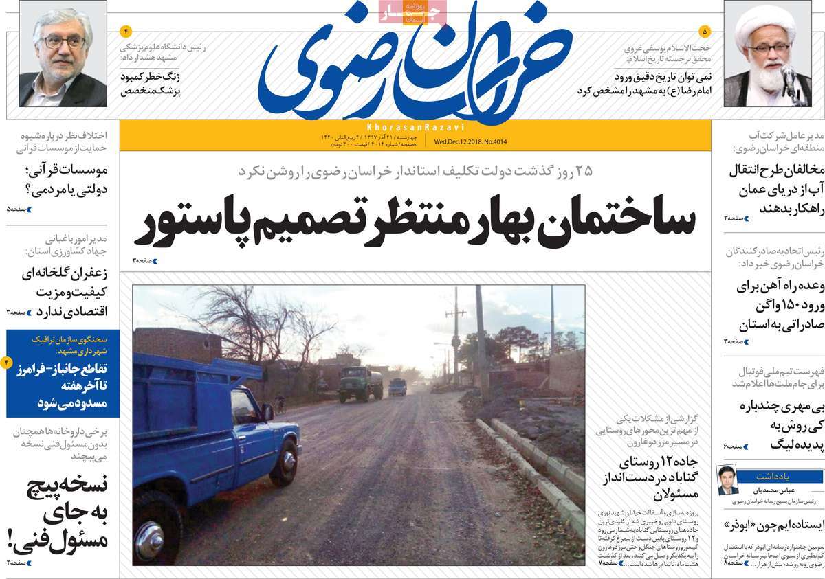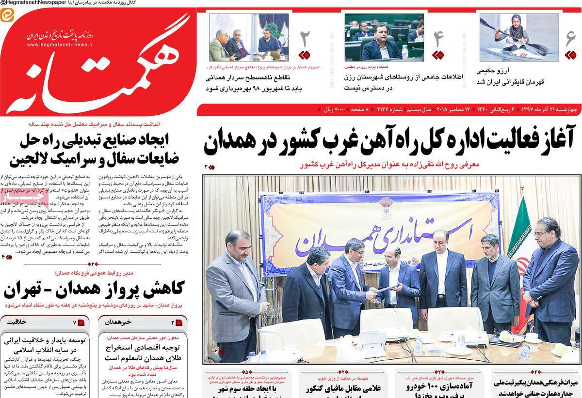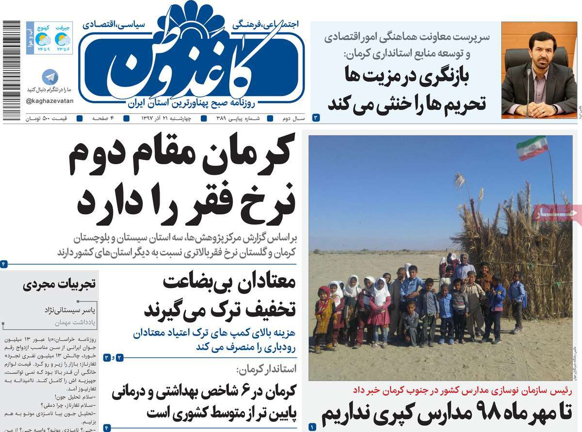 صفحه اول روزنامه های کشوری و استانی؛ چهارشنبه 21 آذرماه 1397 /تصاویر
