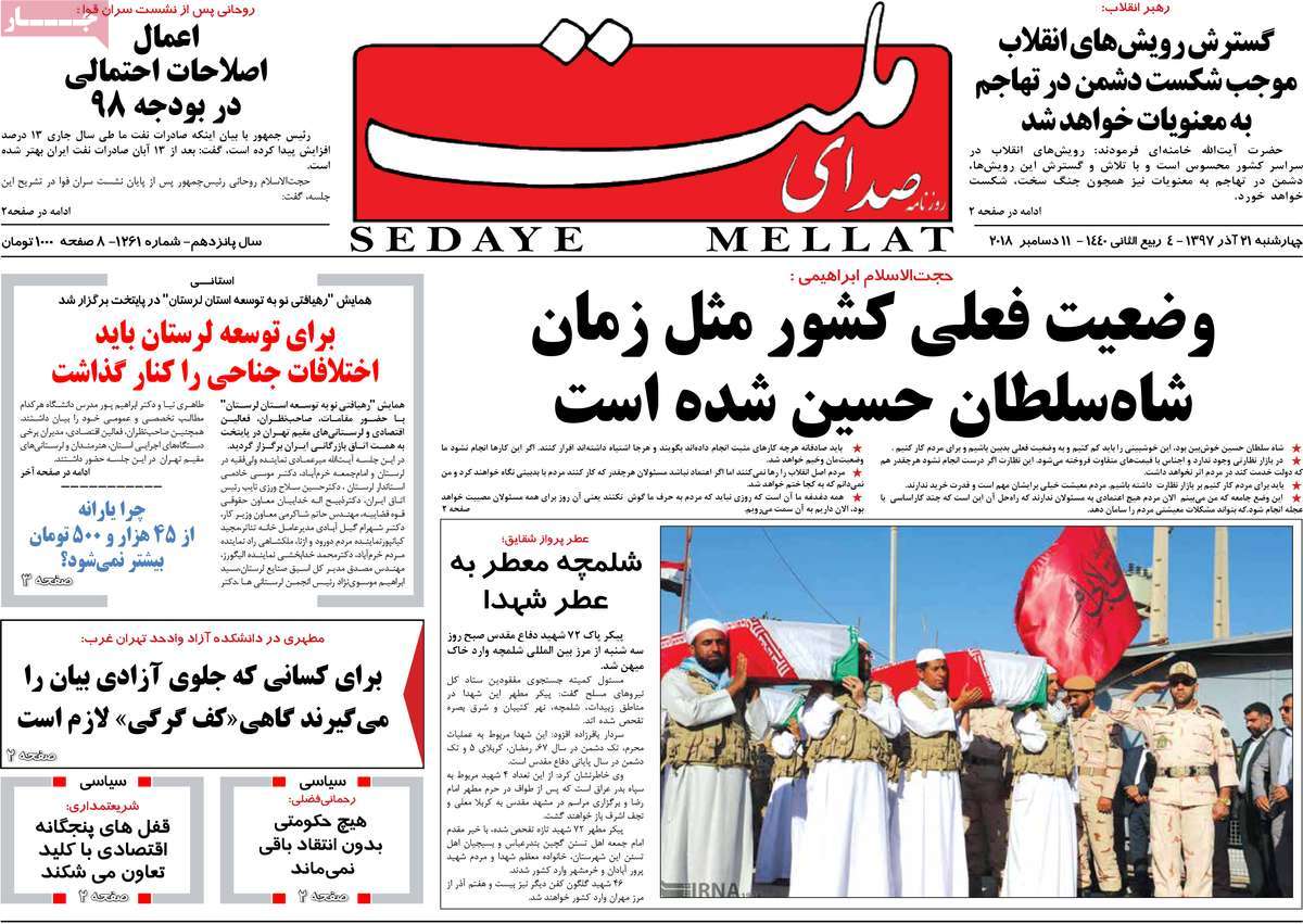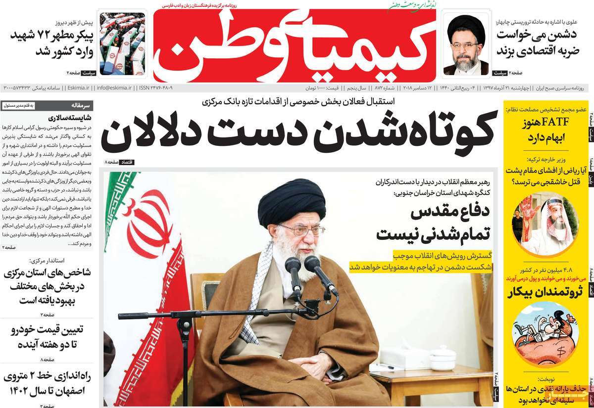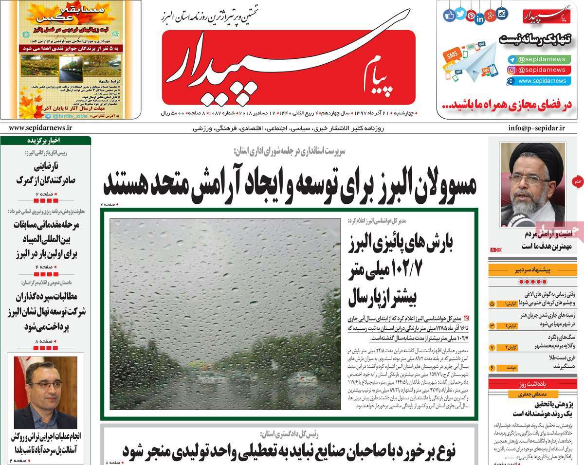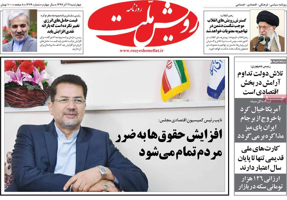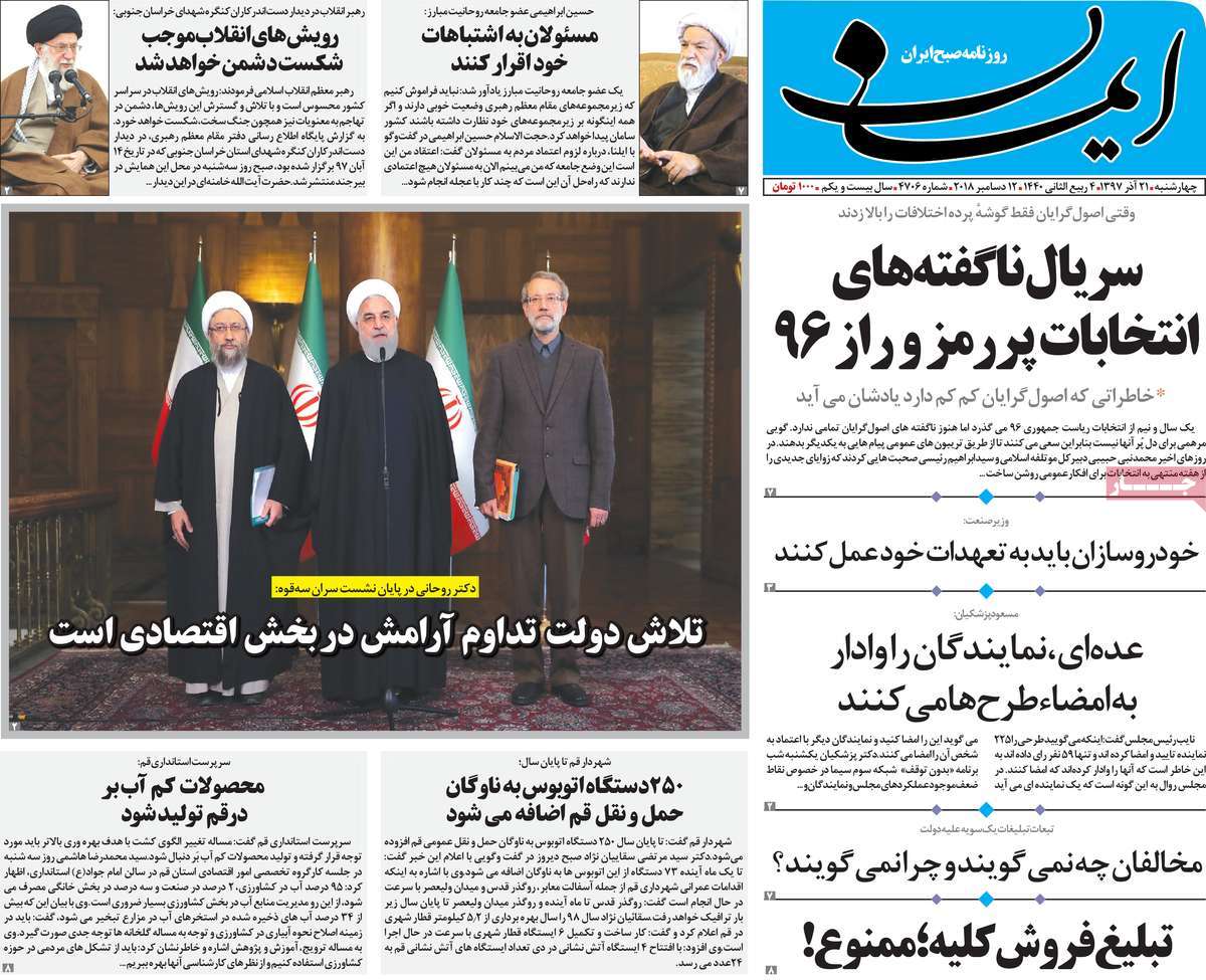 صفحه اول روزنامه های کشوری و استانی؛ چهارشنبه 21 آذرماه 1397 /تصاویر