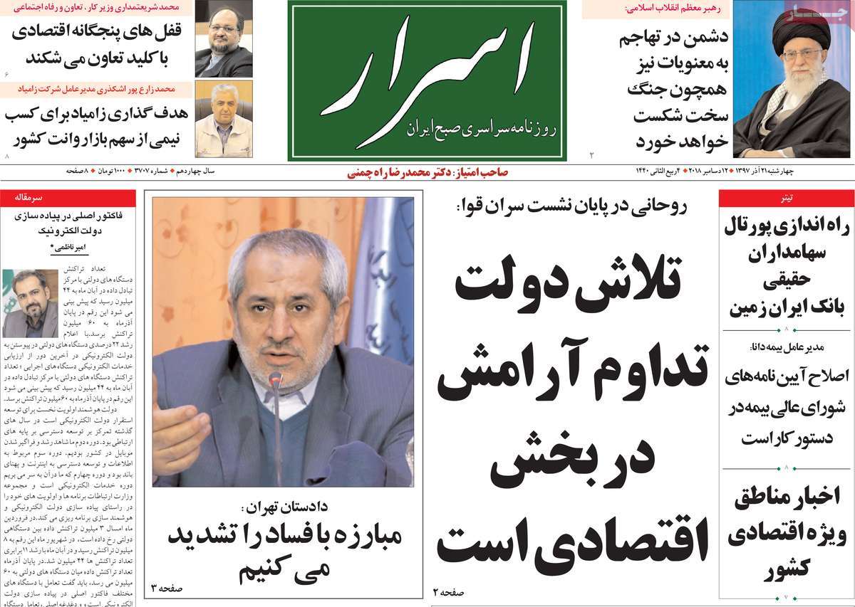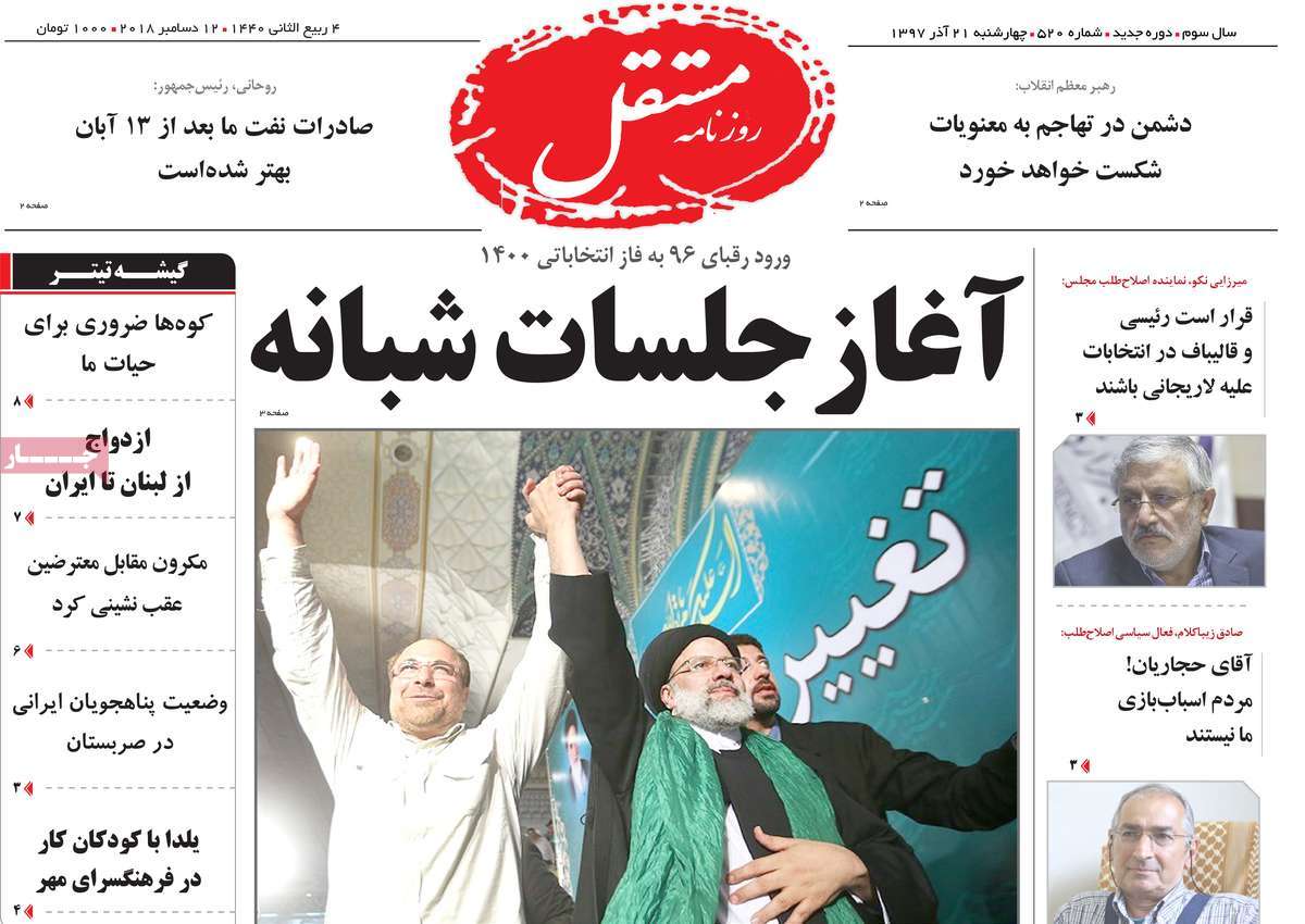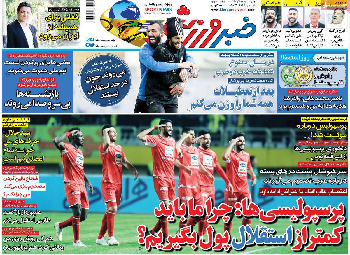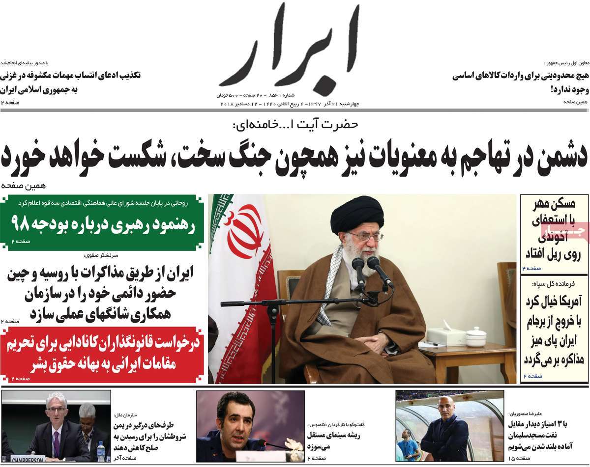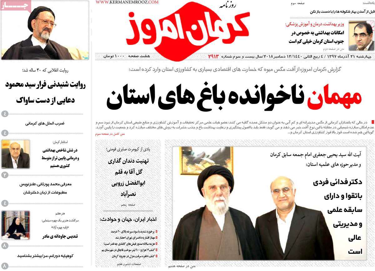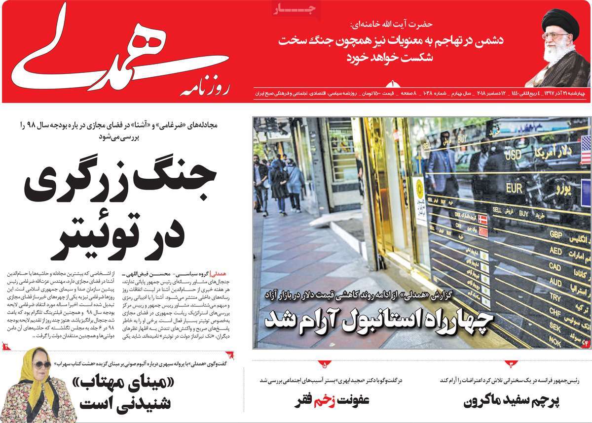 صفحه اول روزنامه های کشوری و استانی؛ چهارشنبه 21 آذرماه 1397 /تصاویر