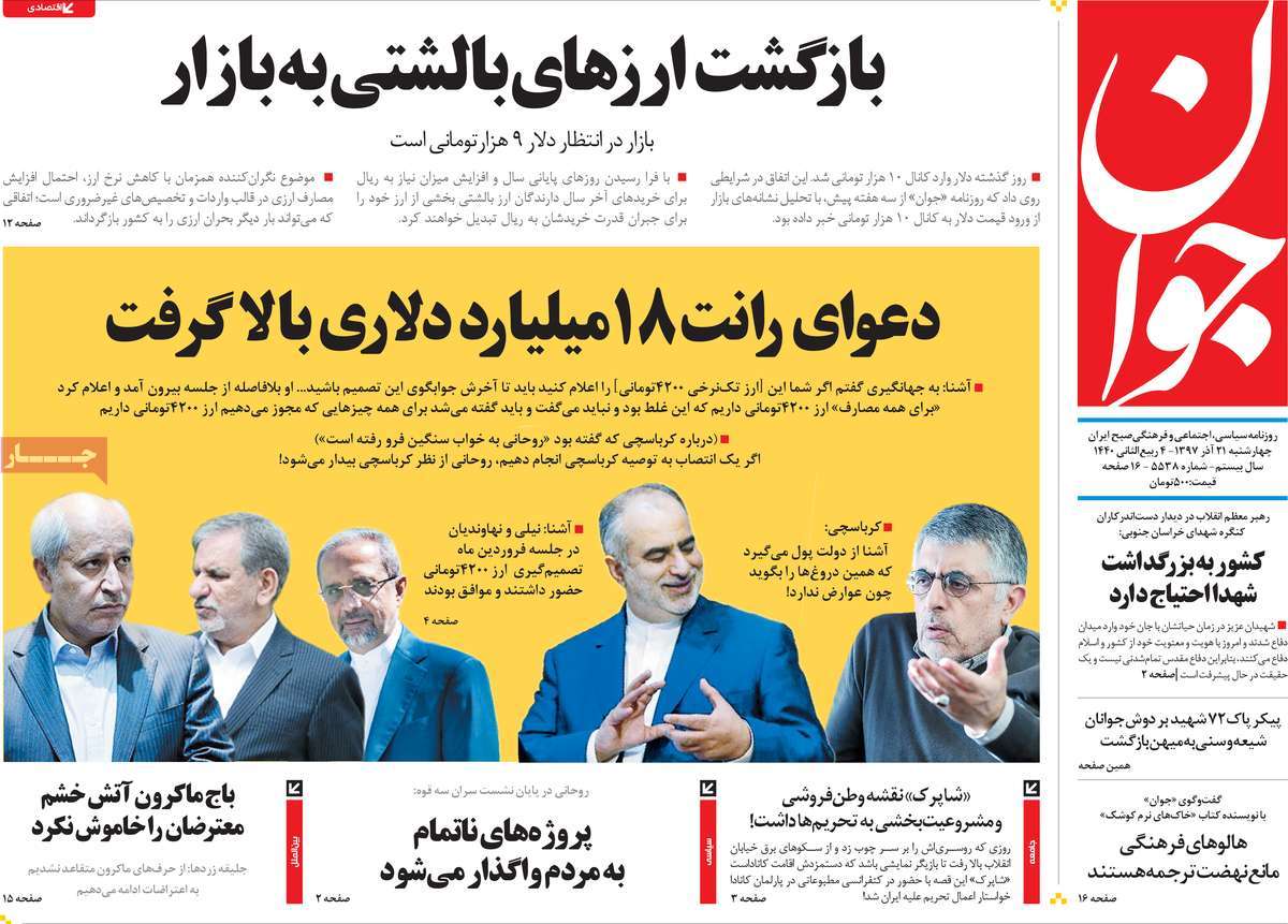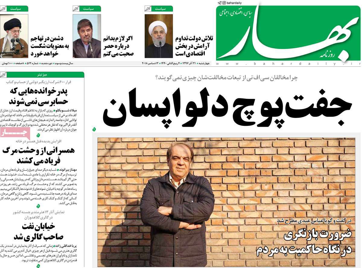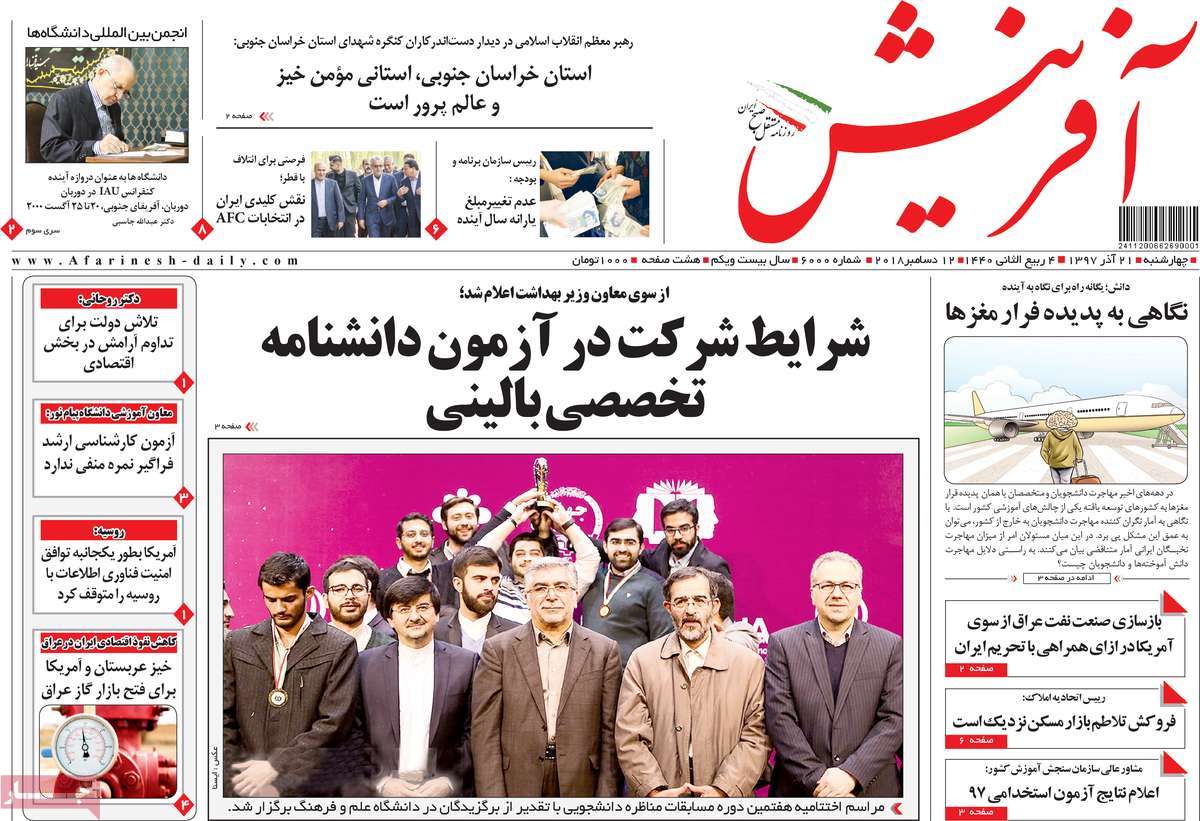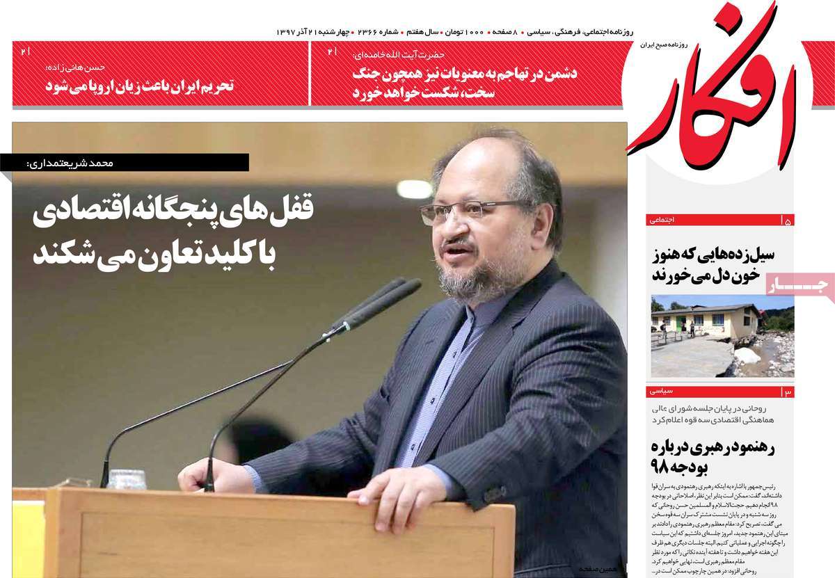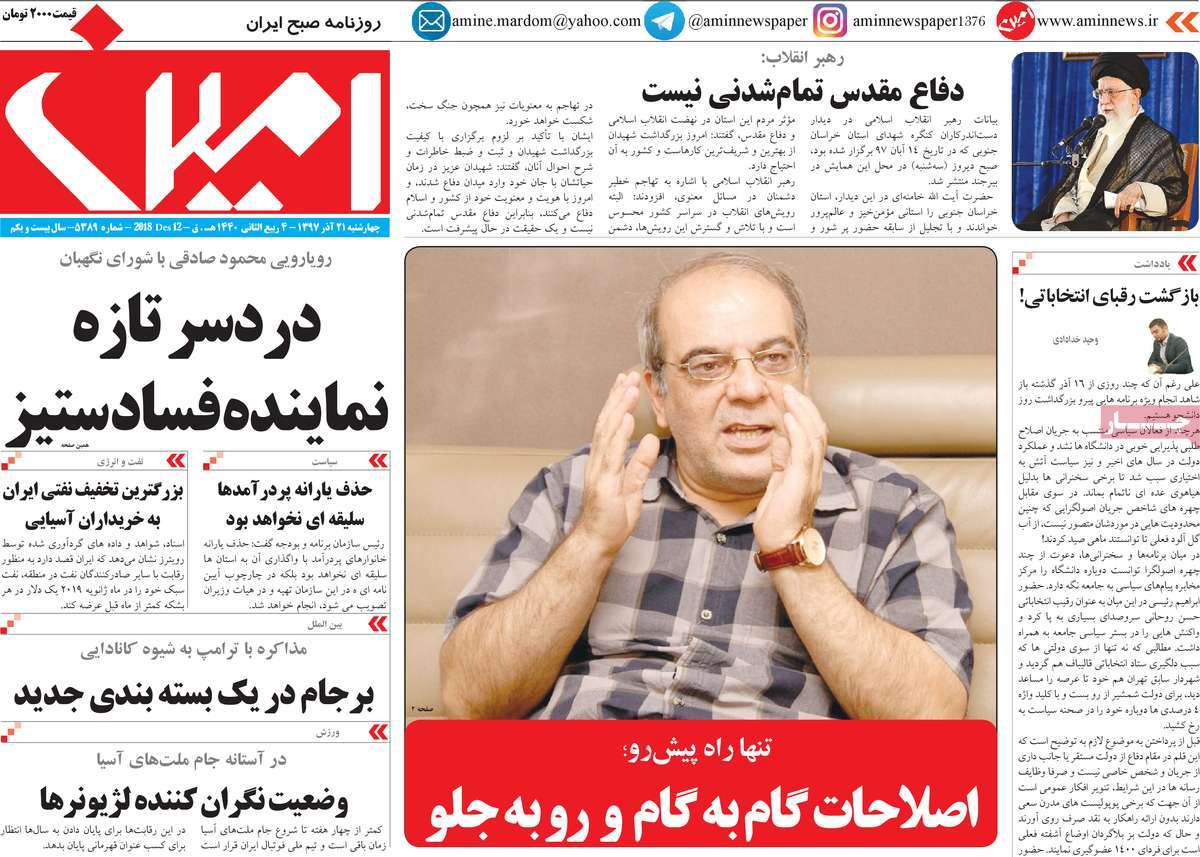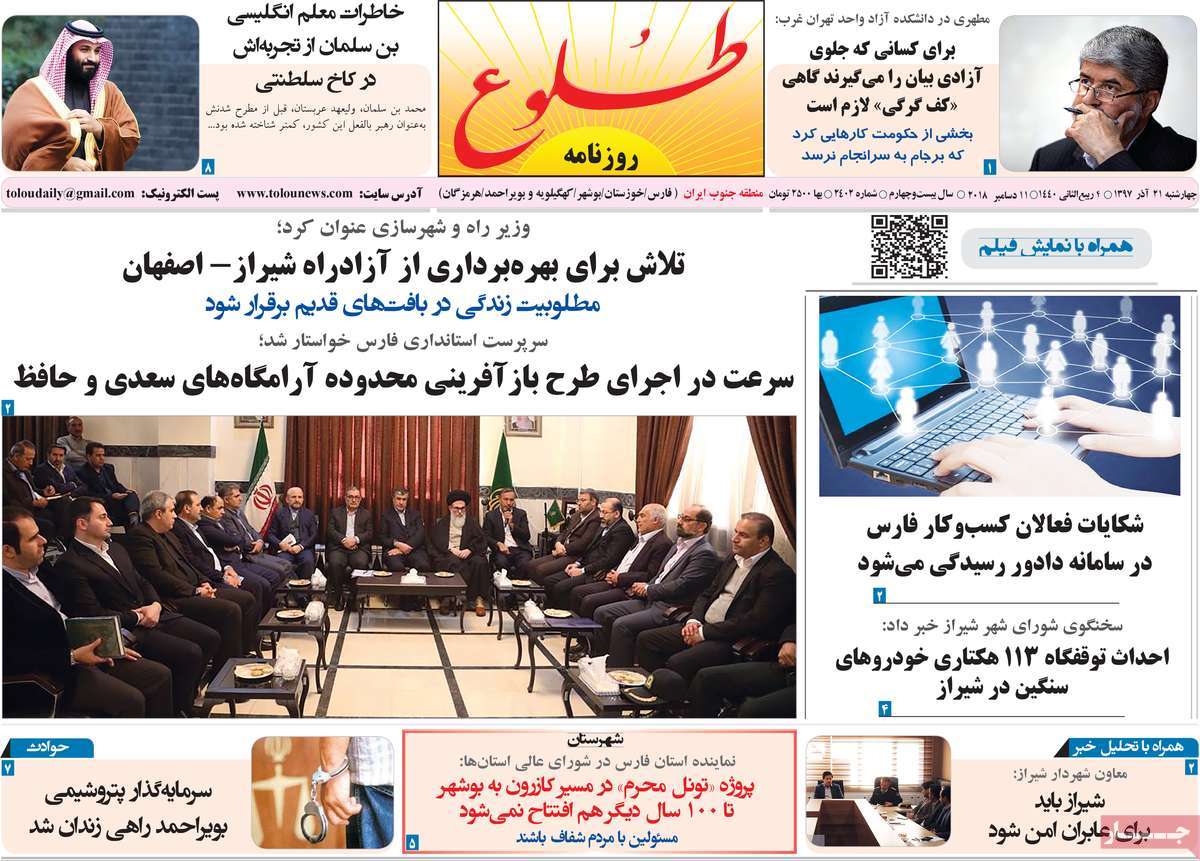 صفحه اول روزنامه های کشوری و استانی؛ چهارشنبه 21 آذرماه 1397 /تصاویر