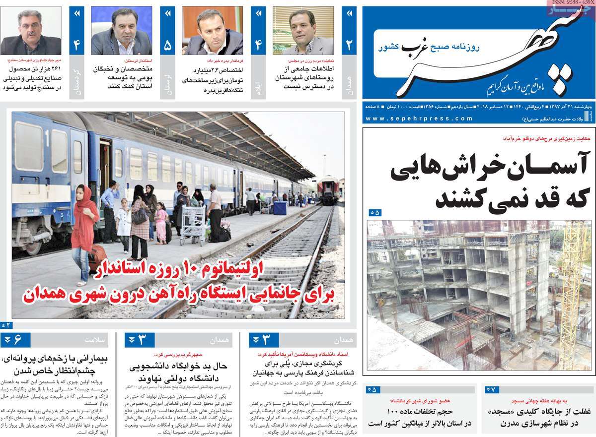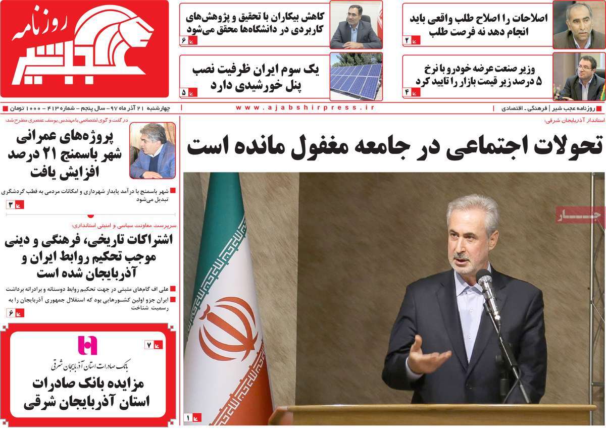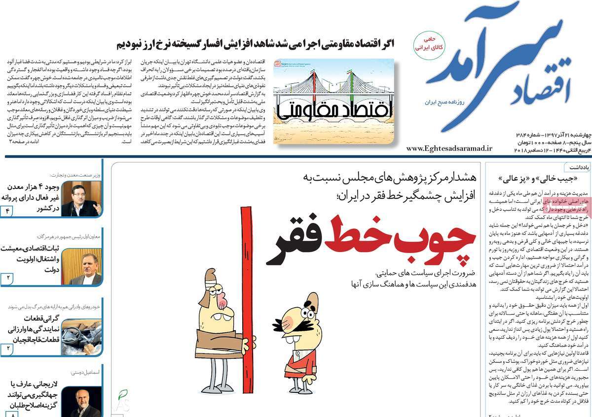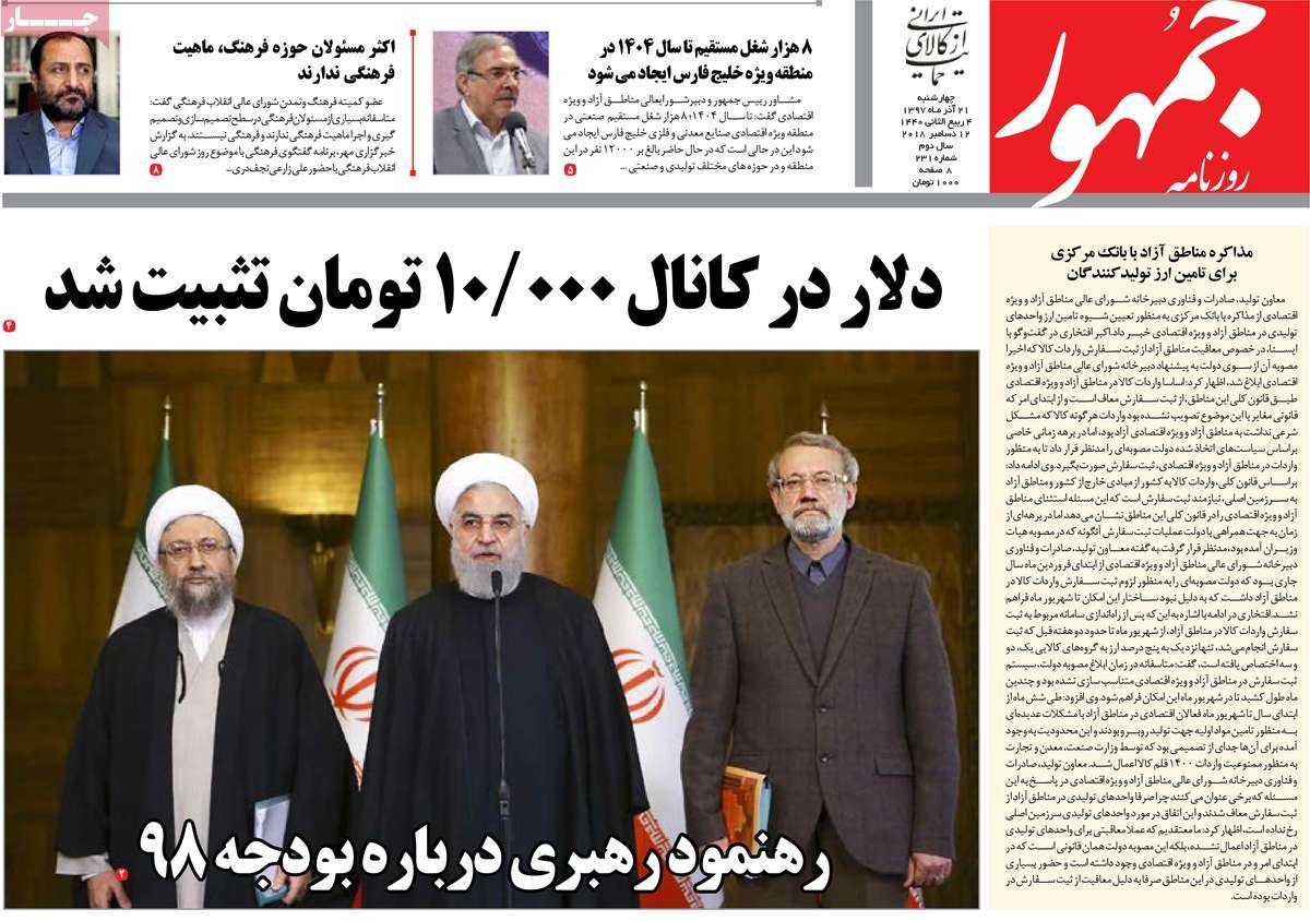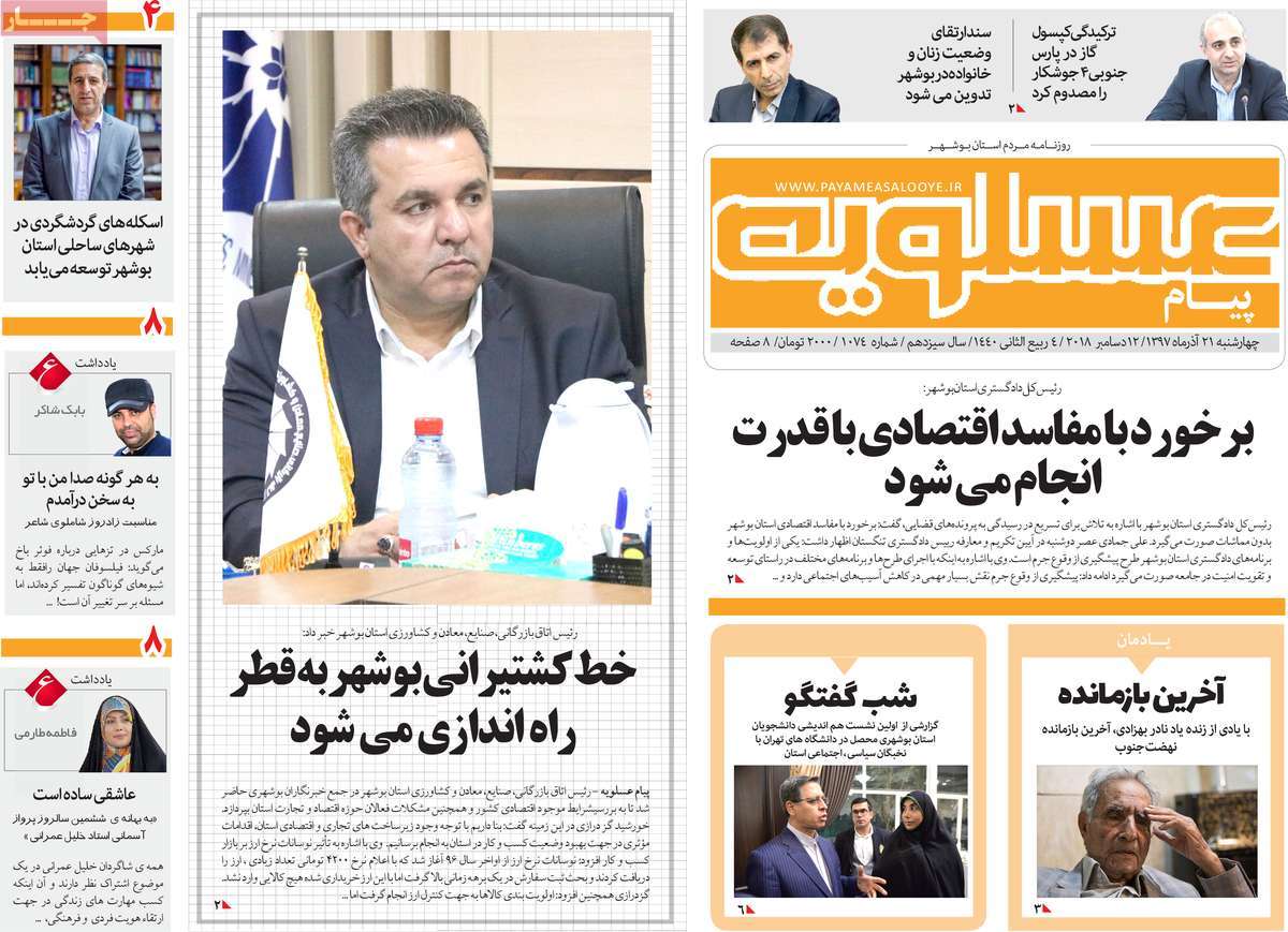 صفحه اول روزنامه های کشوری و استانی؛ چهارشنبه 21 آذرماه 1397 /تصاویر