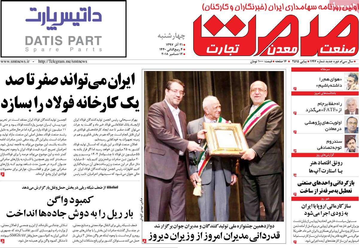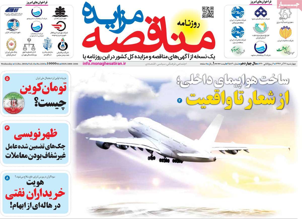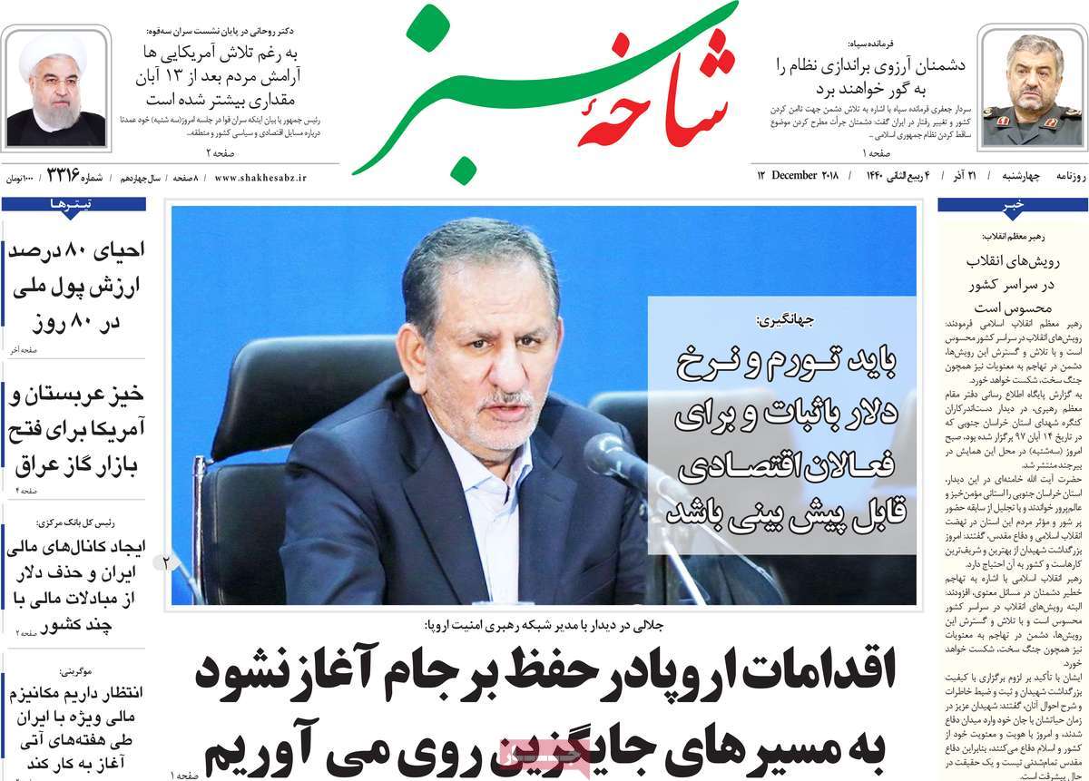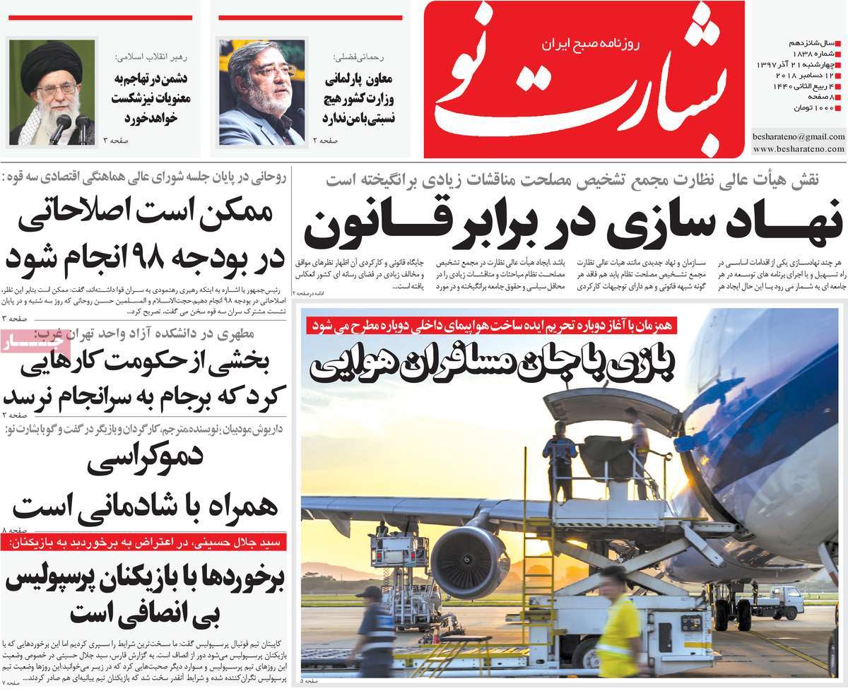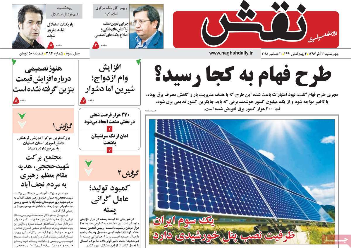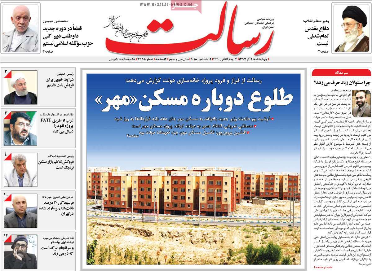 صفحه اول روزنامه های کشوری و استانی؛ چهارشنبه 21 آذرماه 1397 /تصاویر