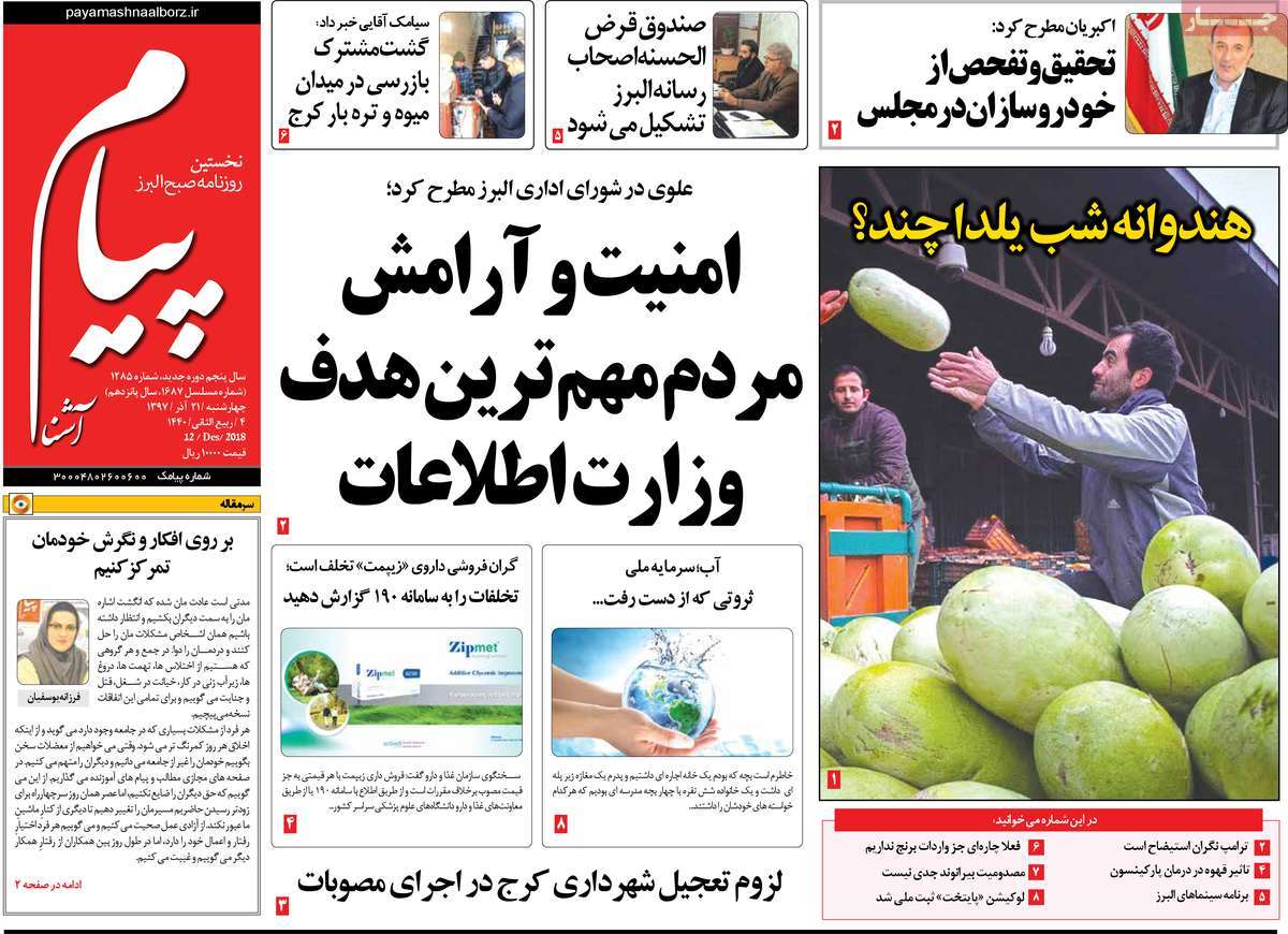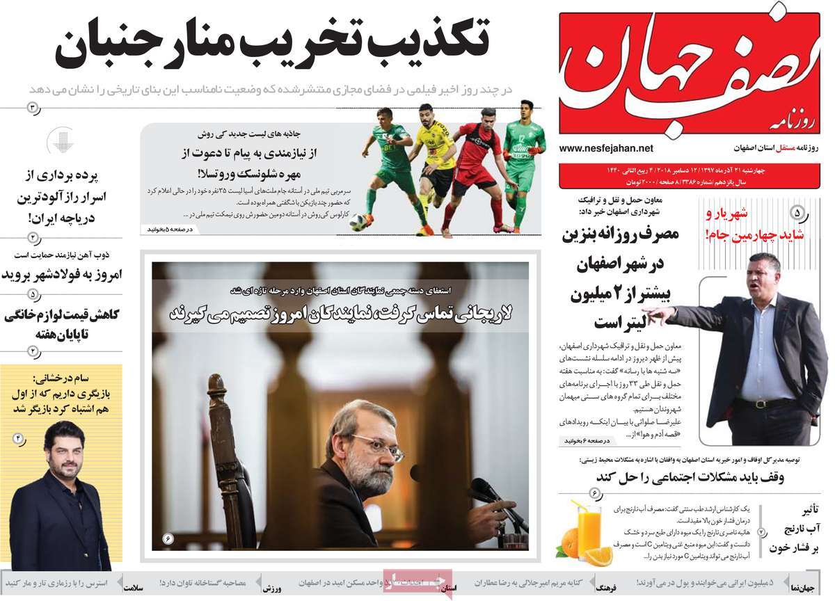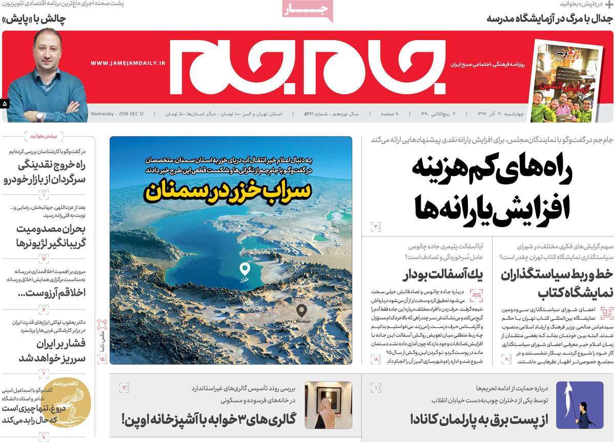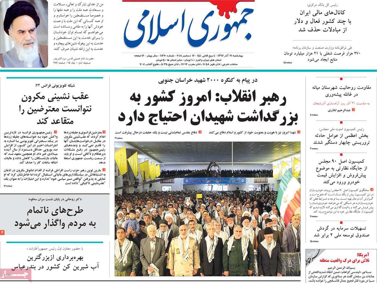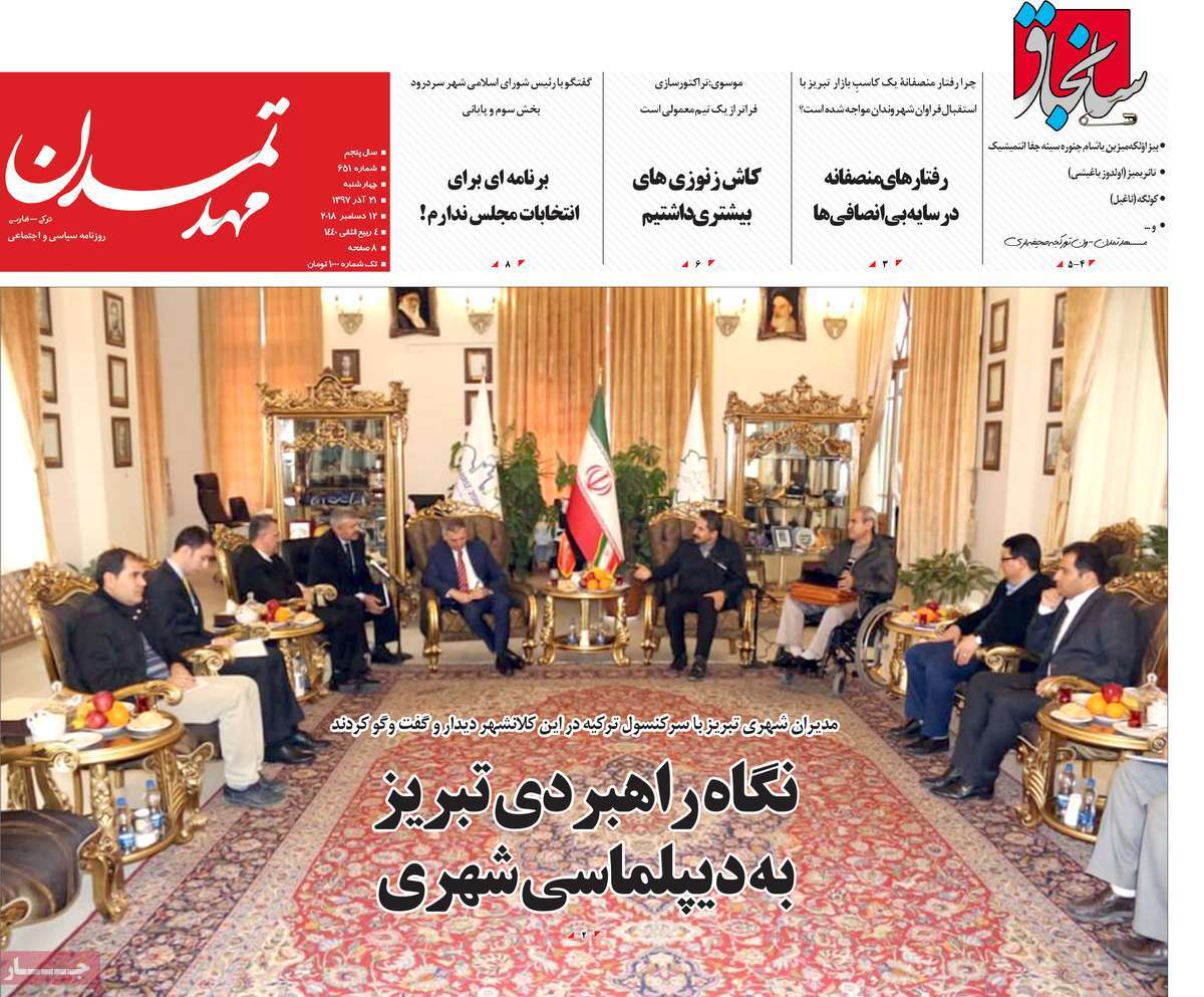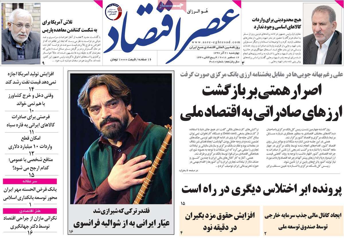 صفحه اول روزنامه های کشوری و استانی؛ چهارشنبه 21 آذرماه 1397 /تصاویر