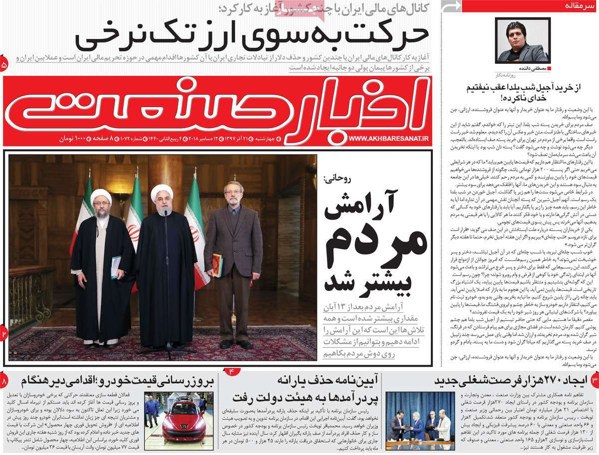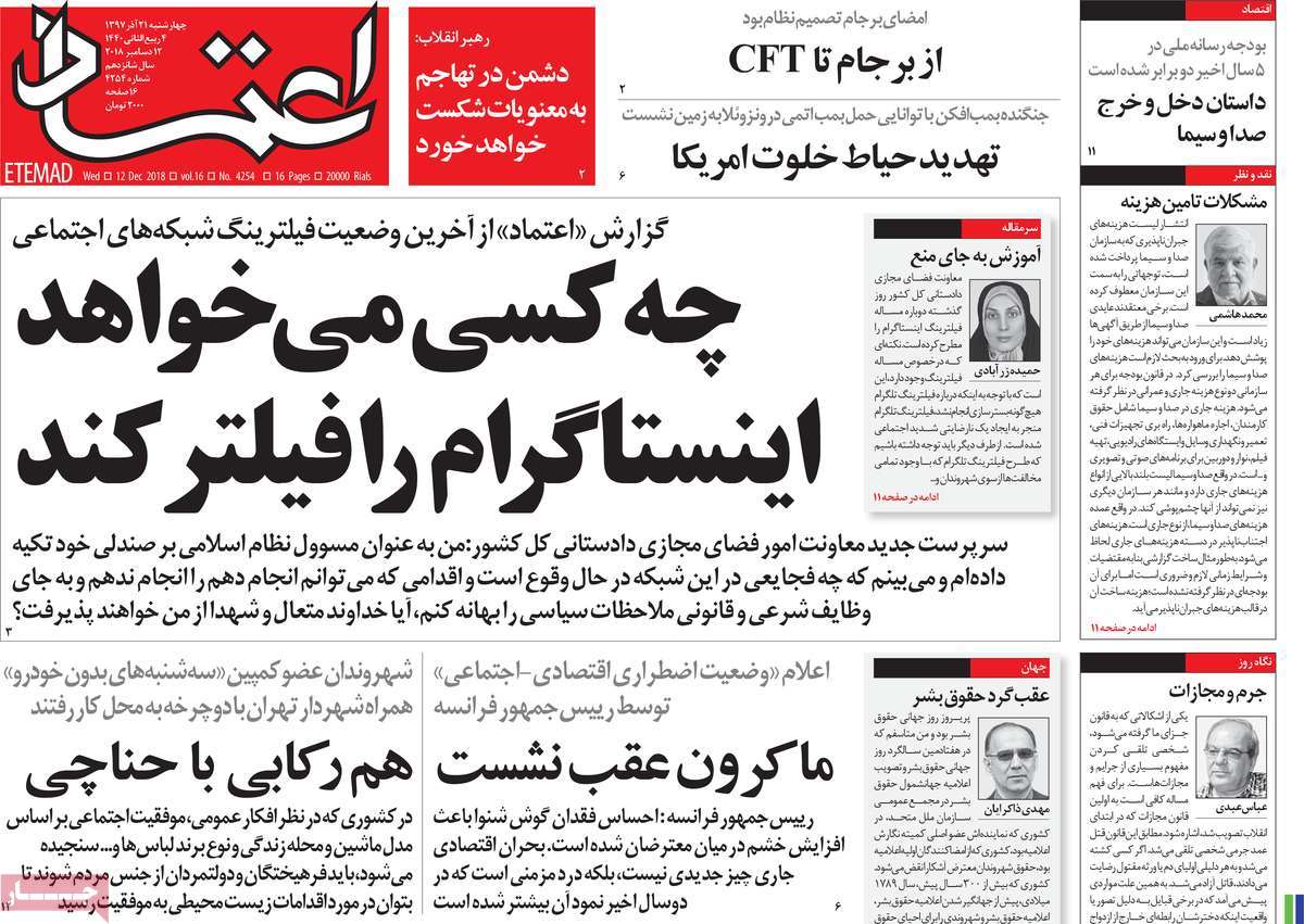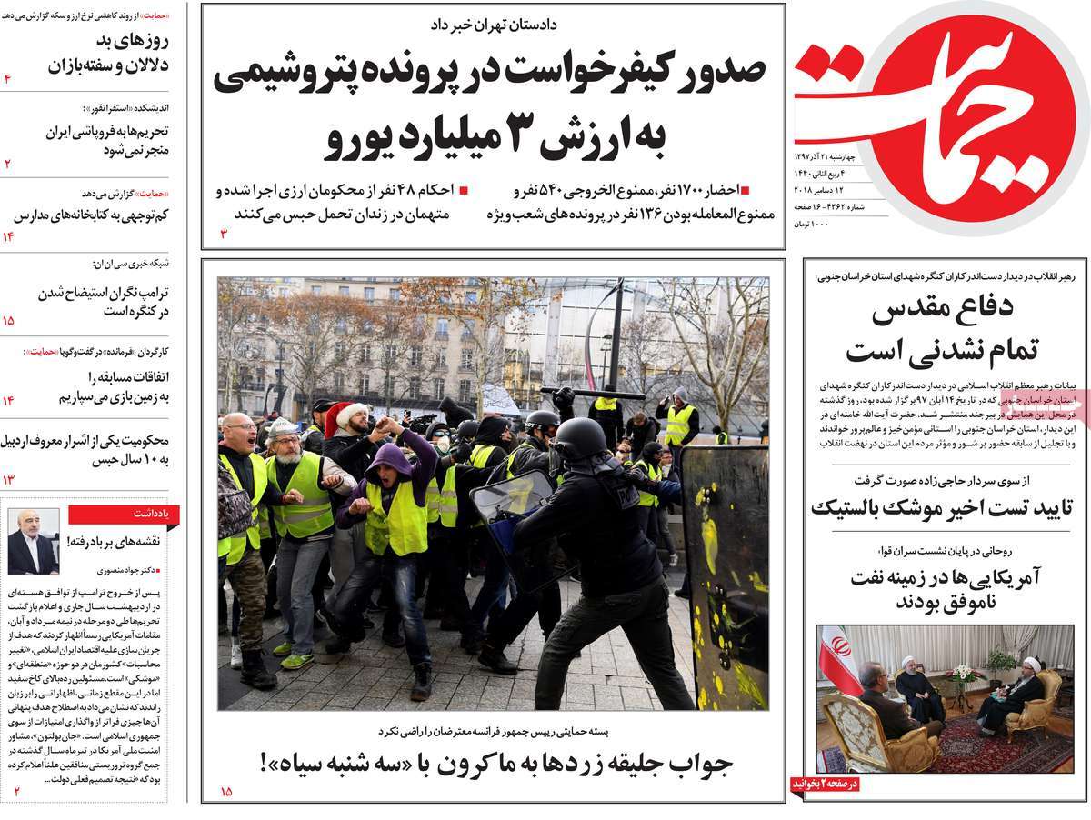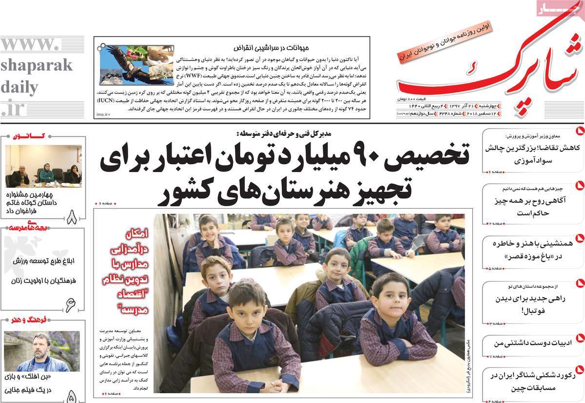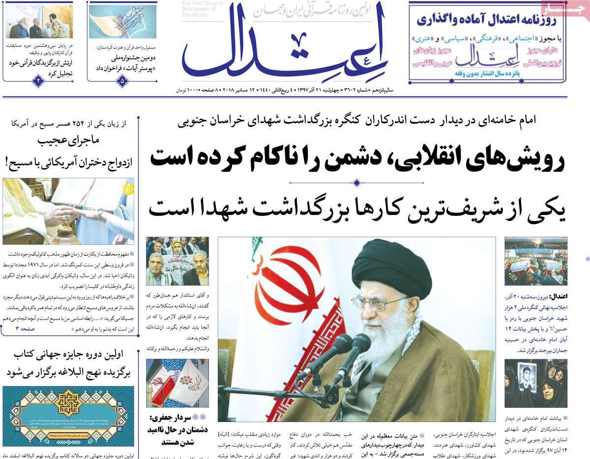 صفحه اول روزنامه های کشوری و استانی؛ چهارشنبه 21 آذرماه 1397 /تصاویر