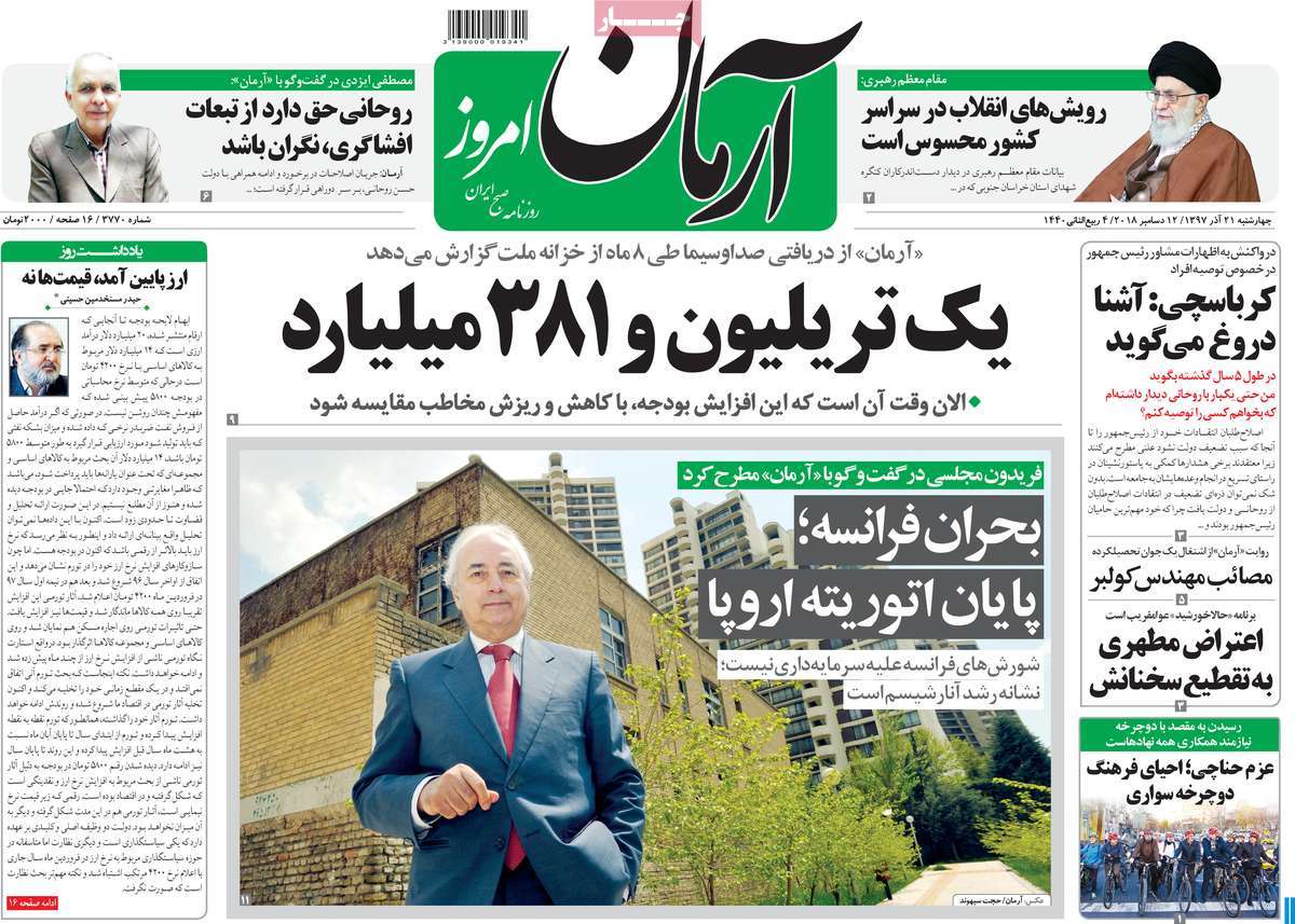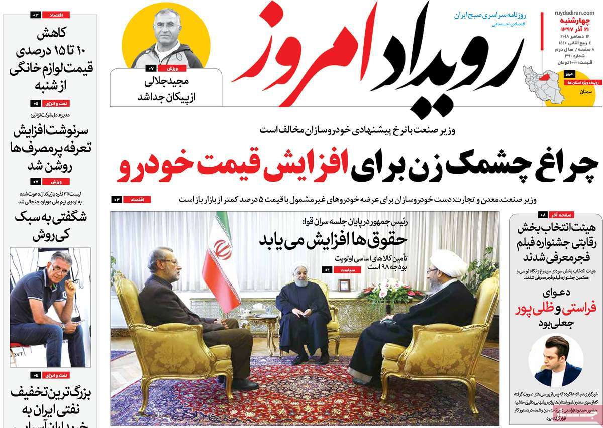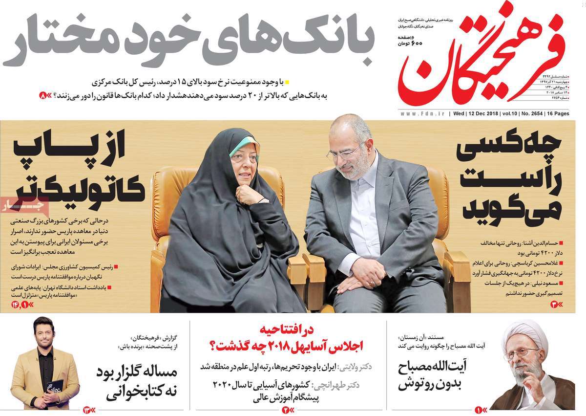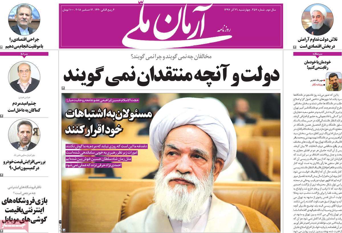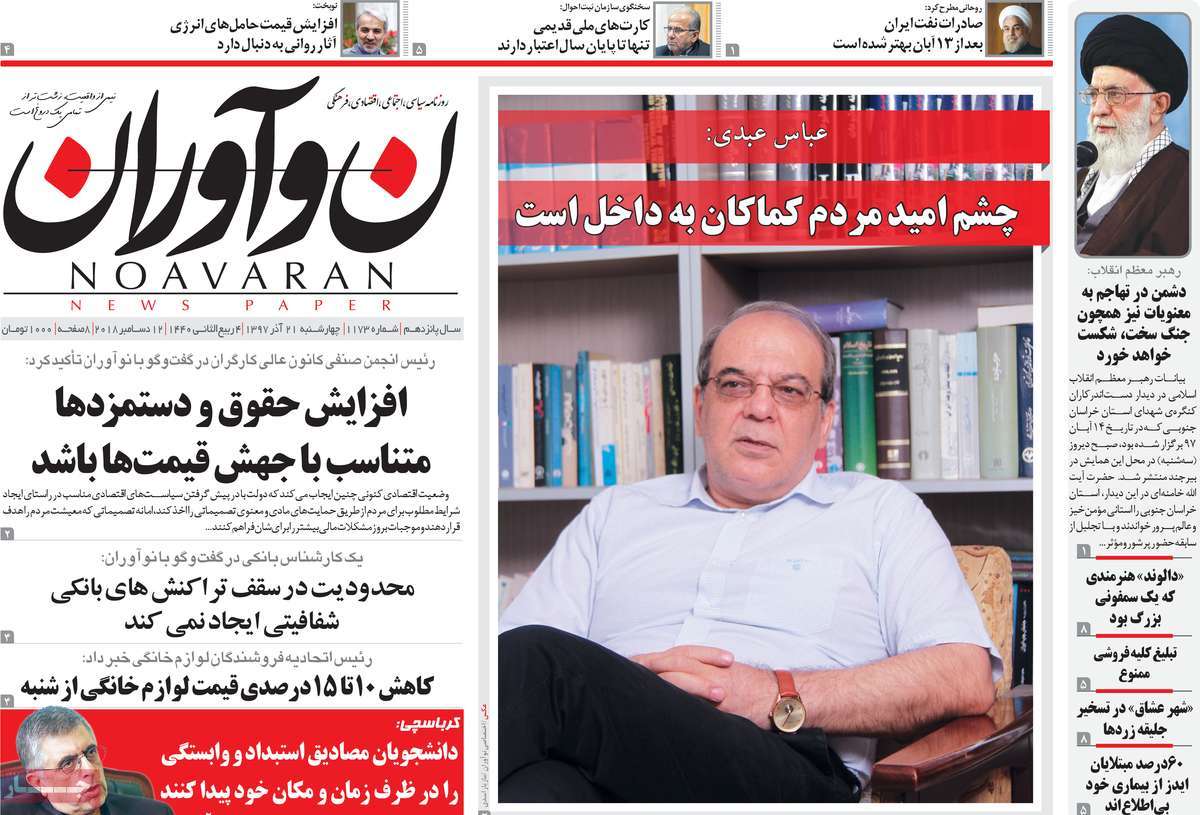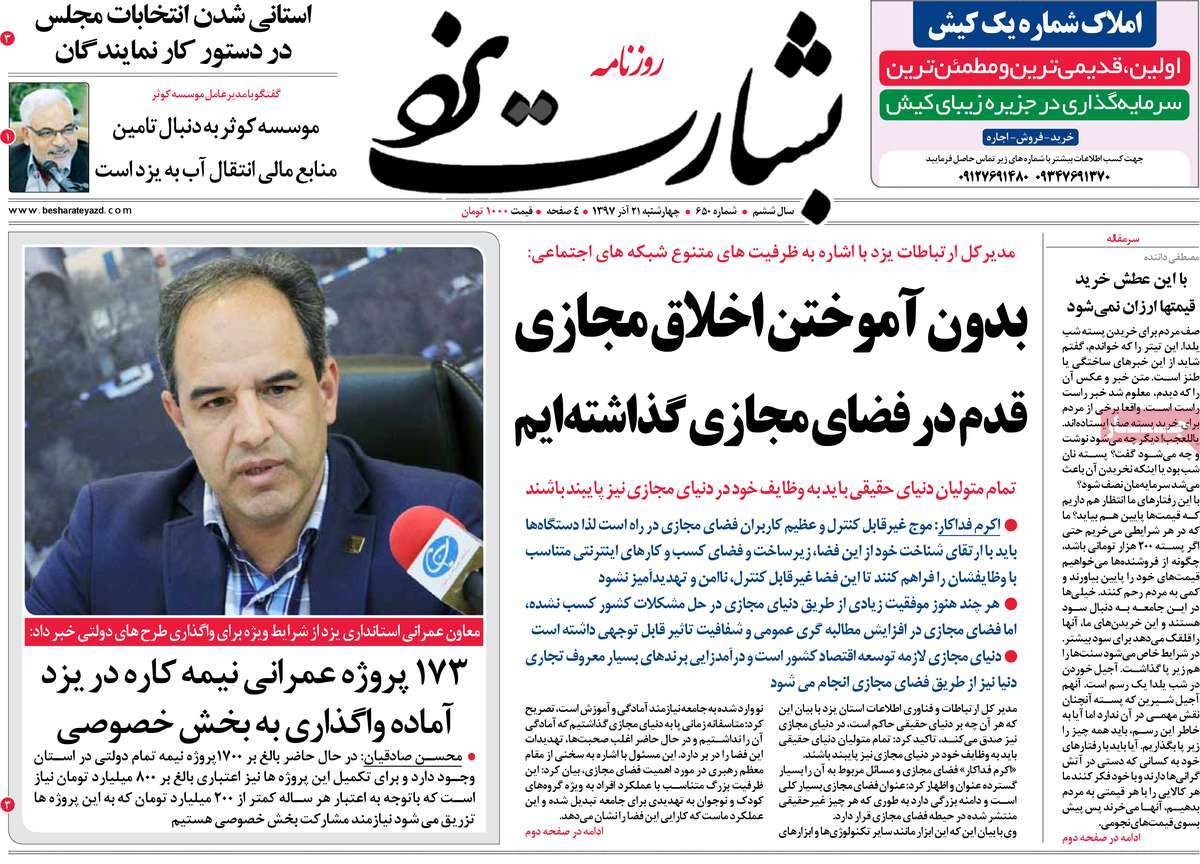 صفحه اول روزنامه های کشوری و استانی؛ چهارشنبه 21 آذرماه 1397 /تصاویر