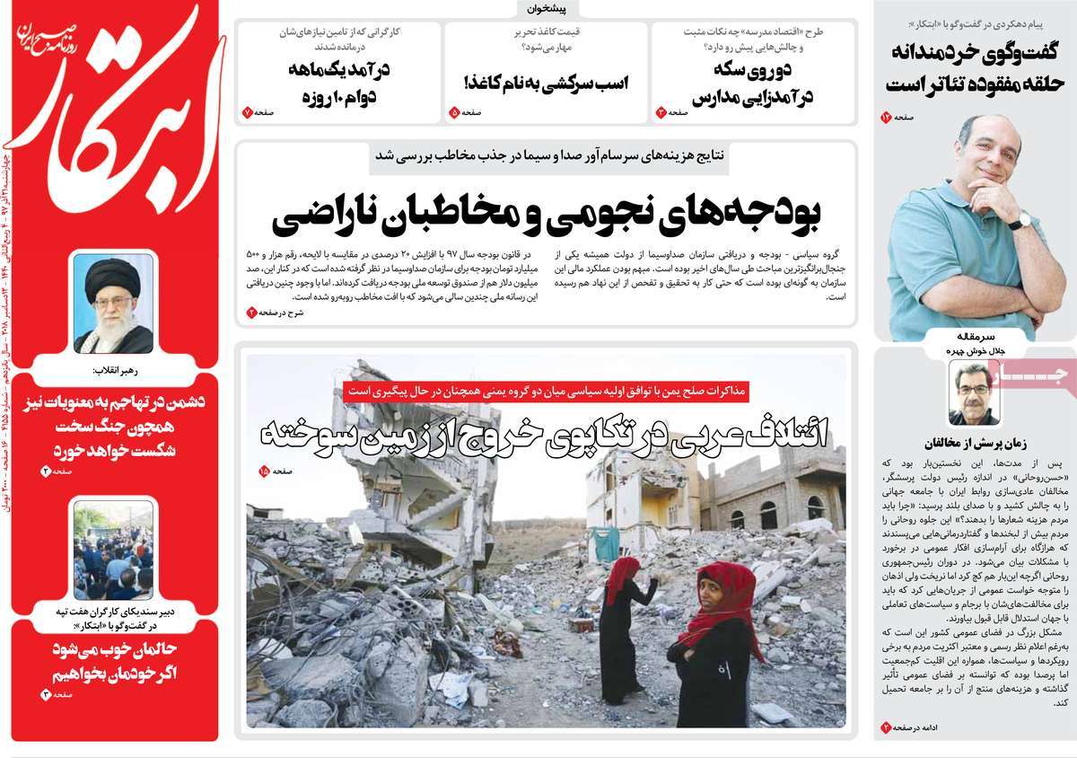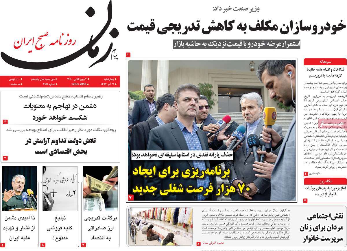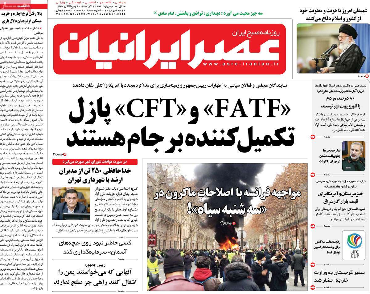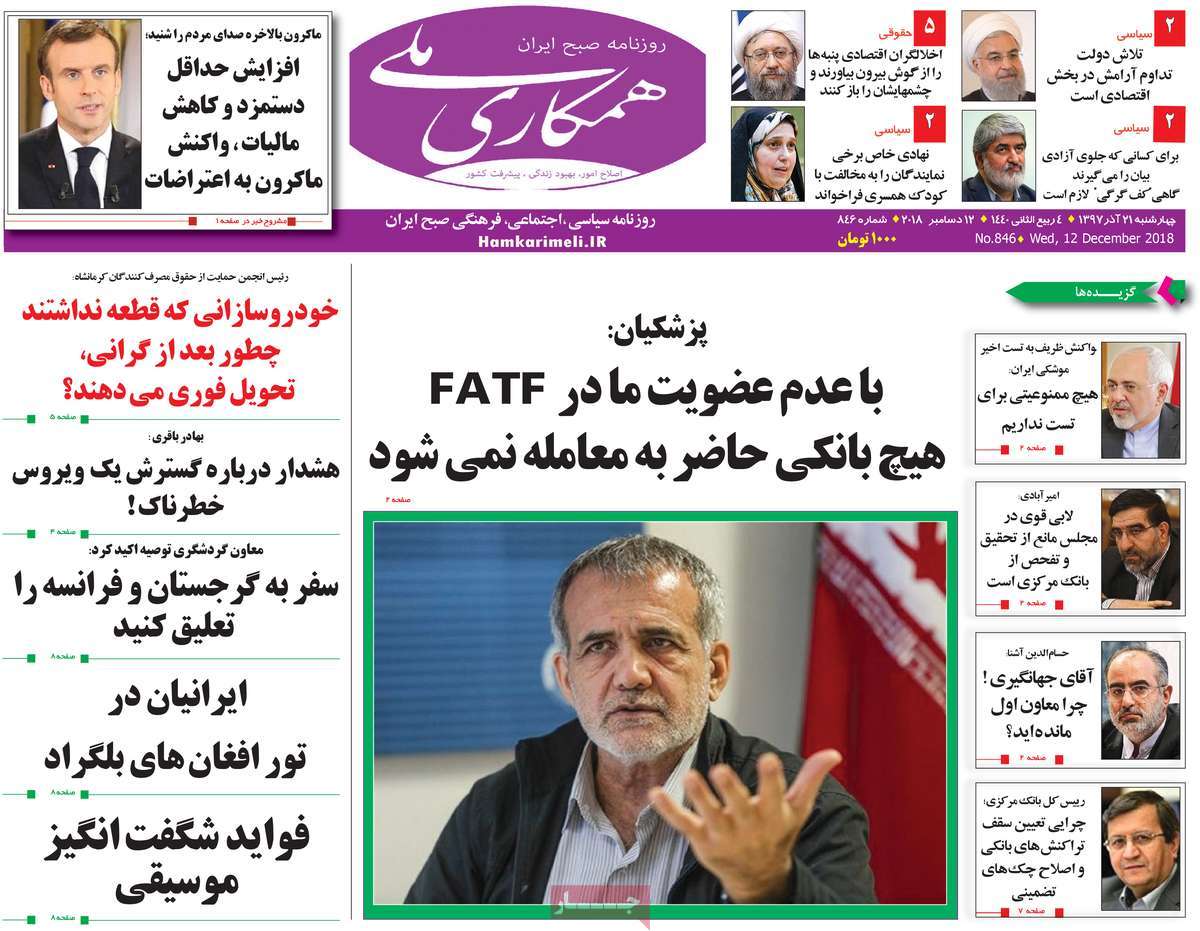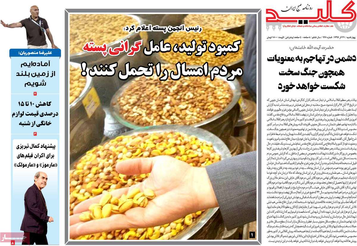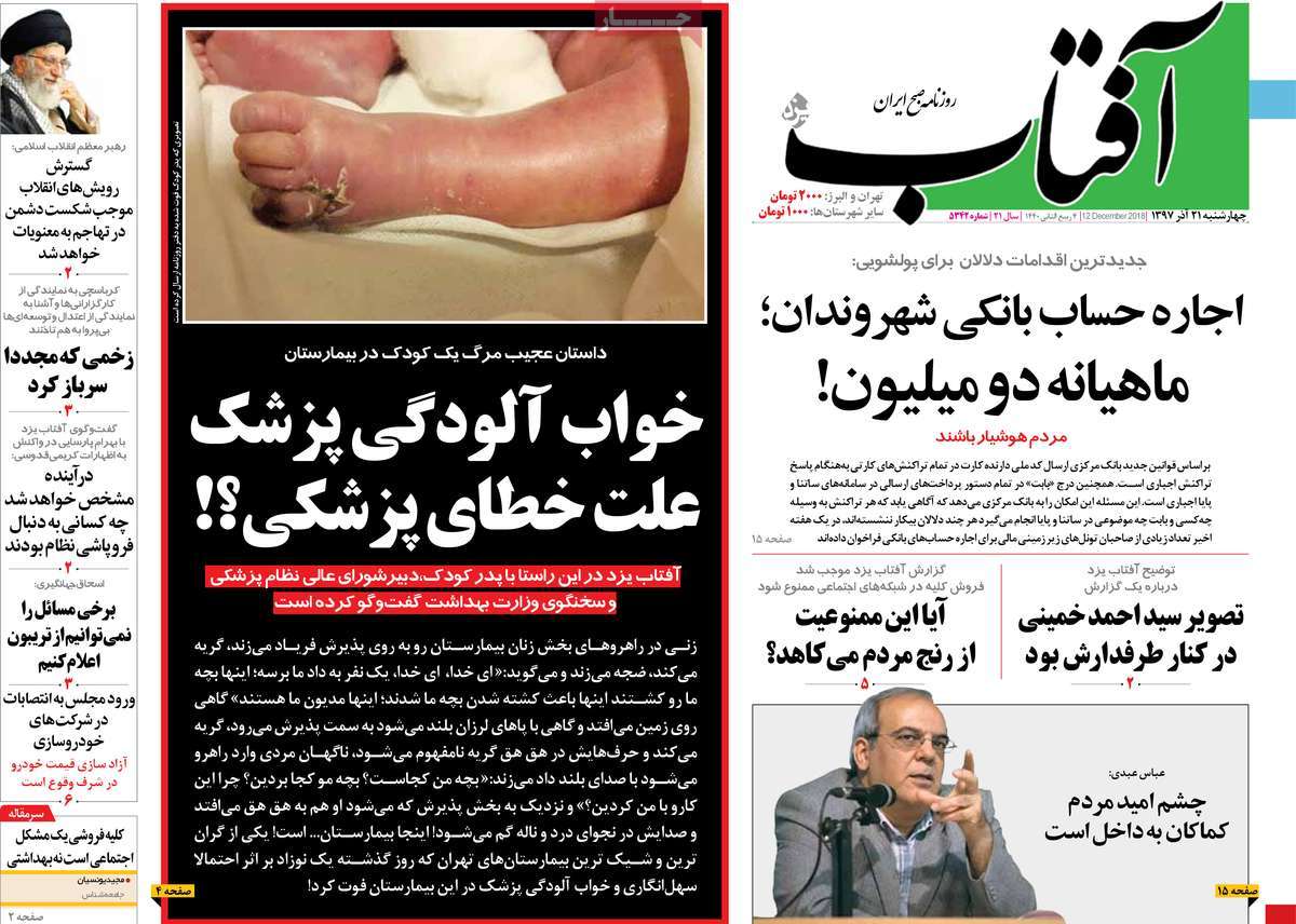 صفحه اول روزنامه های کشوری و استانی؛ چهارشنبه 21 آذرماه 1397 /تصاویر