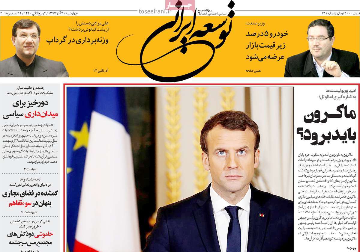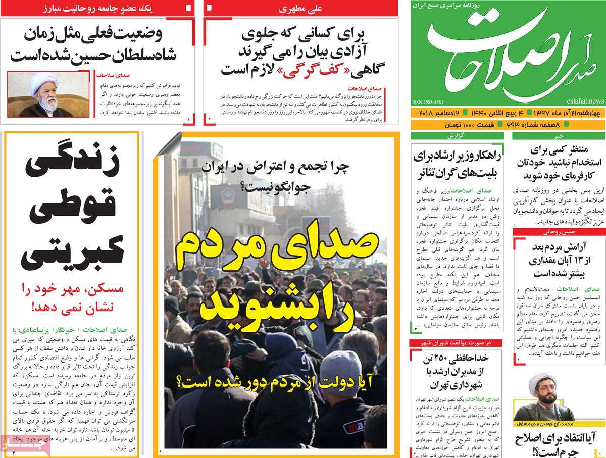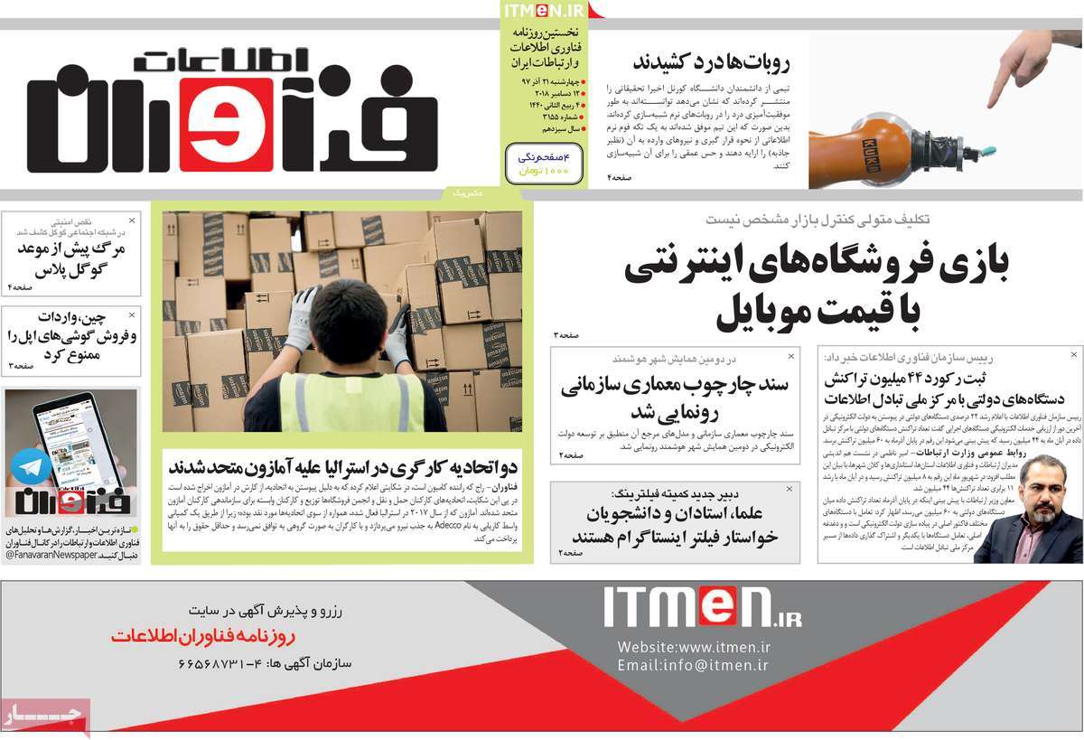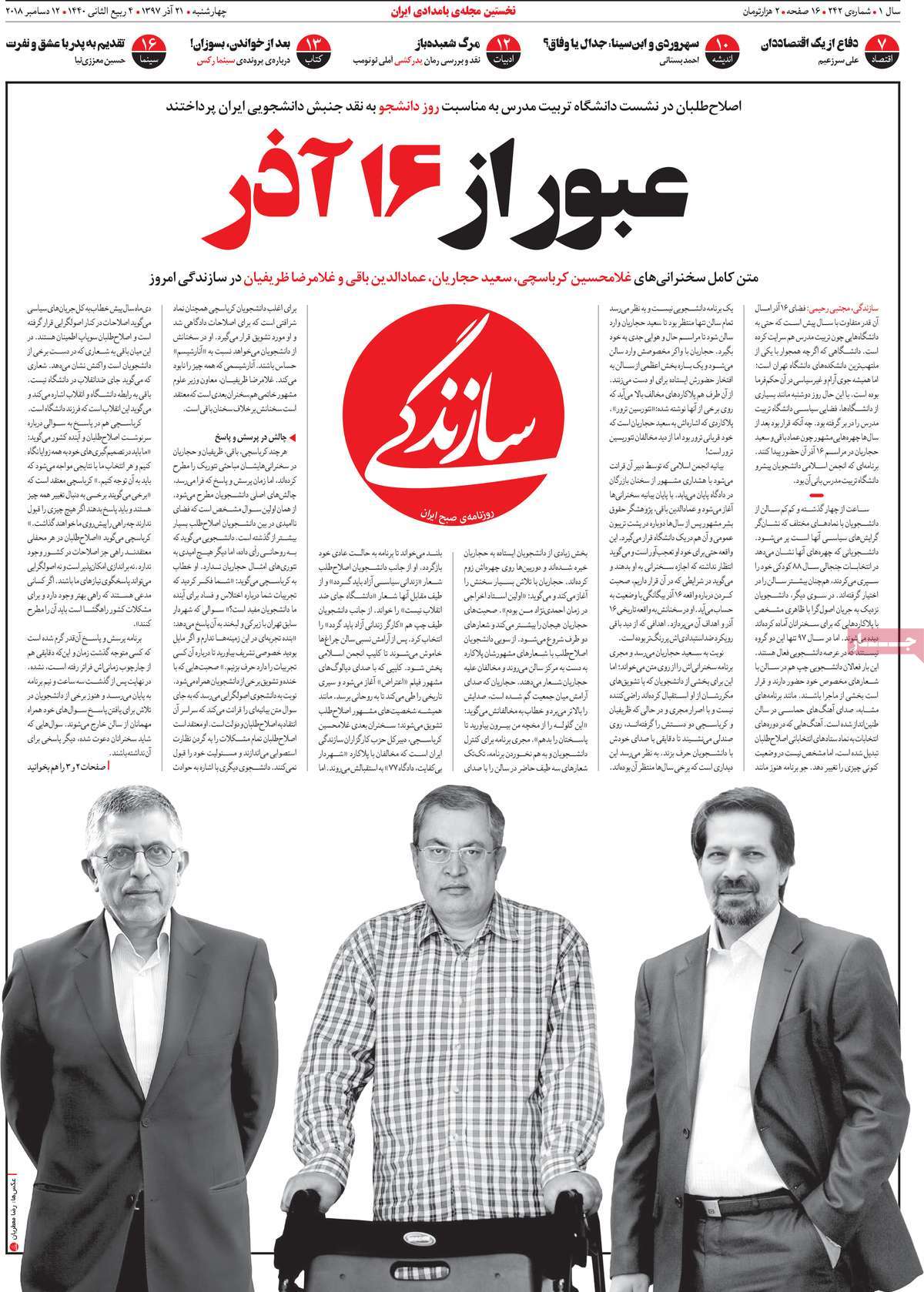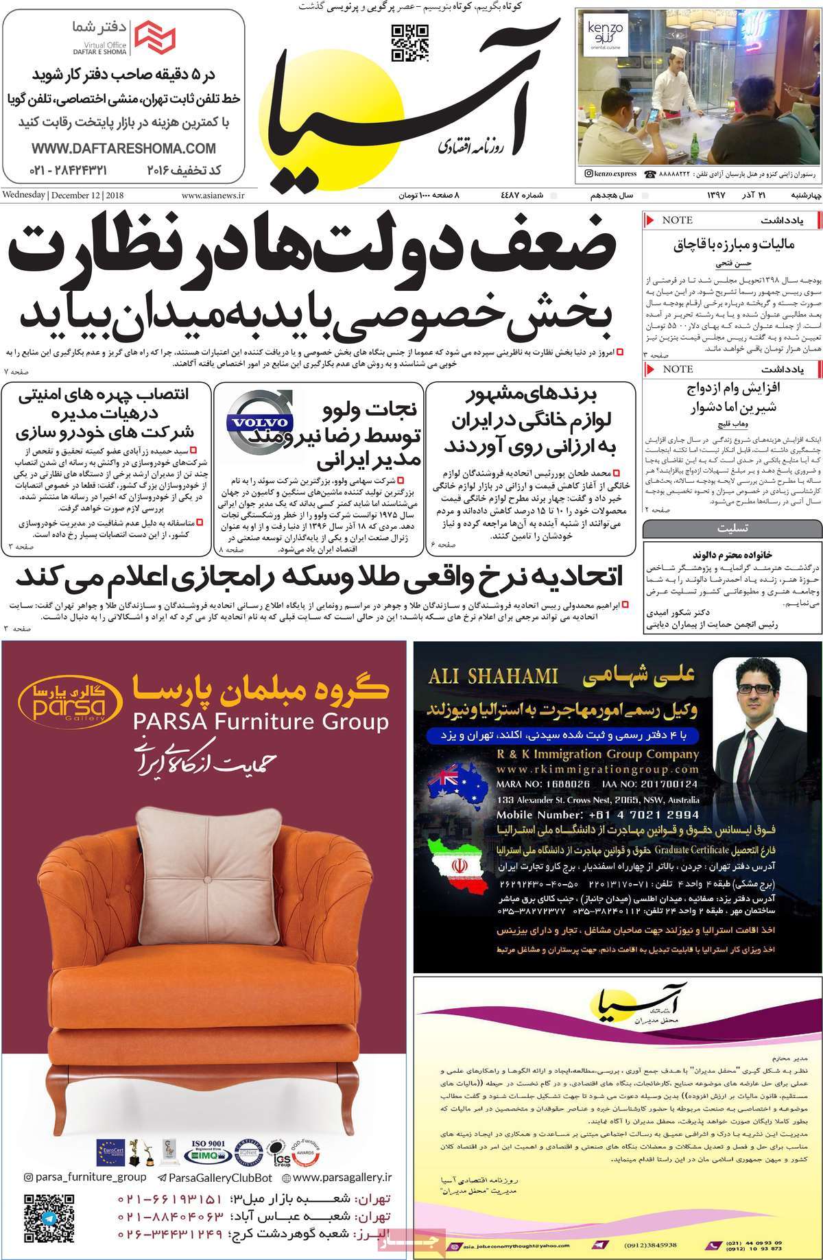 صفحه اول روزنامه های کشوری و استانی؛ چهارشنبه 21 آذرماه 1397 /تصاویر