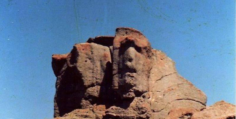این پیکره سنگی جلوهگر سیمای نیمتنه انسانی است که در کنار آن تمساحی عظیمالجثه آرمیده است. در دامنه این بنای حیرتانگیز، غاری بزرگ نظر بازدید کنندگان را به خود جلب میکند. احاطه این پیکره سنگی توسط کوههای سربه فلک کشیده، همانند قلعهای طبیعی سترگ، بر افسانهای بون آن دامن میزند، به جهت وجود آثاری از آبگیر و سد در قسمت شمالی پیکره، اهالی اعتقاد دارند این مجسمه به دلیل شباهت به صورت انسان، توسط اجدادشان تراشیده شده تا به شکل کنونی درآمده است.