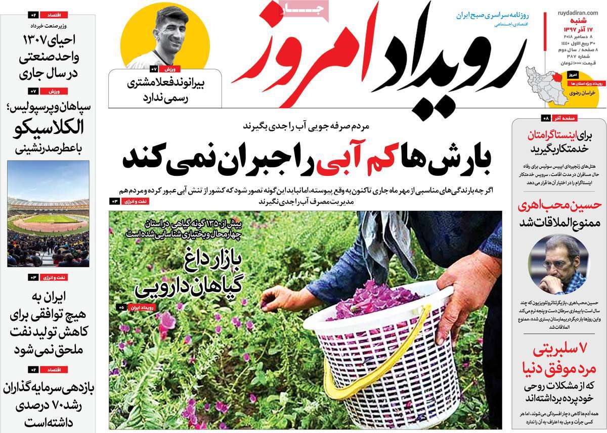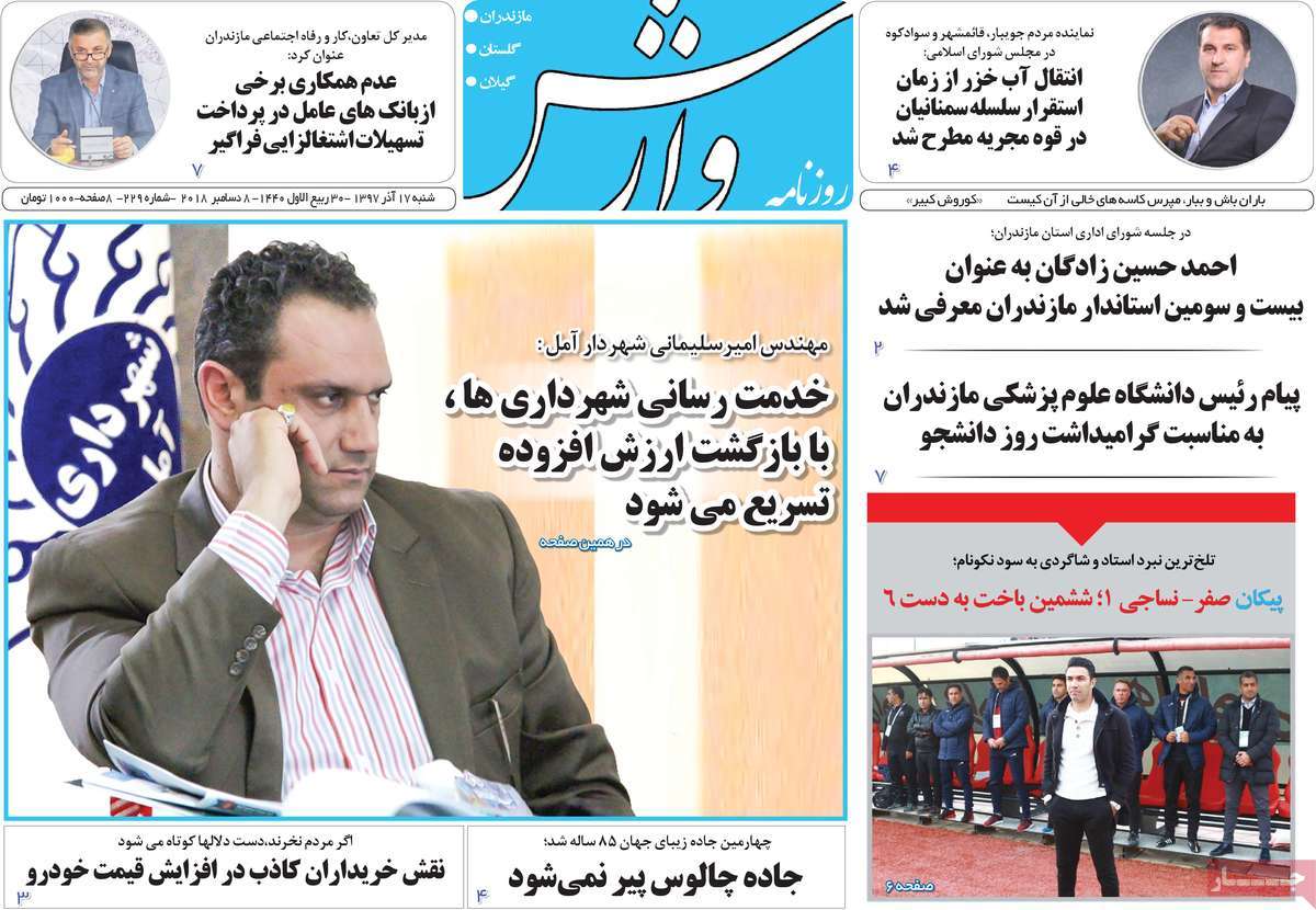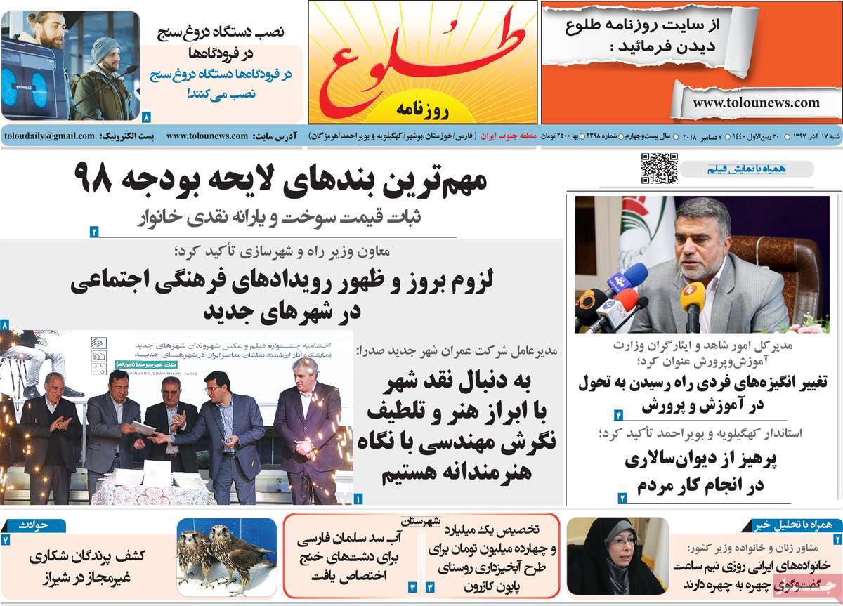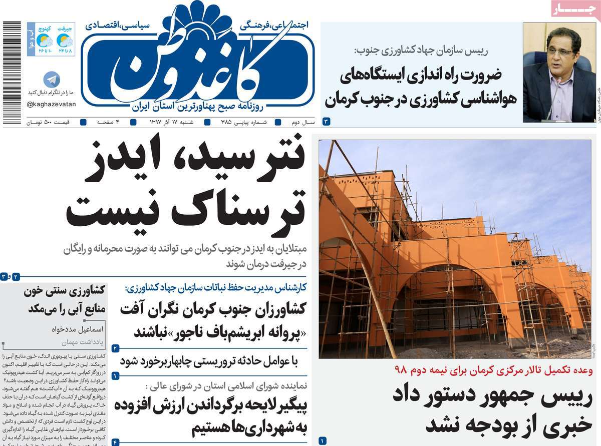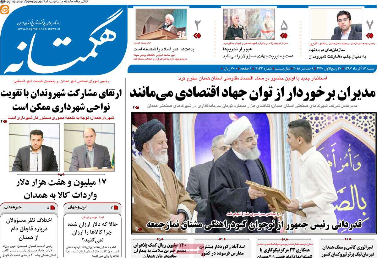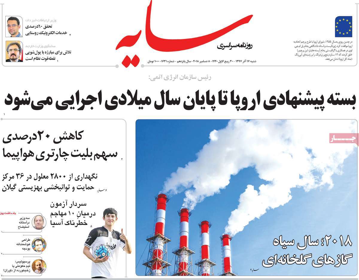 صفحه اول روزنامه های کشوری و استانی؛ شنبه 17 آذرماه 1397 /تصاویر