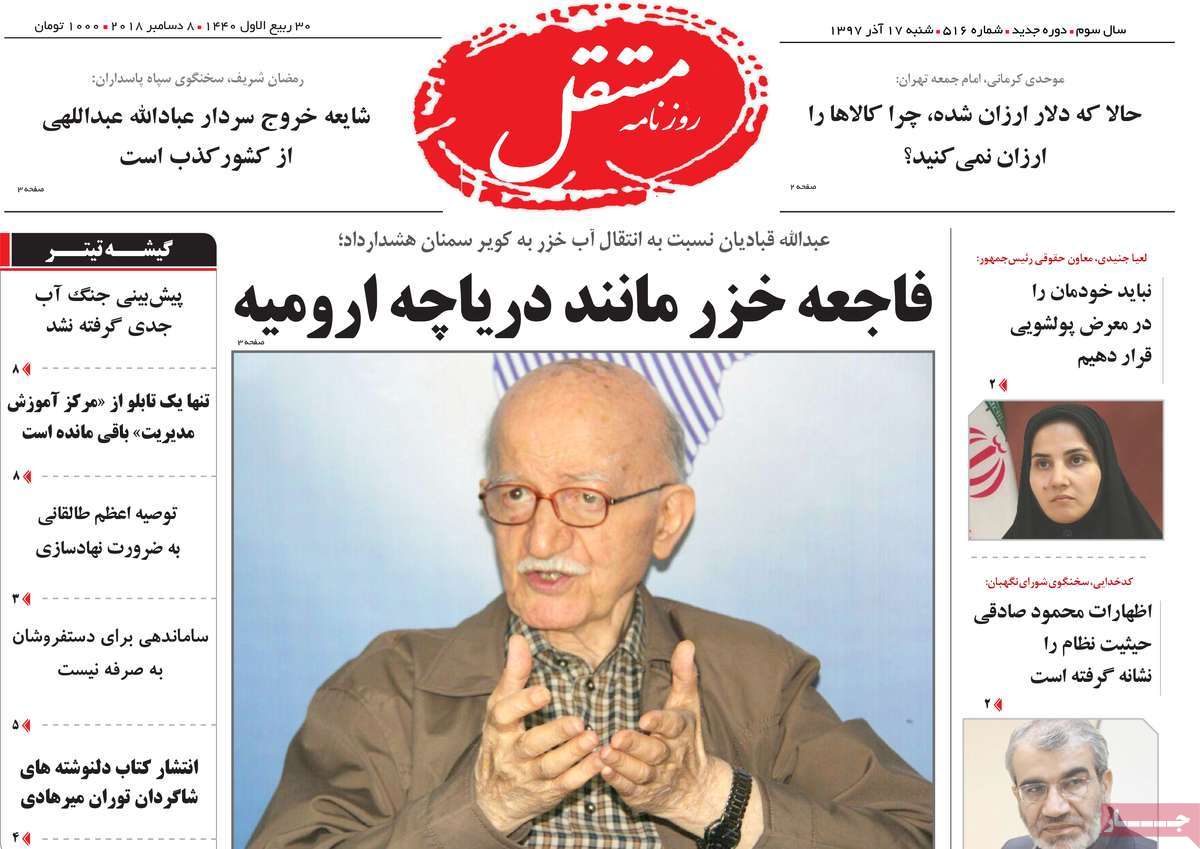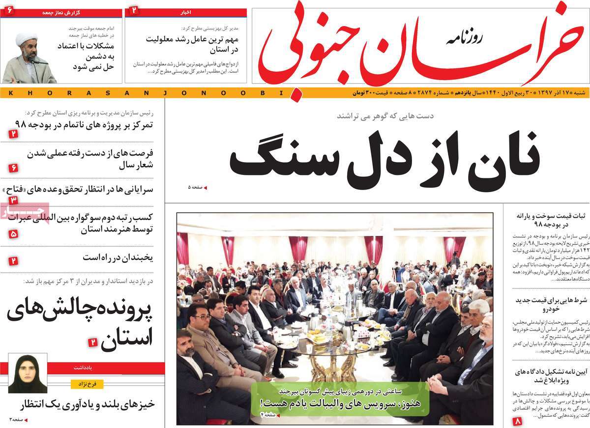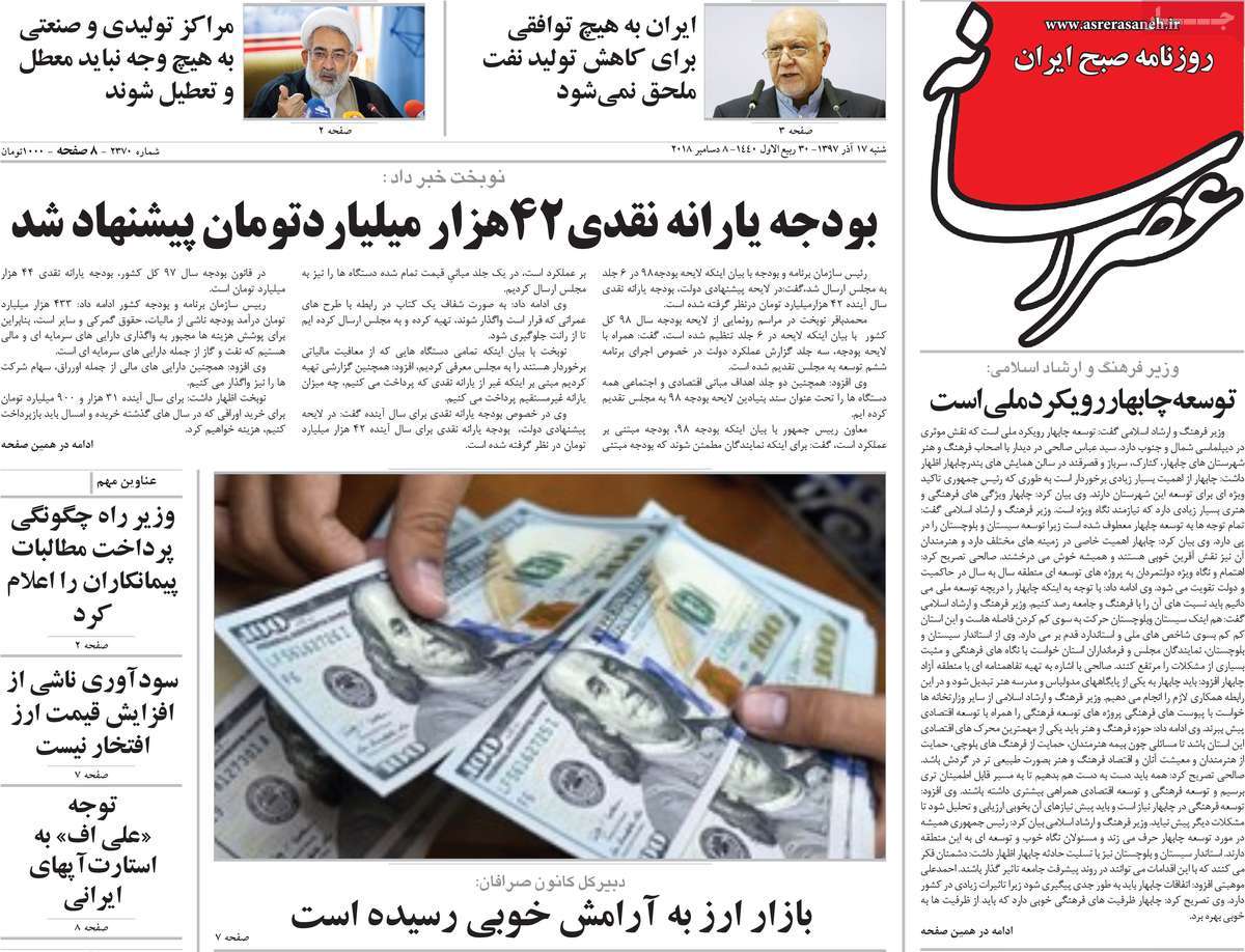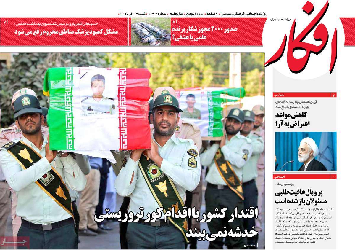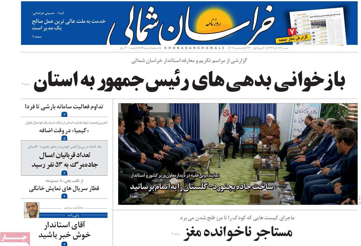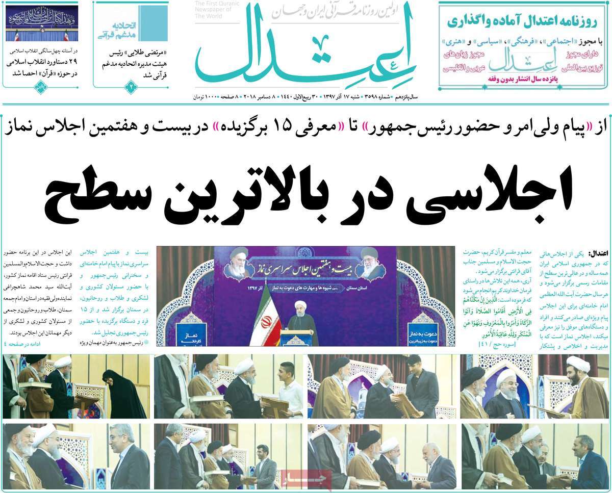 صفحه اول روزنامه های کشوری و استانی؛ شنبه 17 آذرماه 1397 /تصاویر