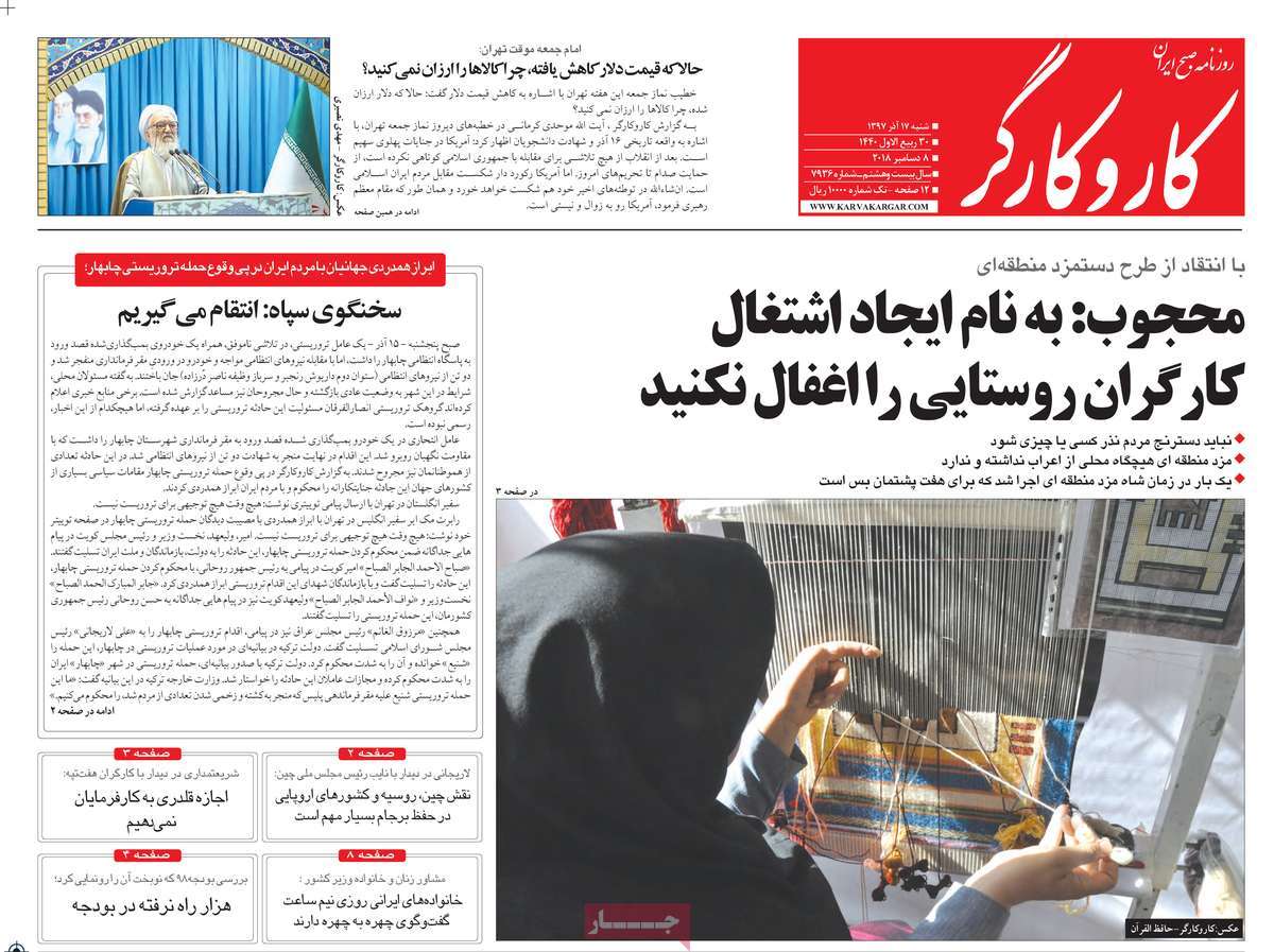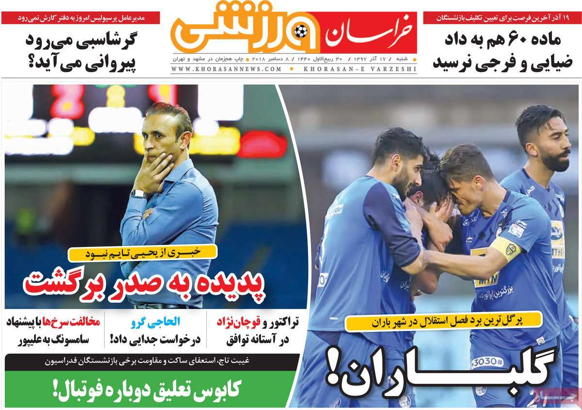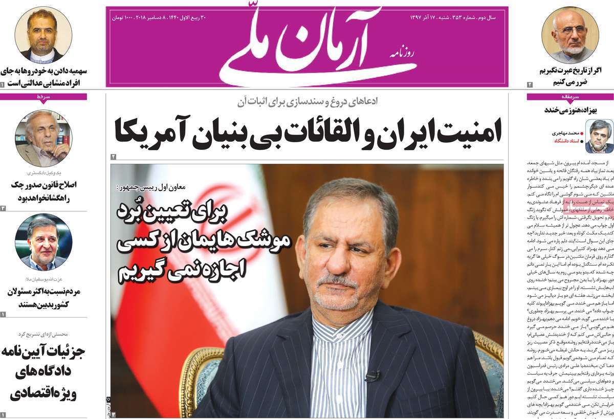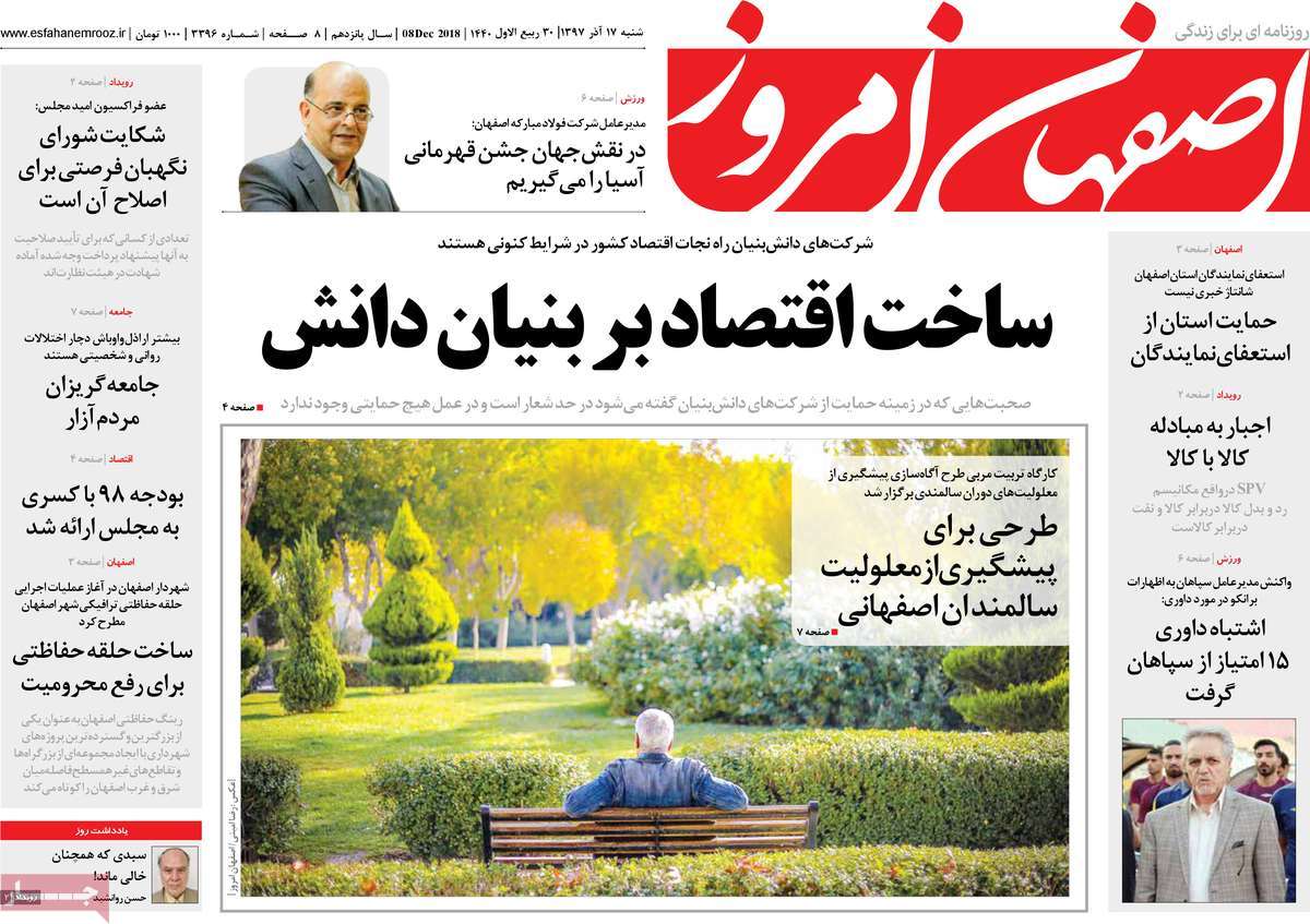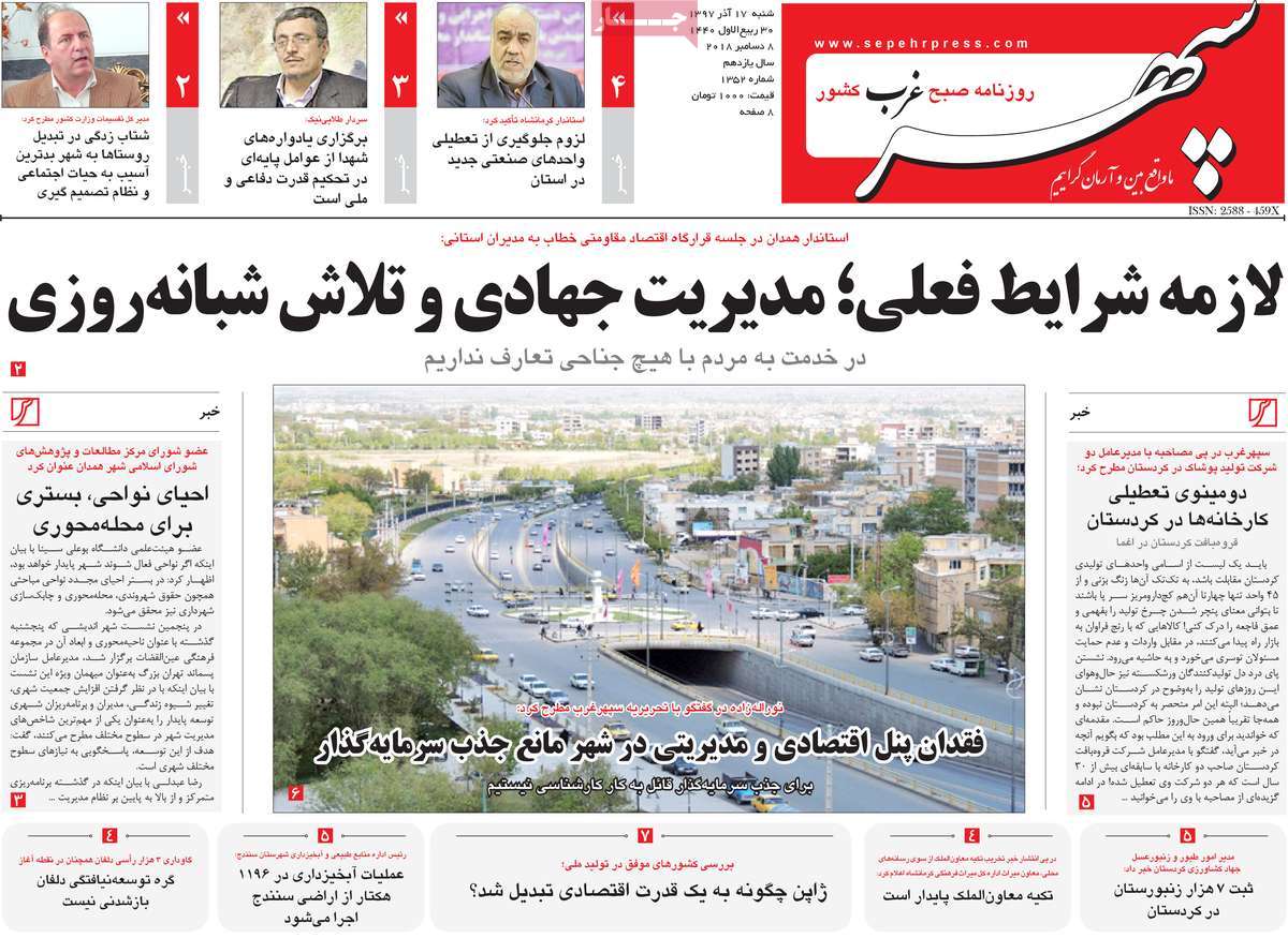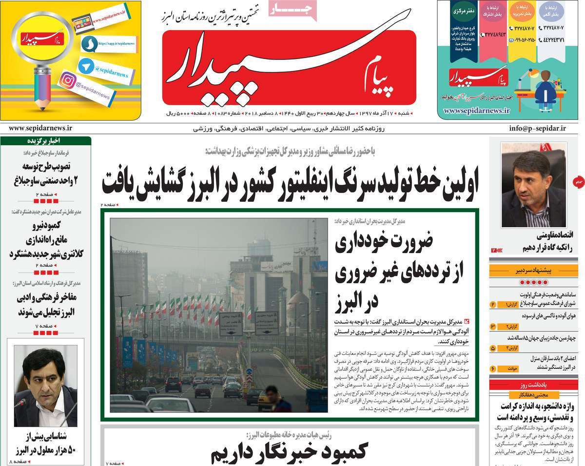 صفحه اول روزنامه های کشوری و استانی؛ شنبه 17 آذرماه 1397 /تصاویر