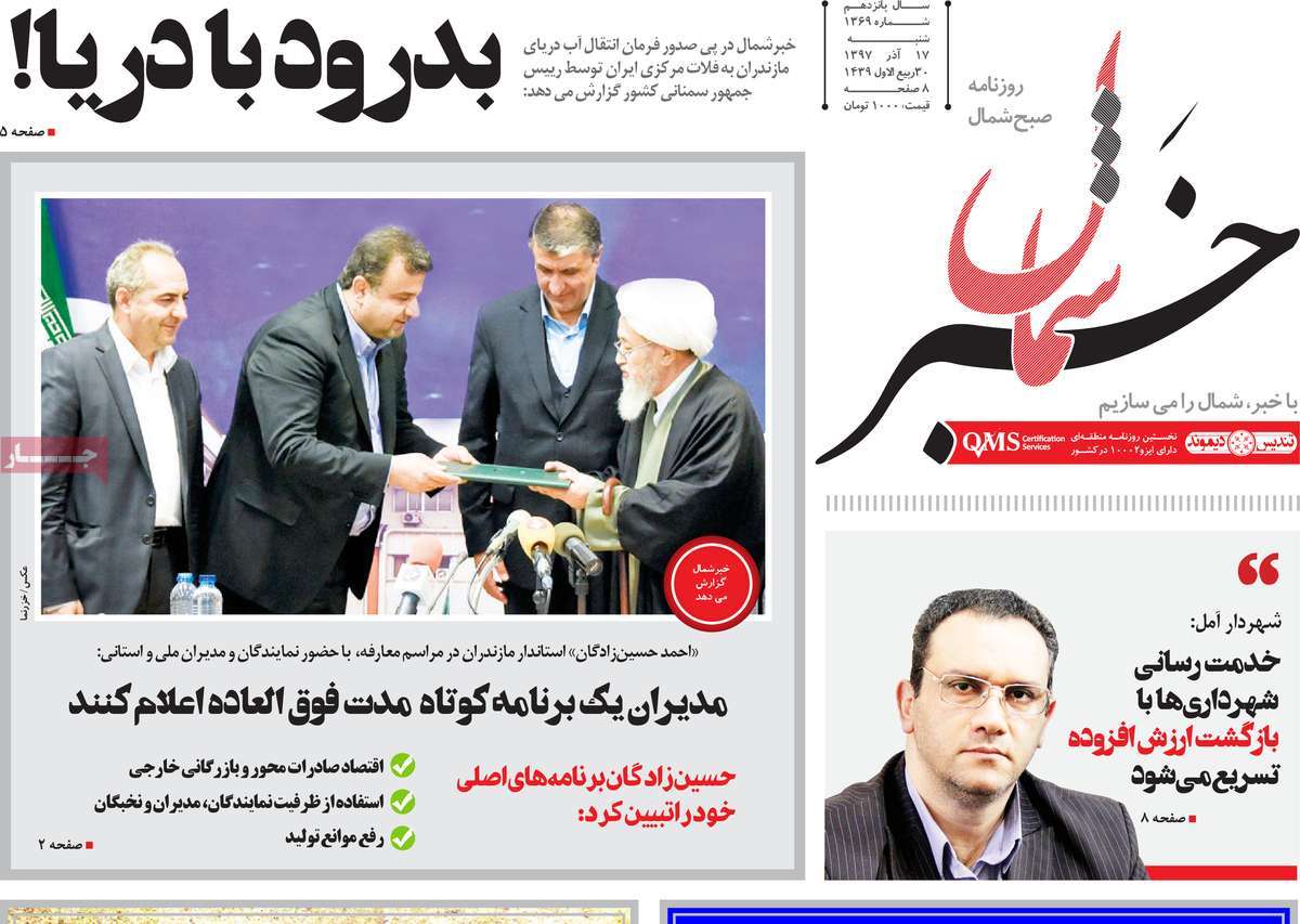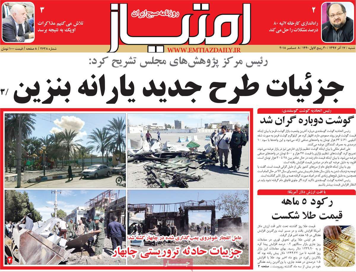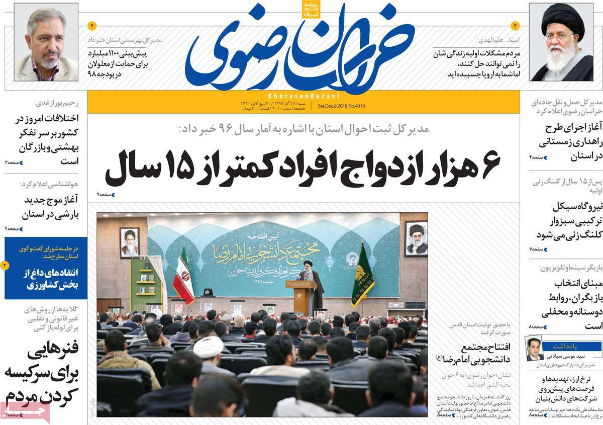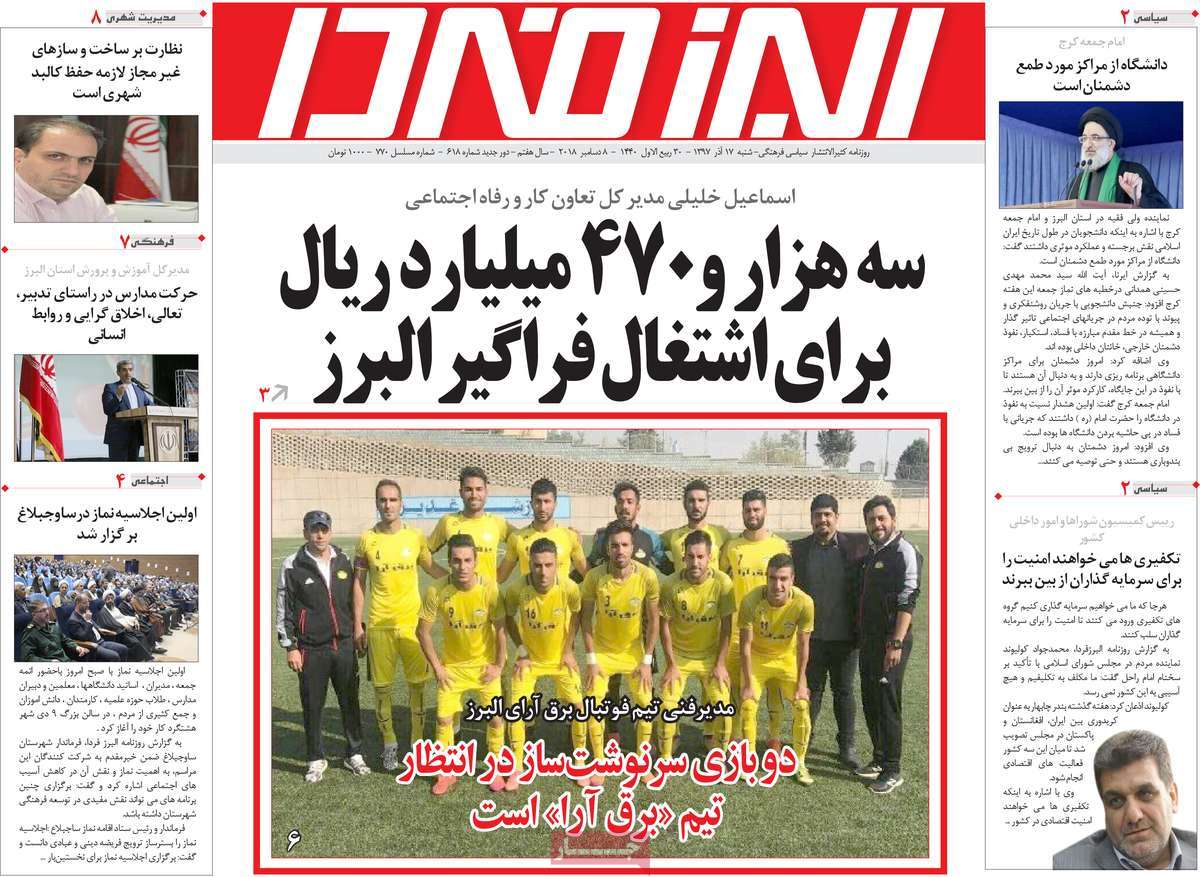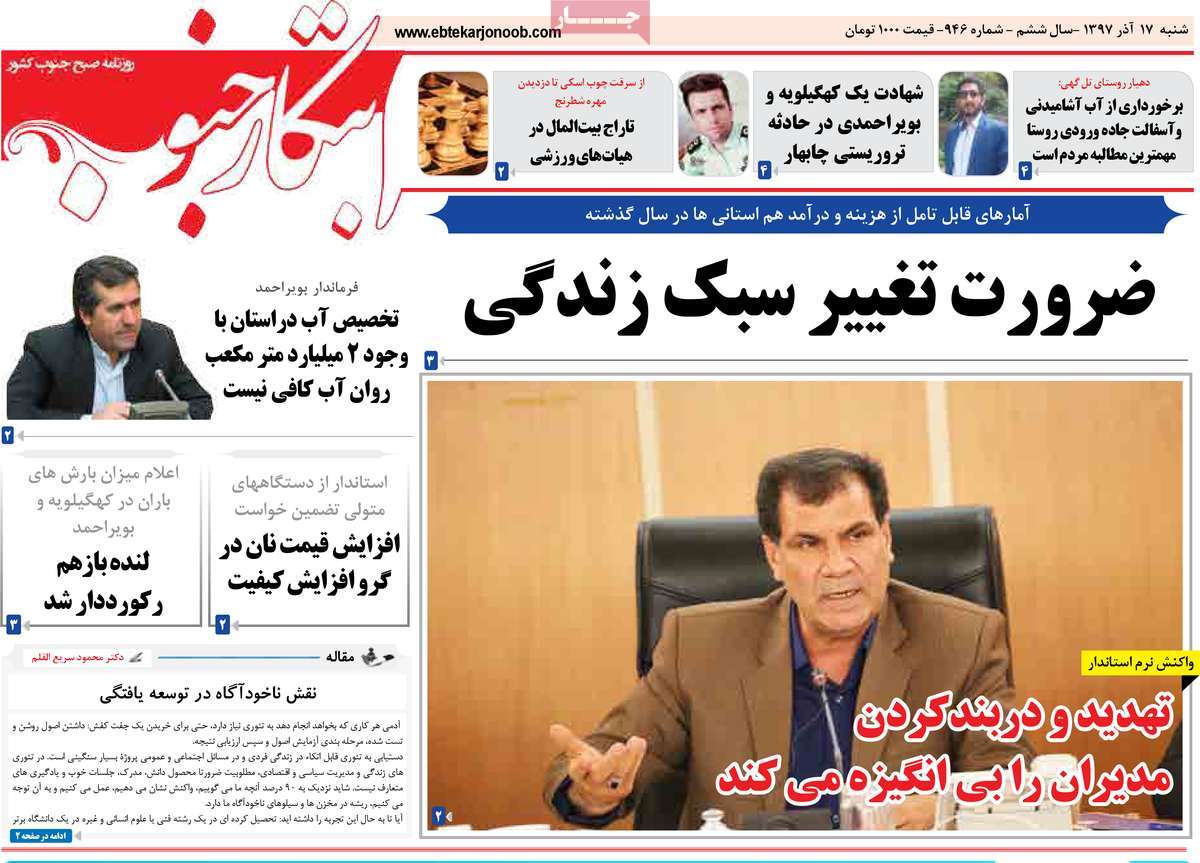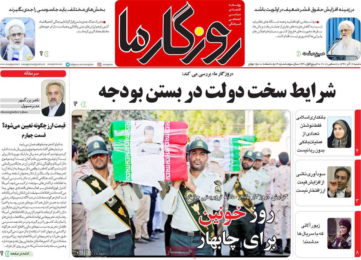 صفحه اول روزنامه های کشوری و استانی؛ شنبه 17 آذرماه 1397 /تصاویر