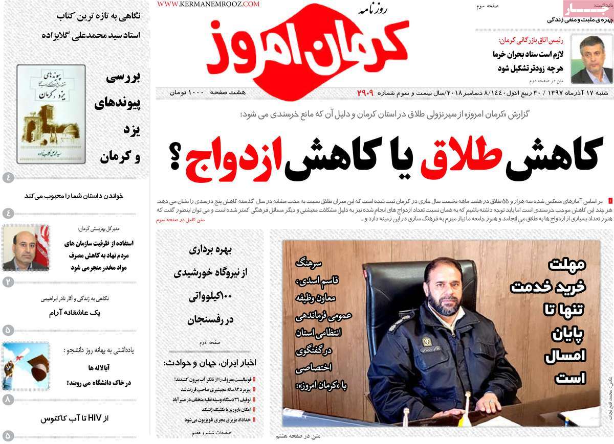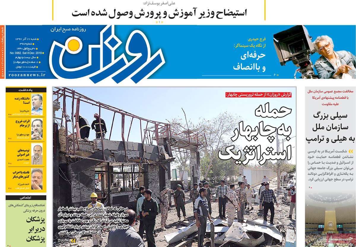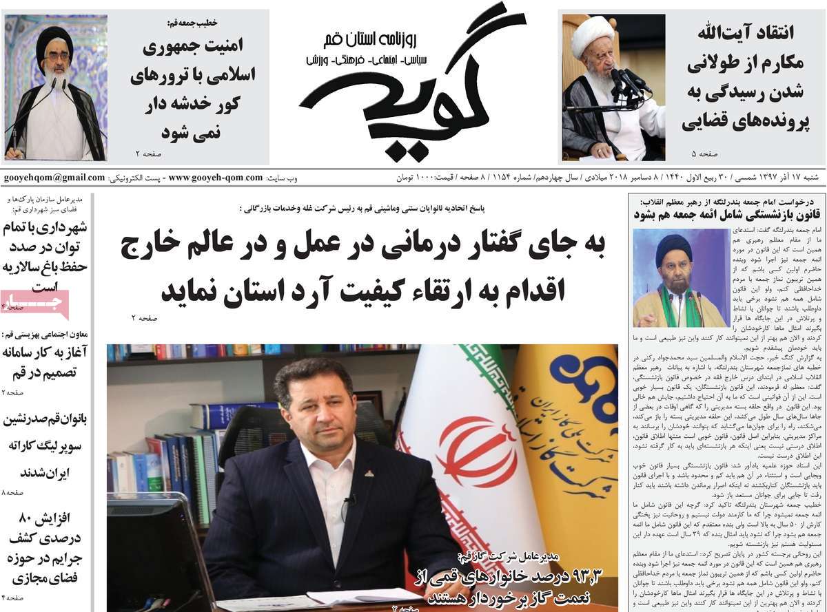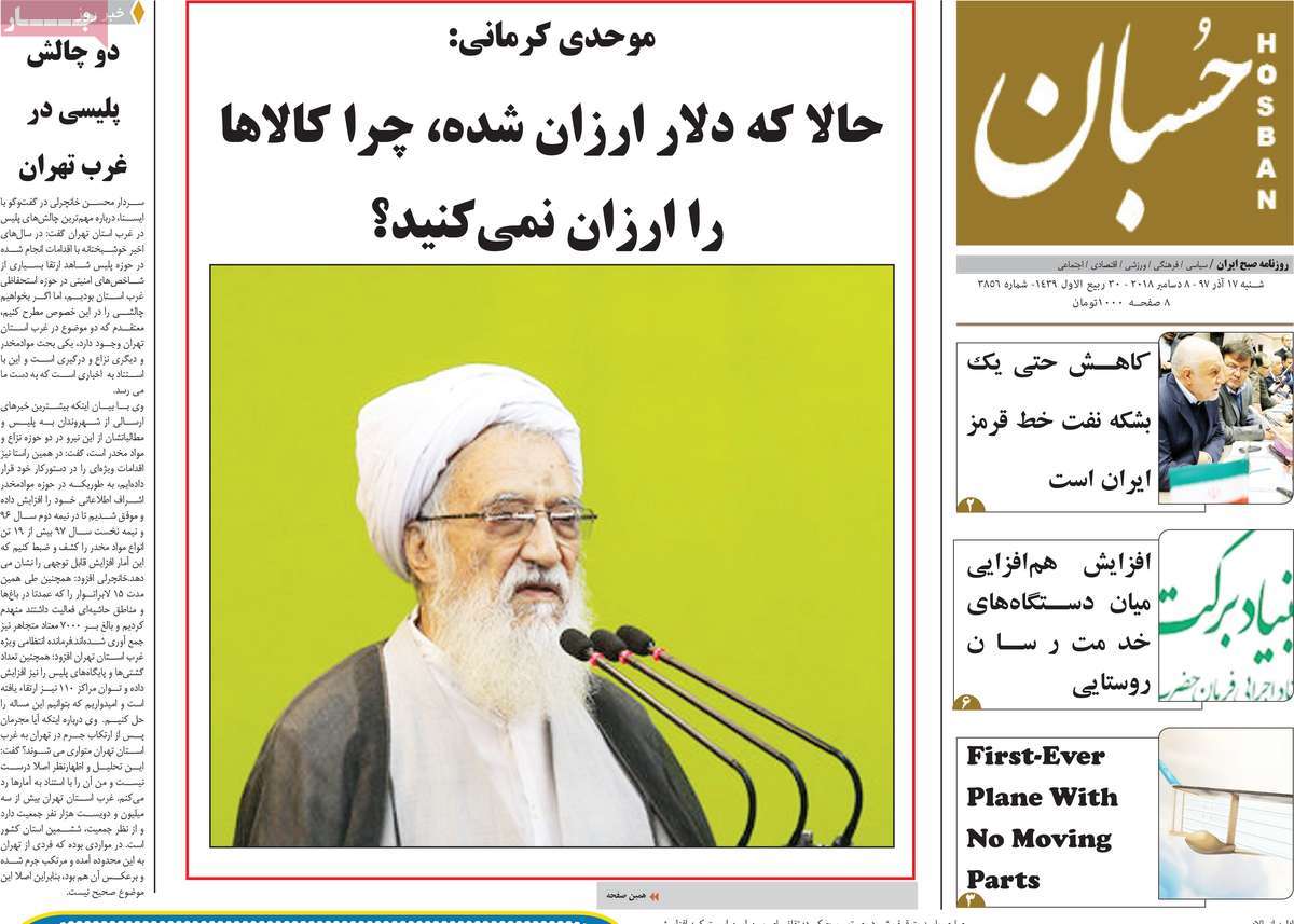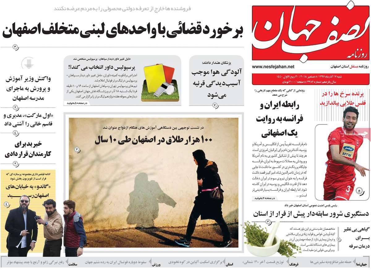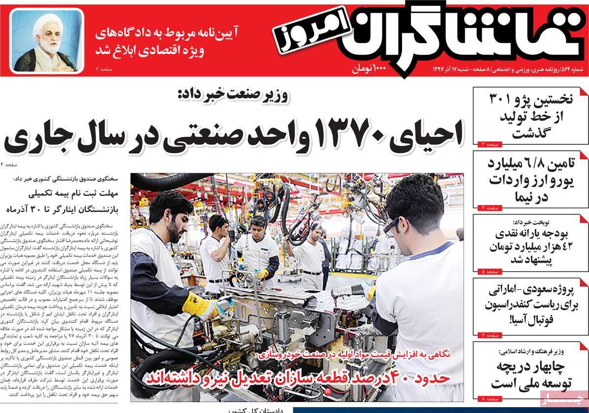 صفحه اول روزنامه های کشوری و استانی؛ شنبه 17 آذرماه 1397 /تصاویر