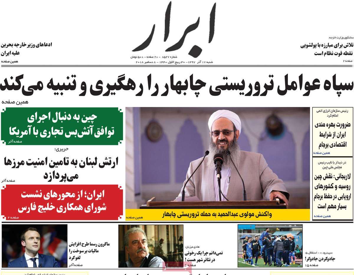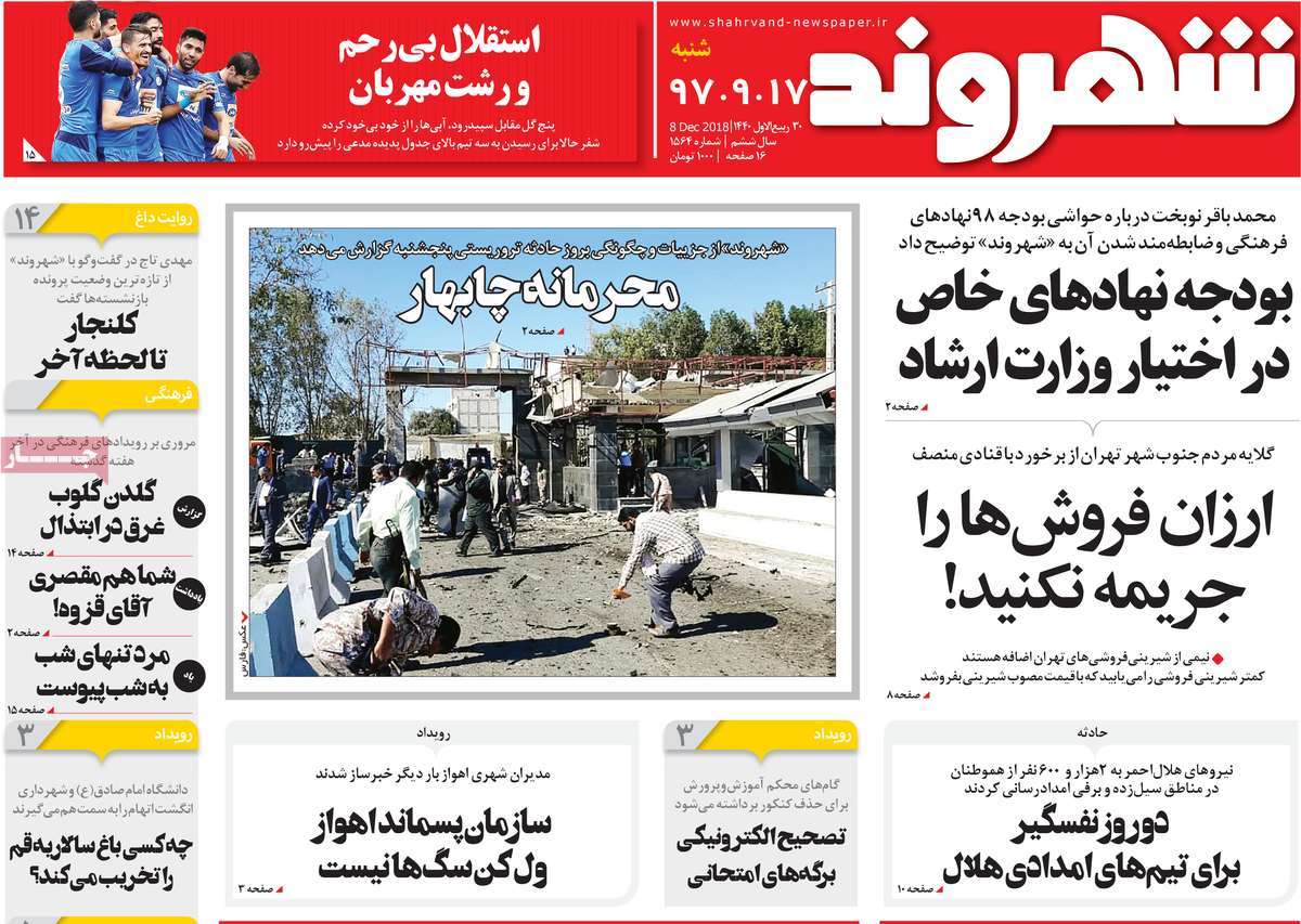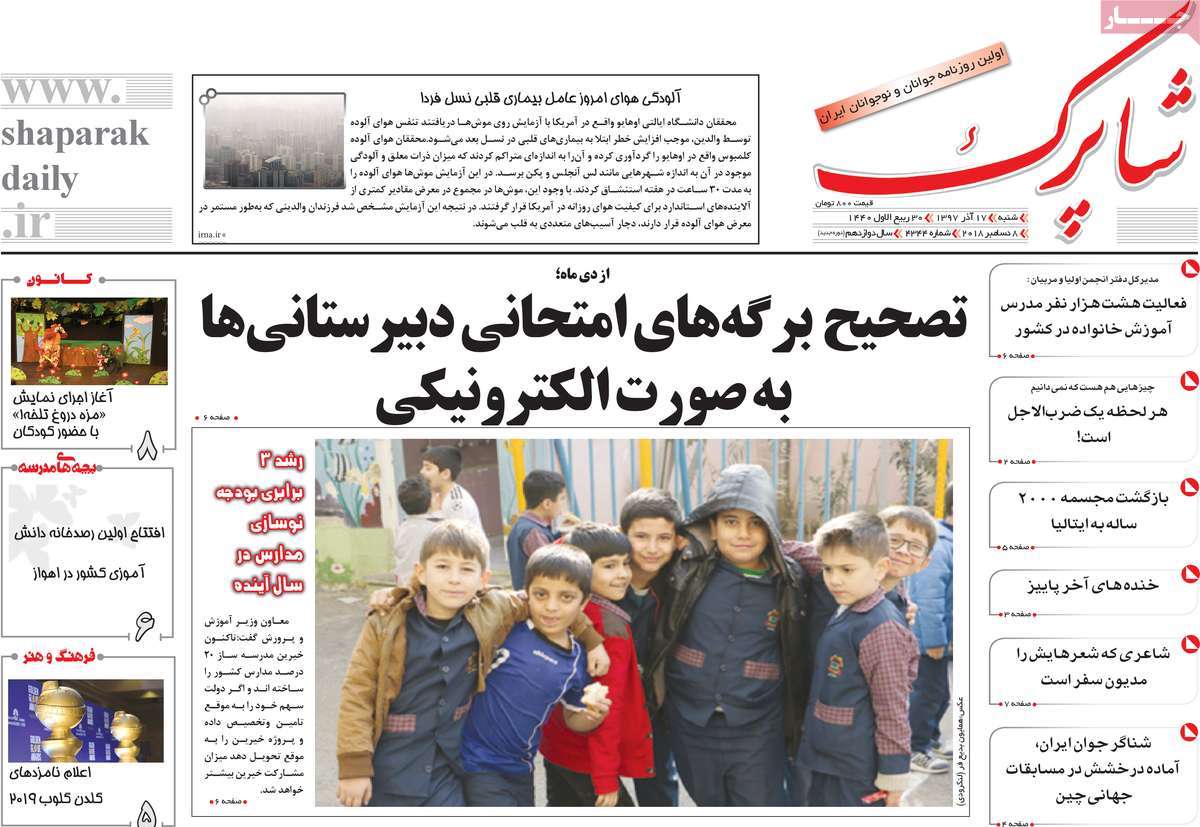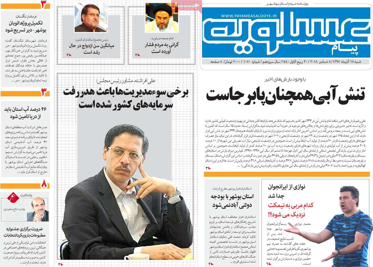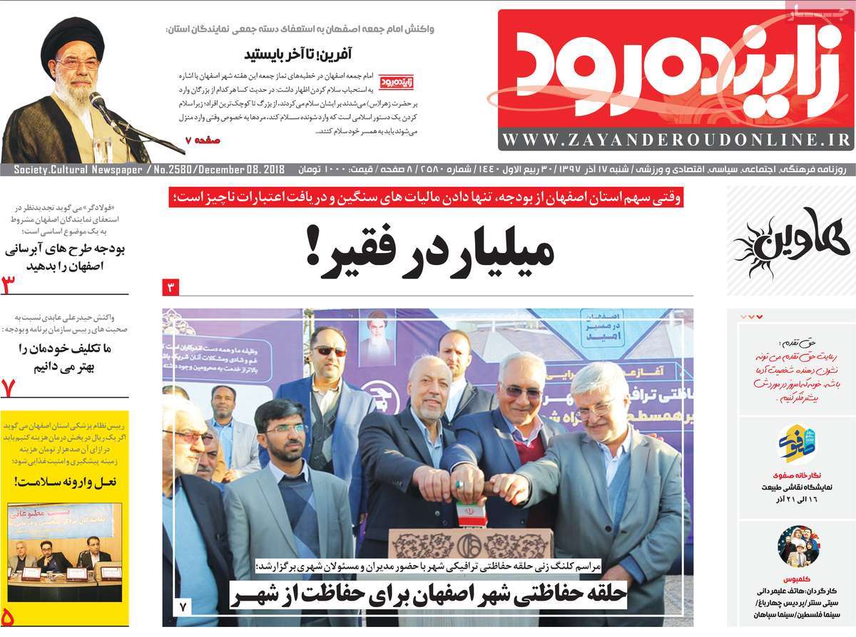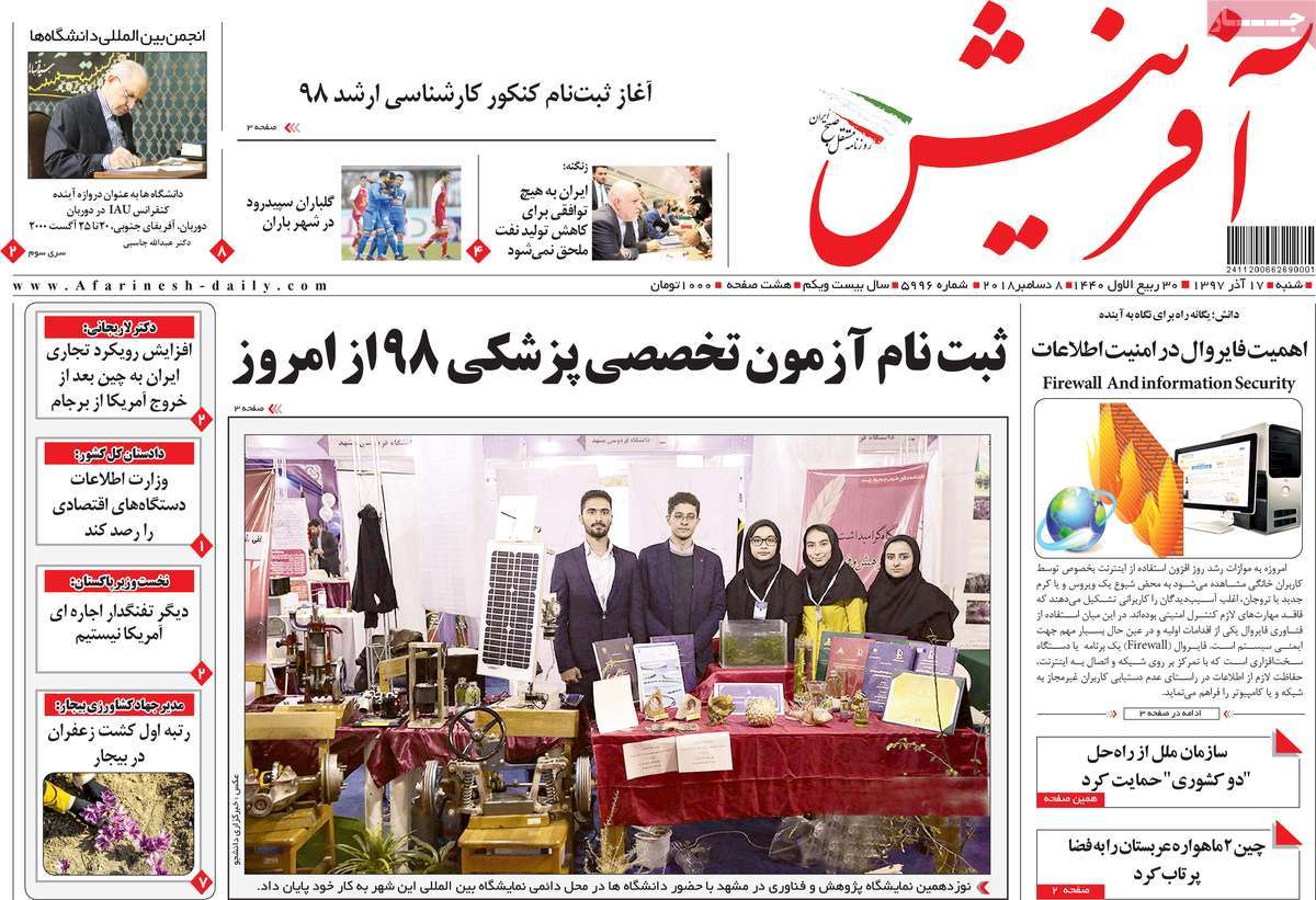 صفحه اول روزنامه های کشوری و استانی؛ شنبه 17 آذرماه 1397 /تصاویر