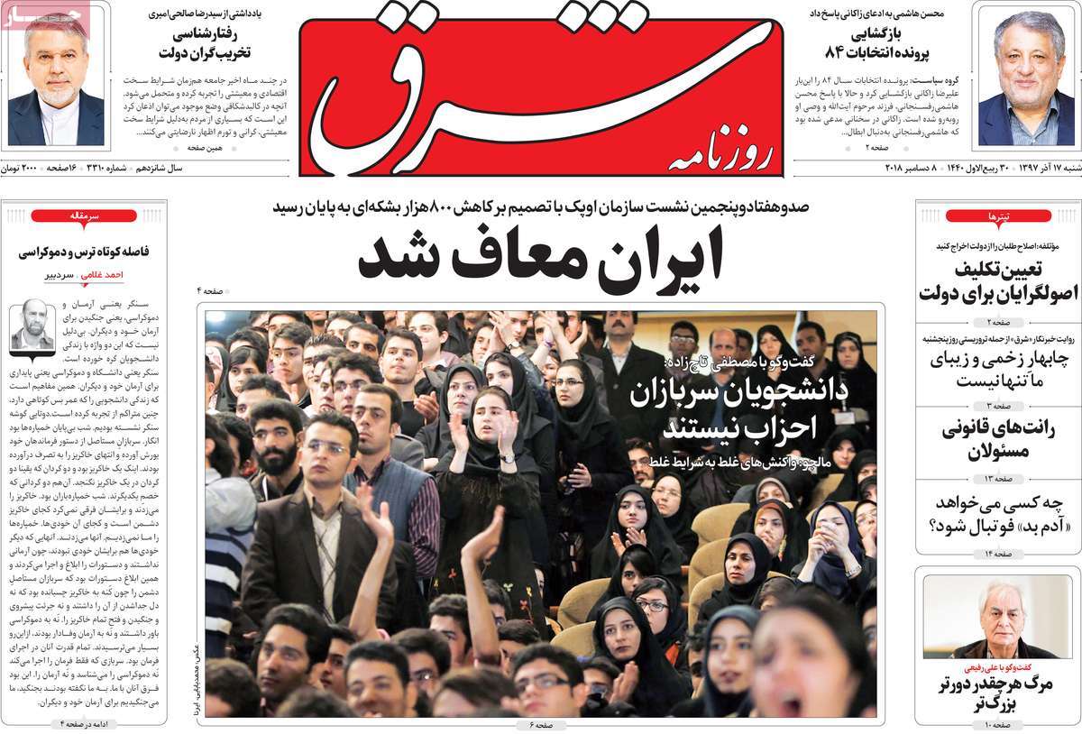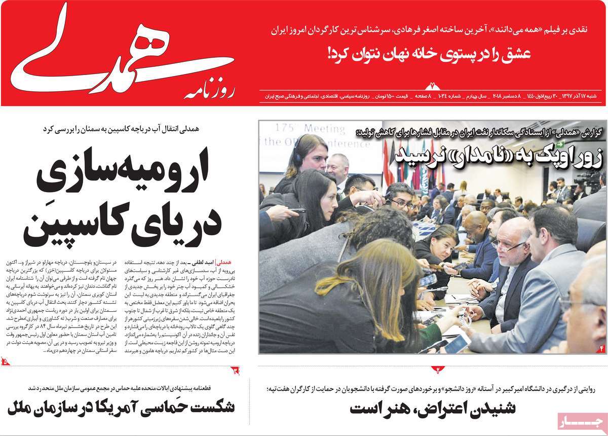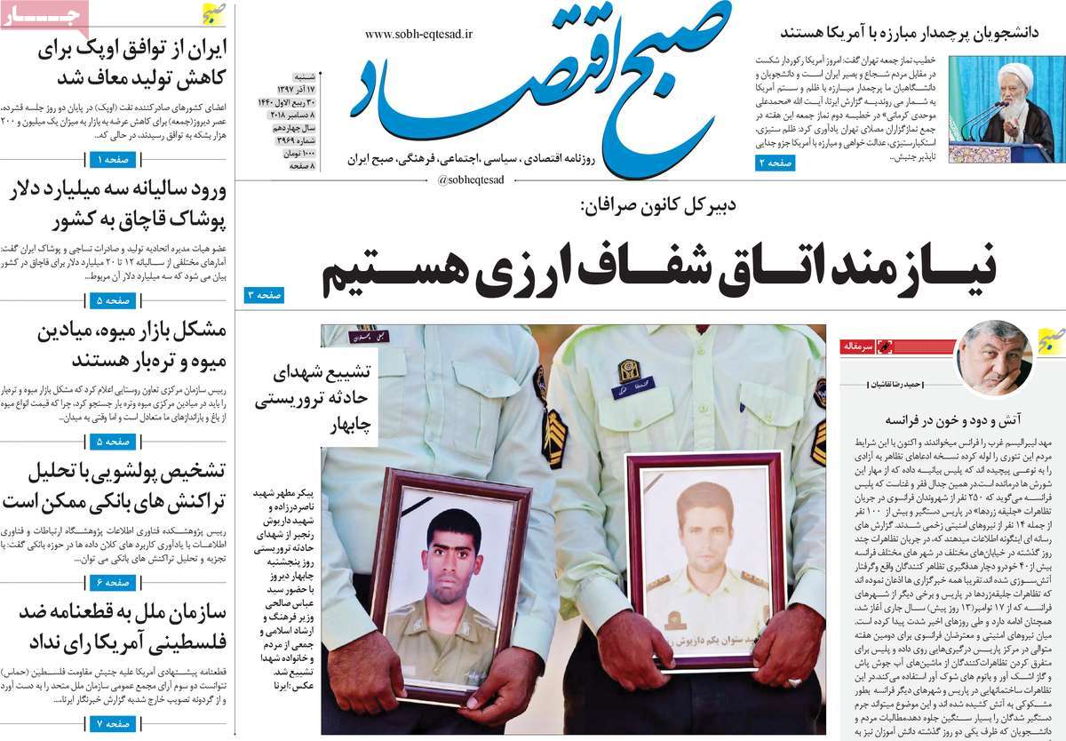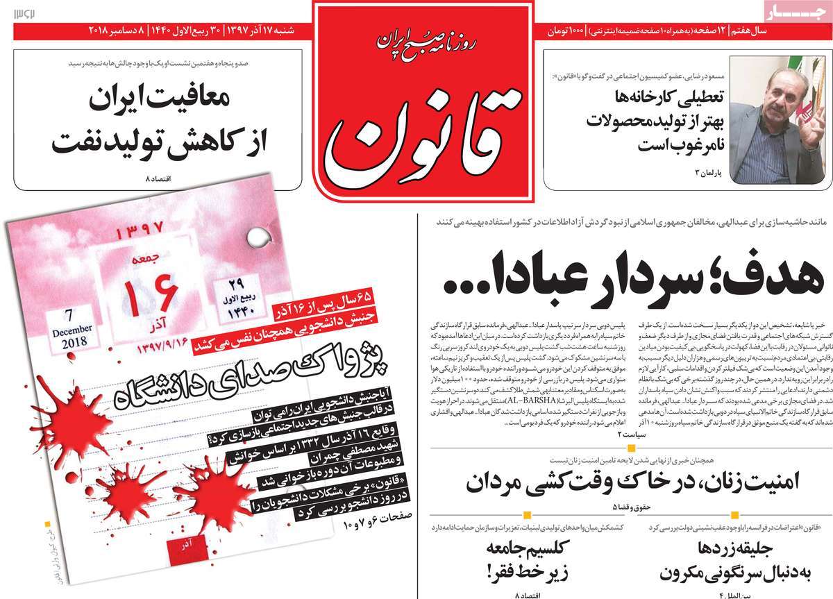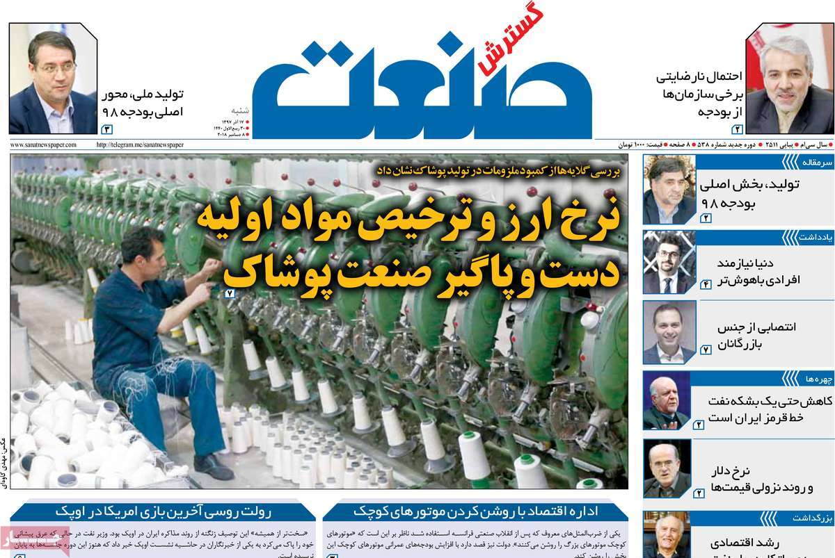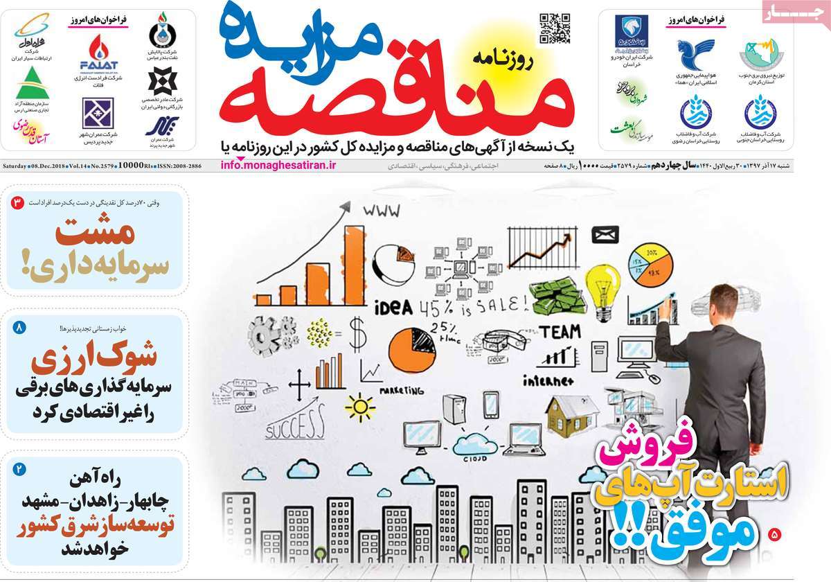 صفحه اول روزنامه های کشوری و استانی؛ شنبه 17 آذرماه 1397 /تصاویر