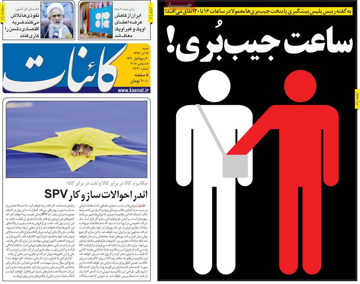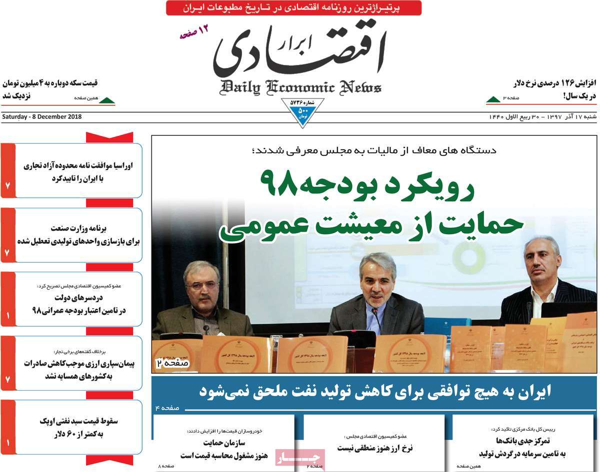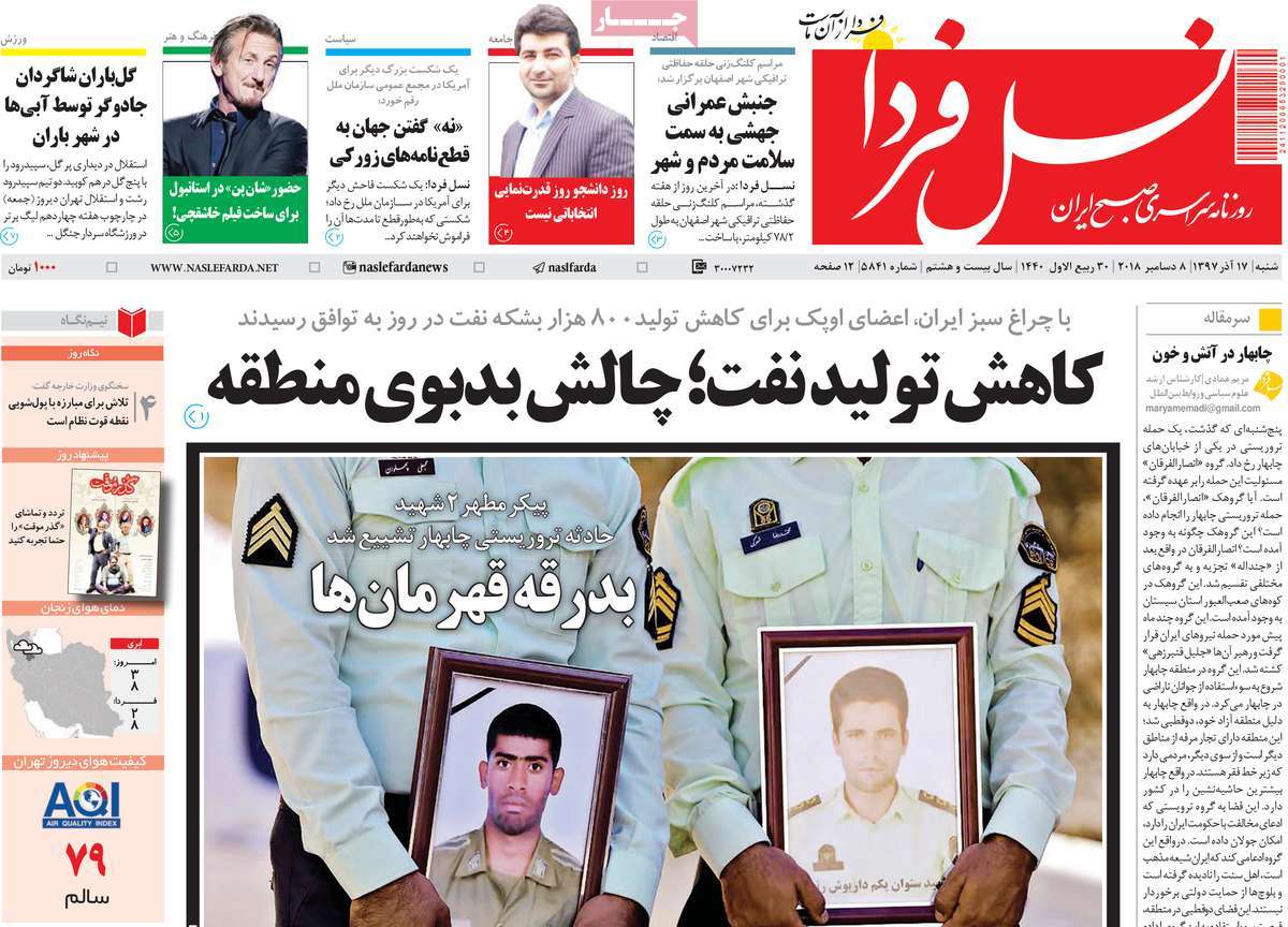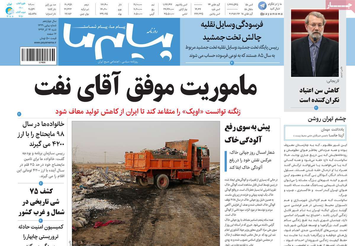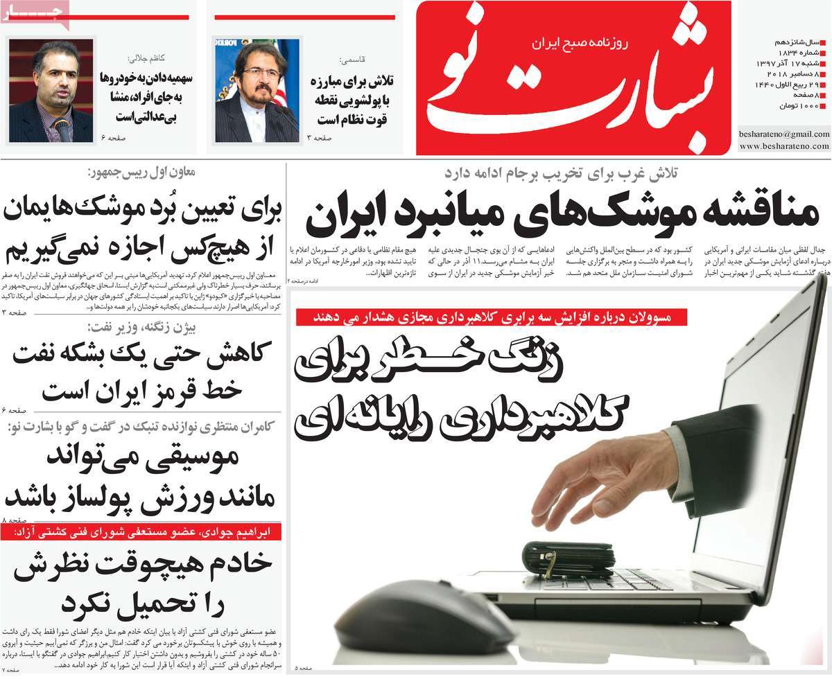 صفحه اول روزنامه های کشوری و استانی؛ شنبه 17 آذرماه 1397 /تصاویر
