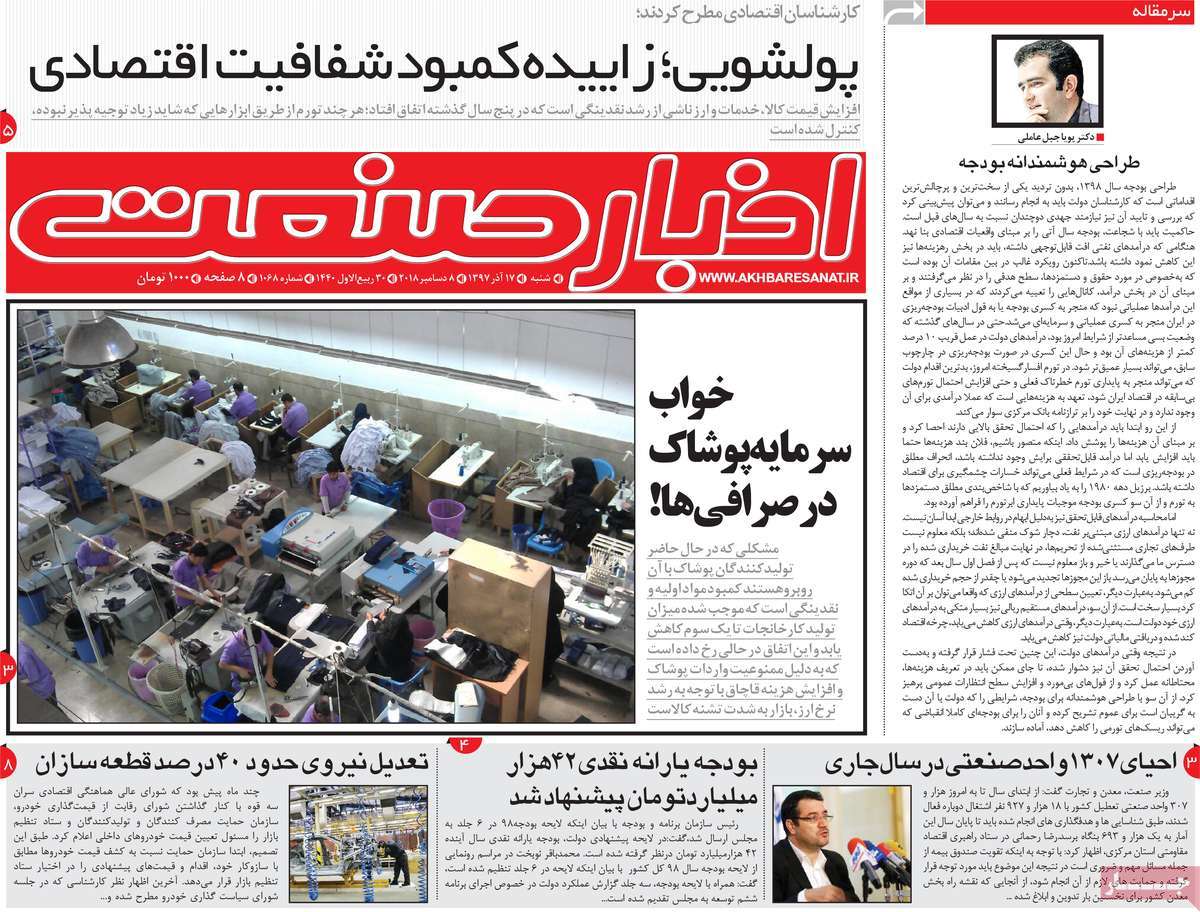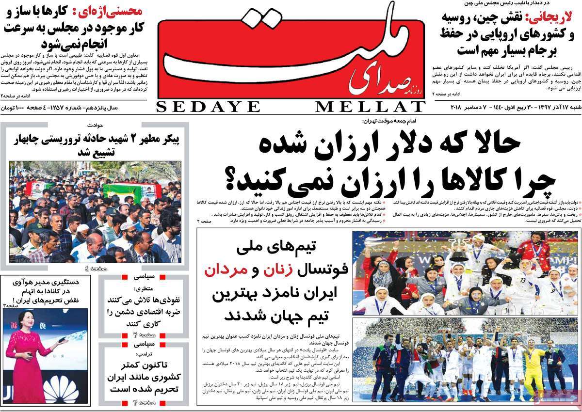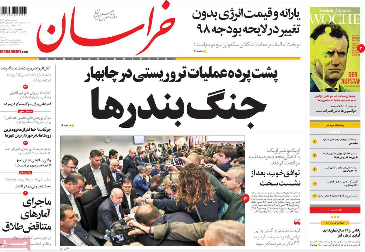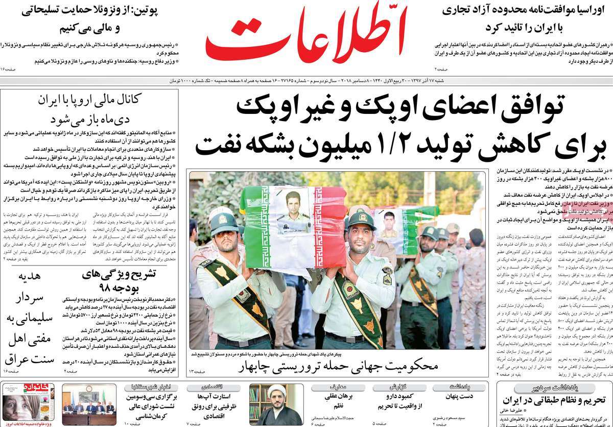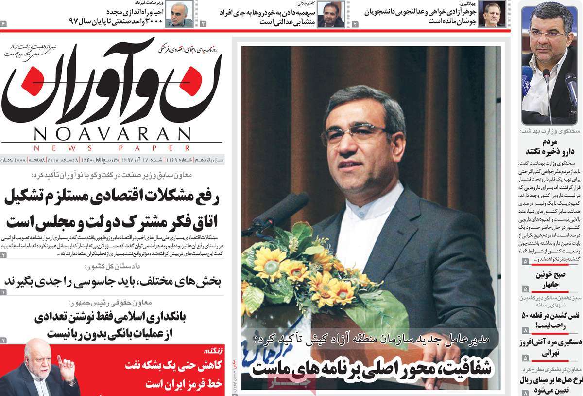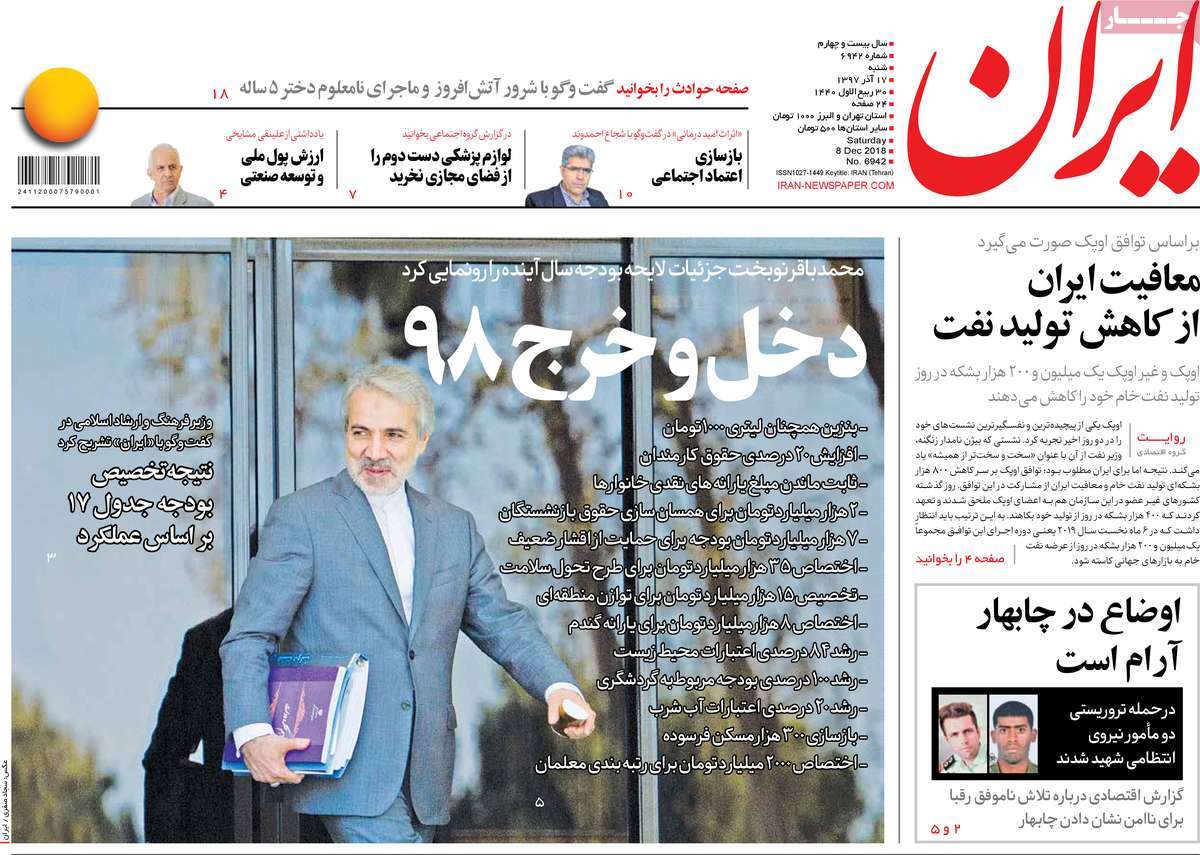 صفحه اول روزنامه های کشوری و استانی؛ شنبه 17 آذرماه 1397 /تصاویر