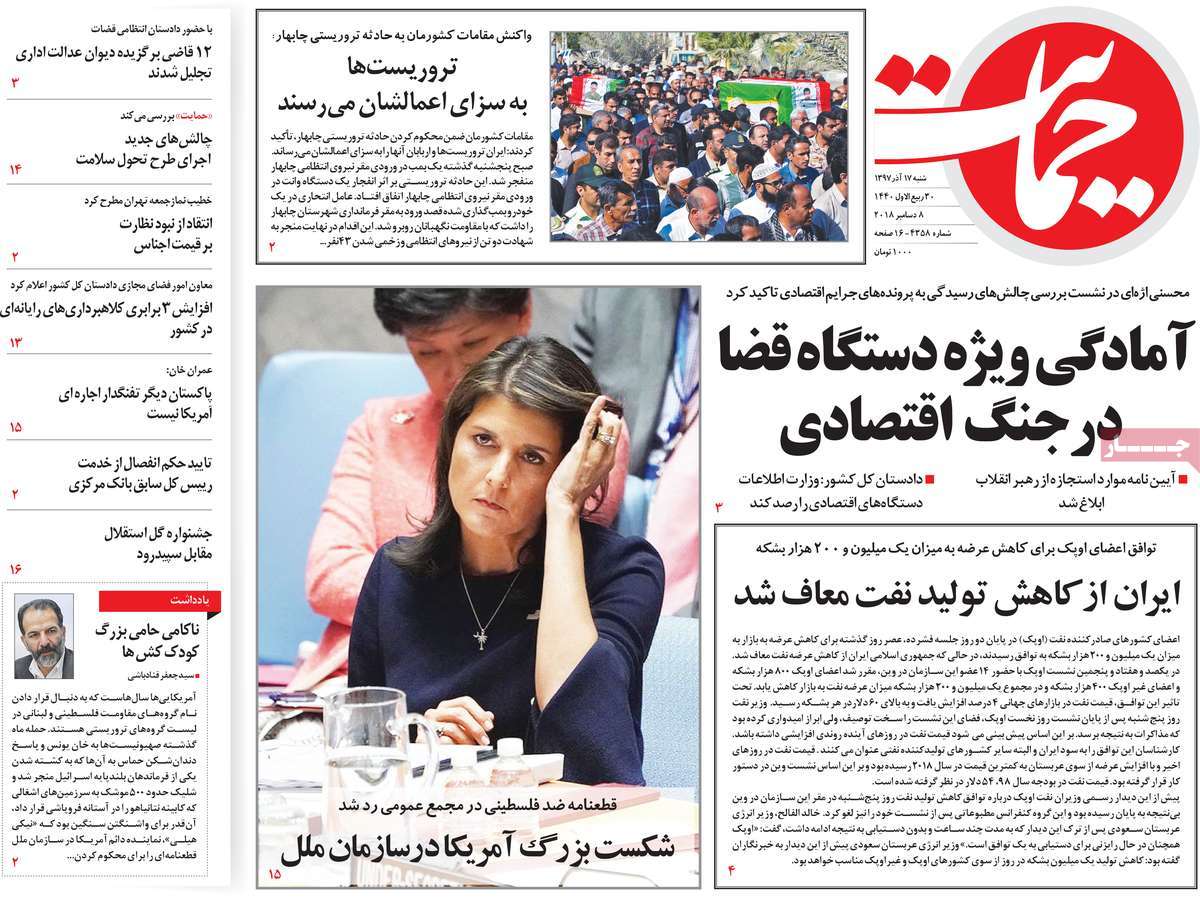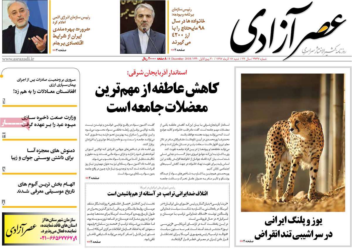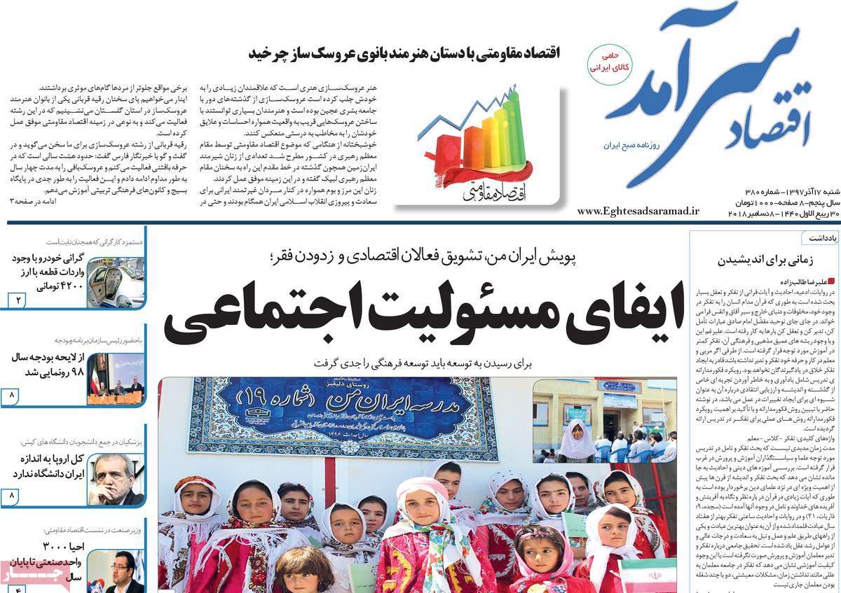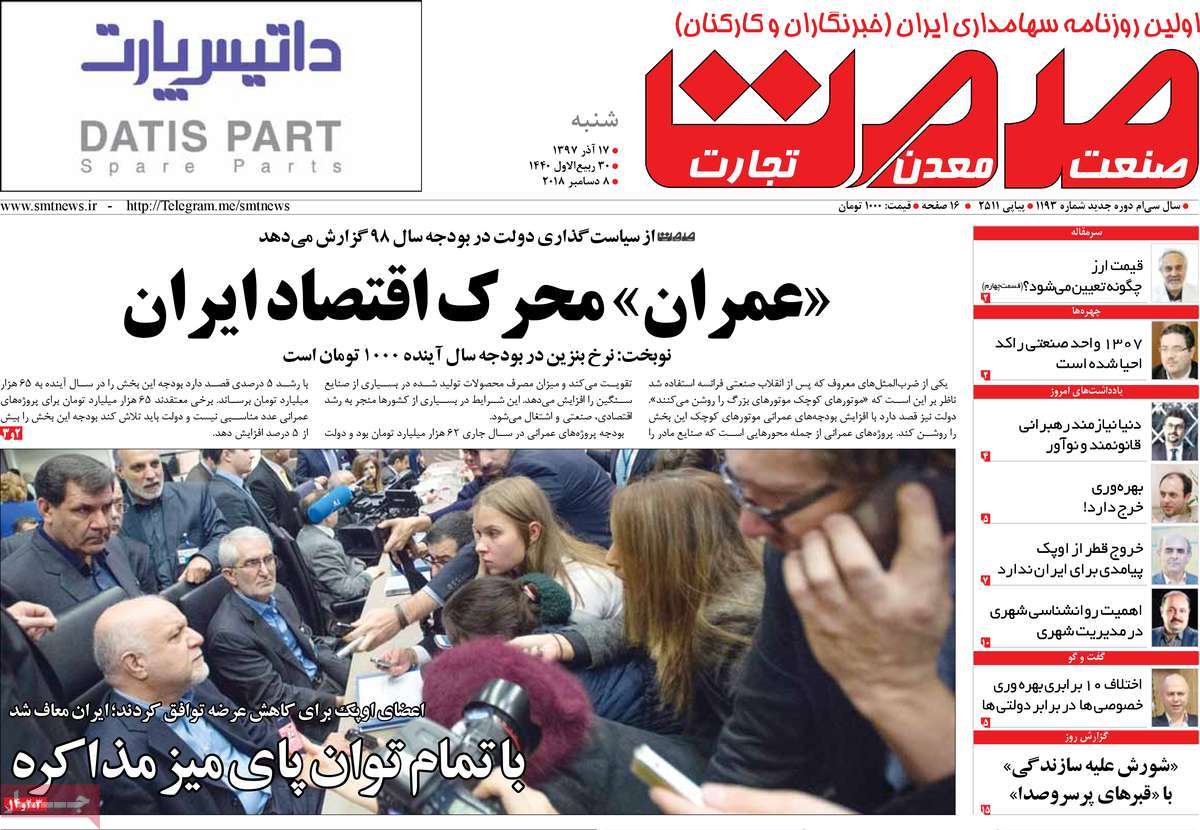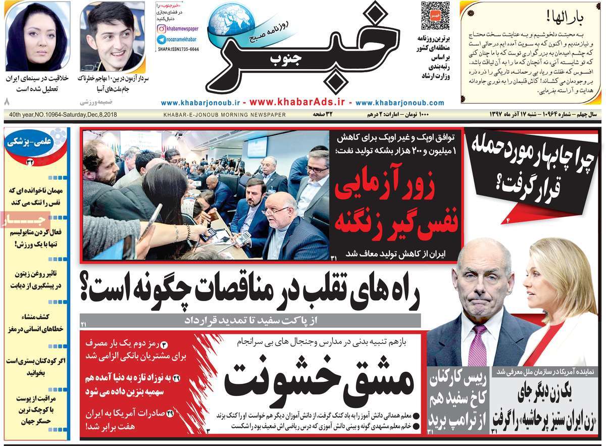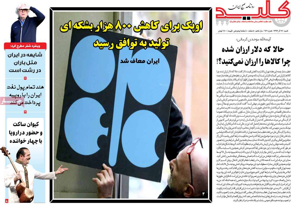 صفحه اول روزنامه های کشوری و استانی؛ شنبه 17 آذرماه 1397 /تصاویر