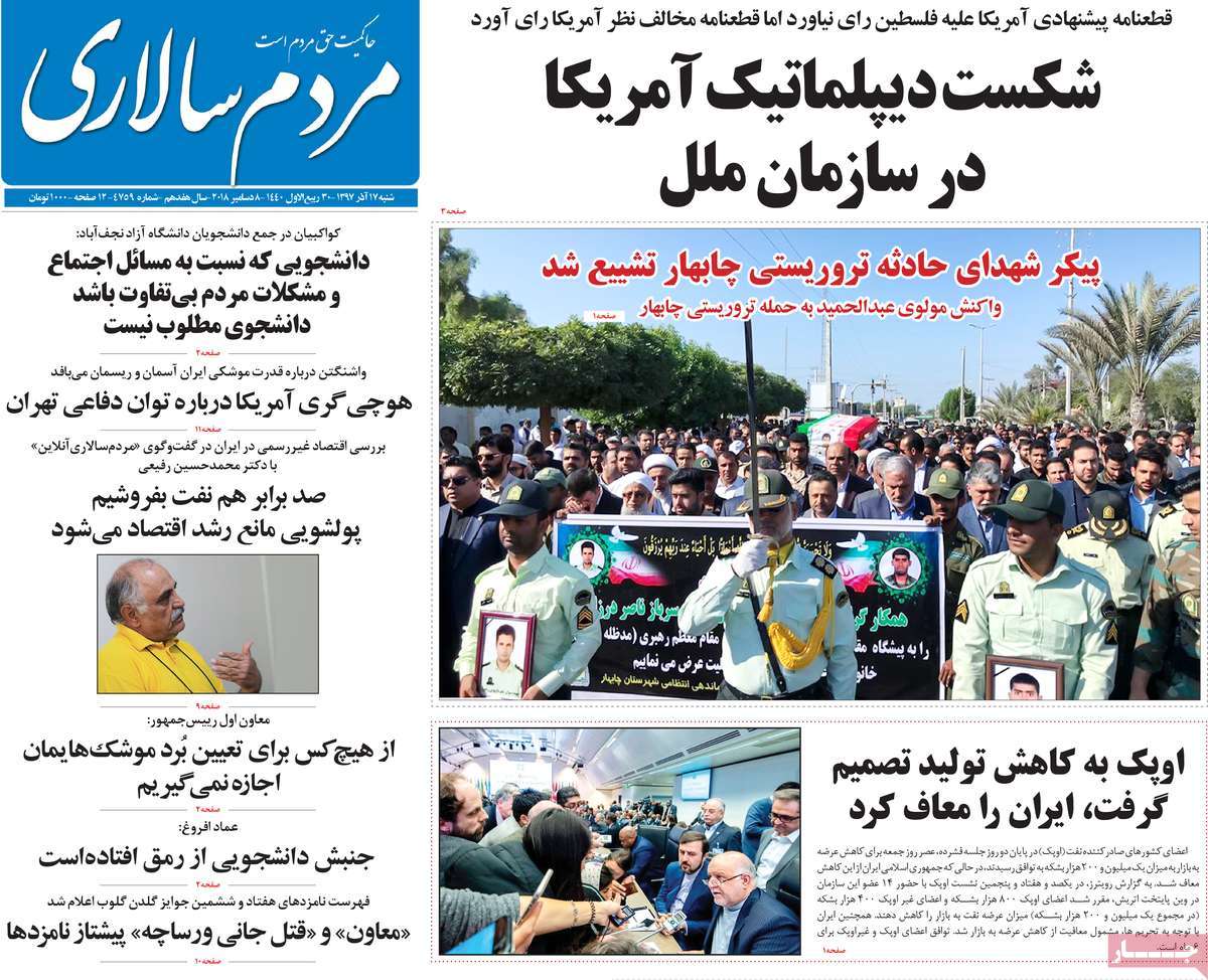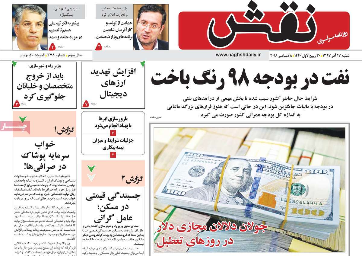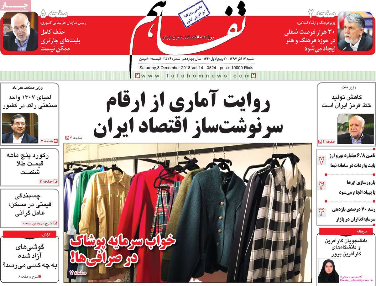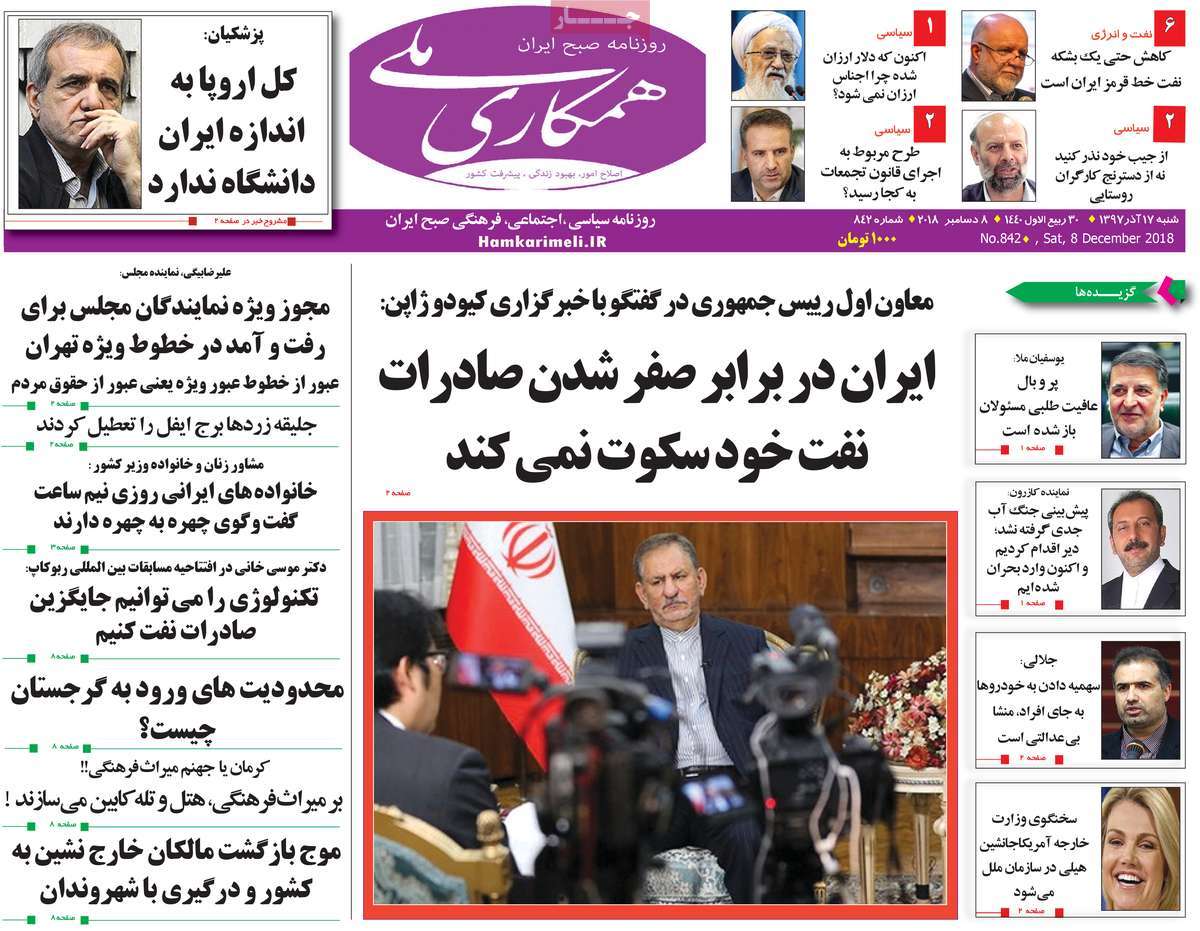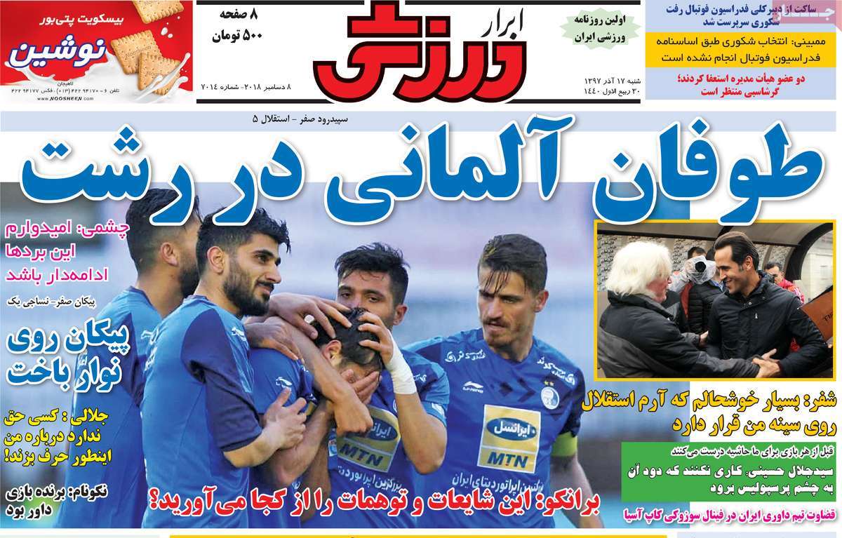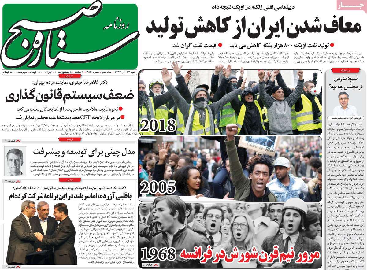 صفحه اول روزنامه های کشوری و استانی؛ شنبه 17 آذرماه 1397 /تصاویر