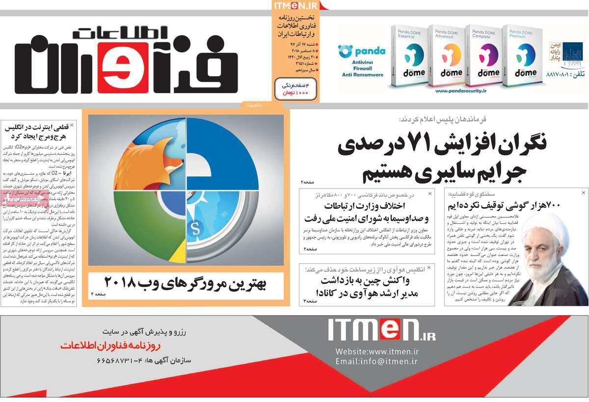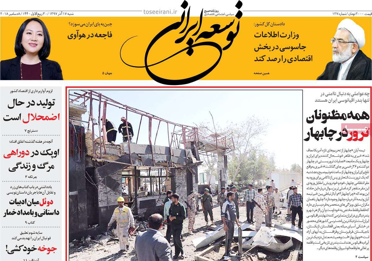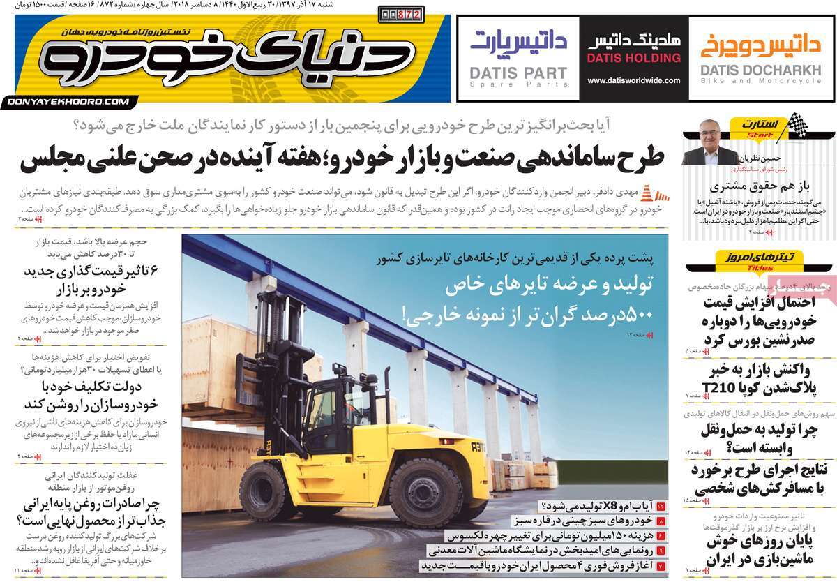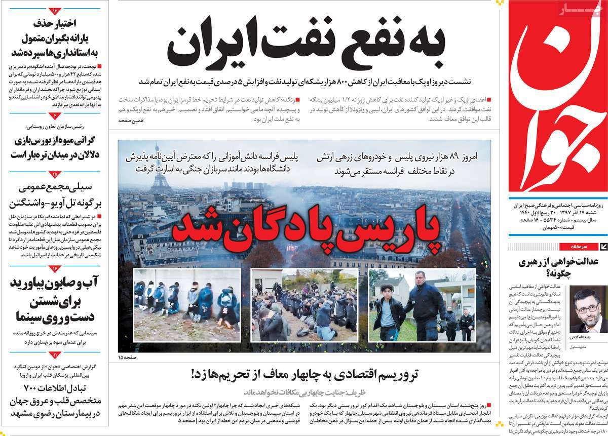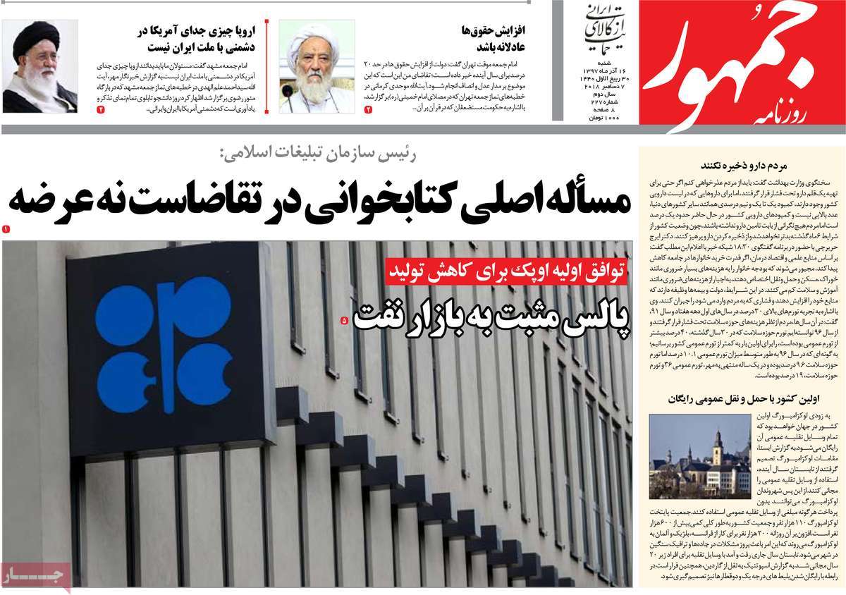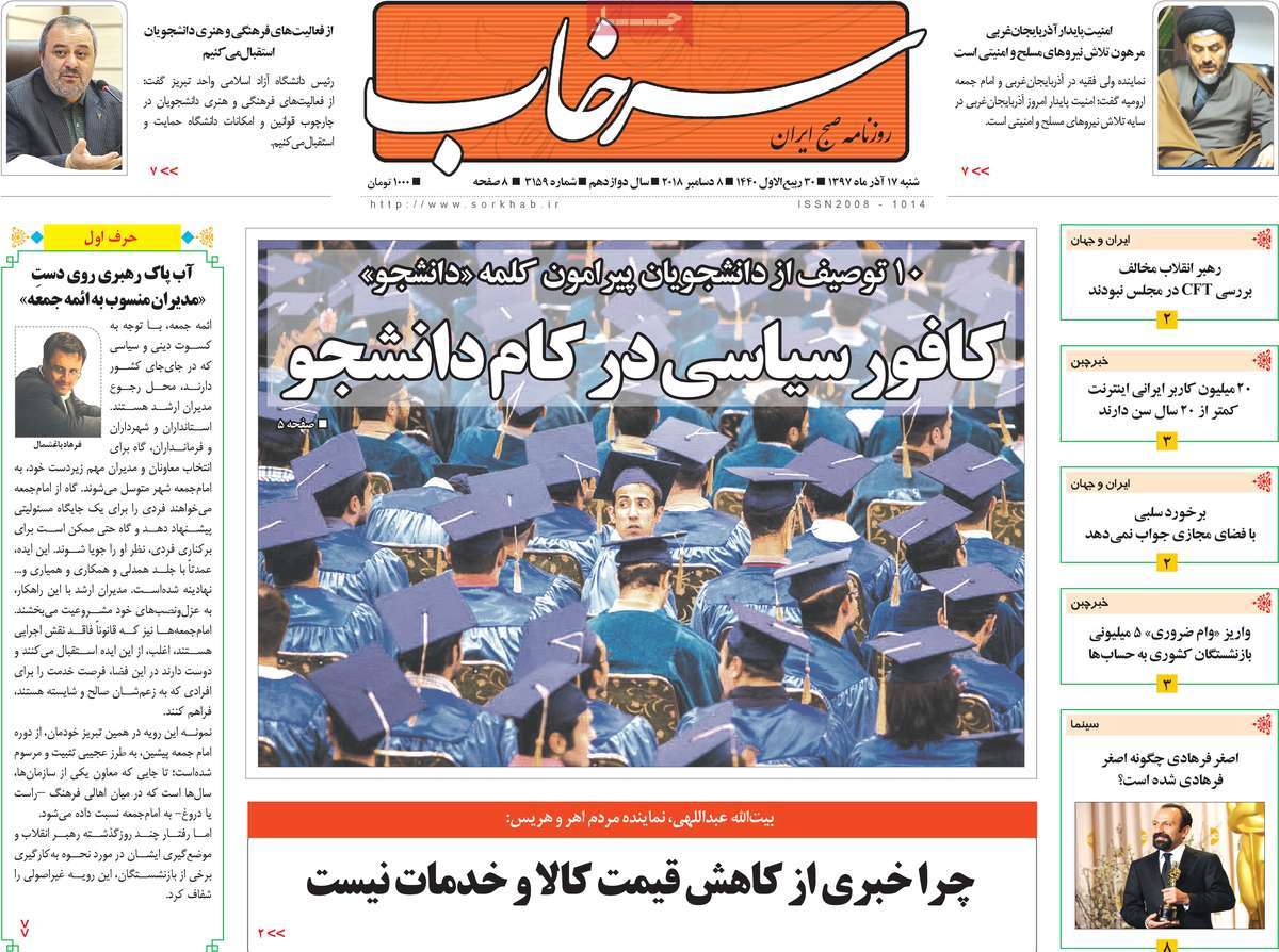 صفحه اول روزنامه های کشوری و استانی؛ شنبه 17 آذرماه 1397 /تصاویر