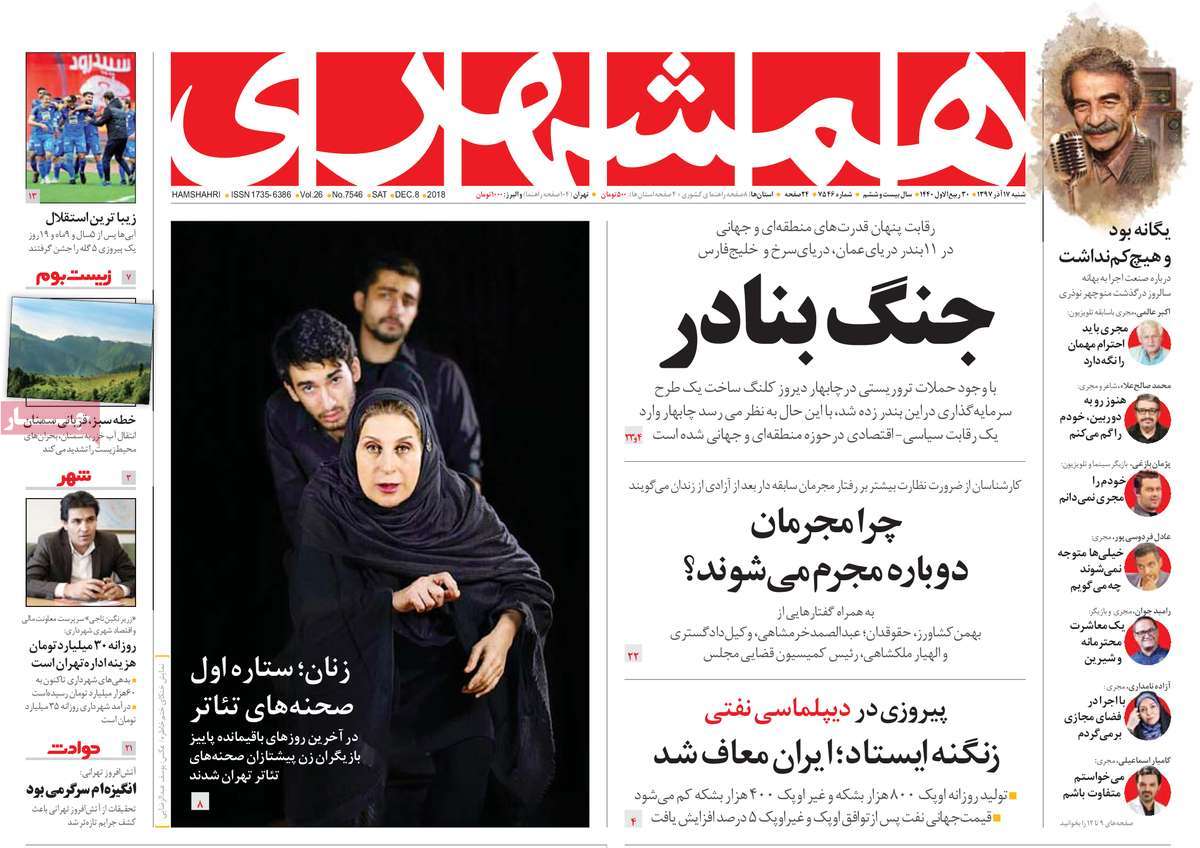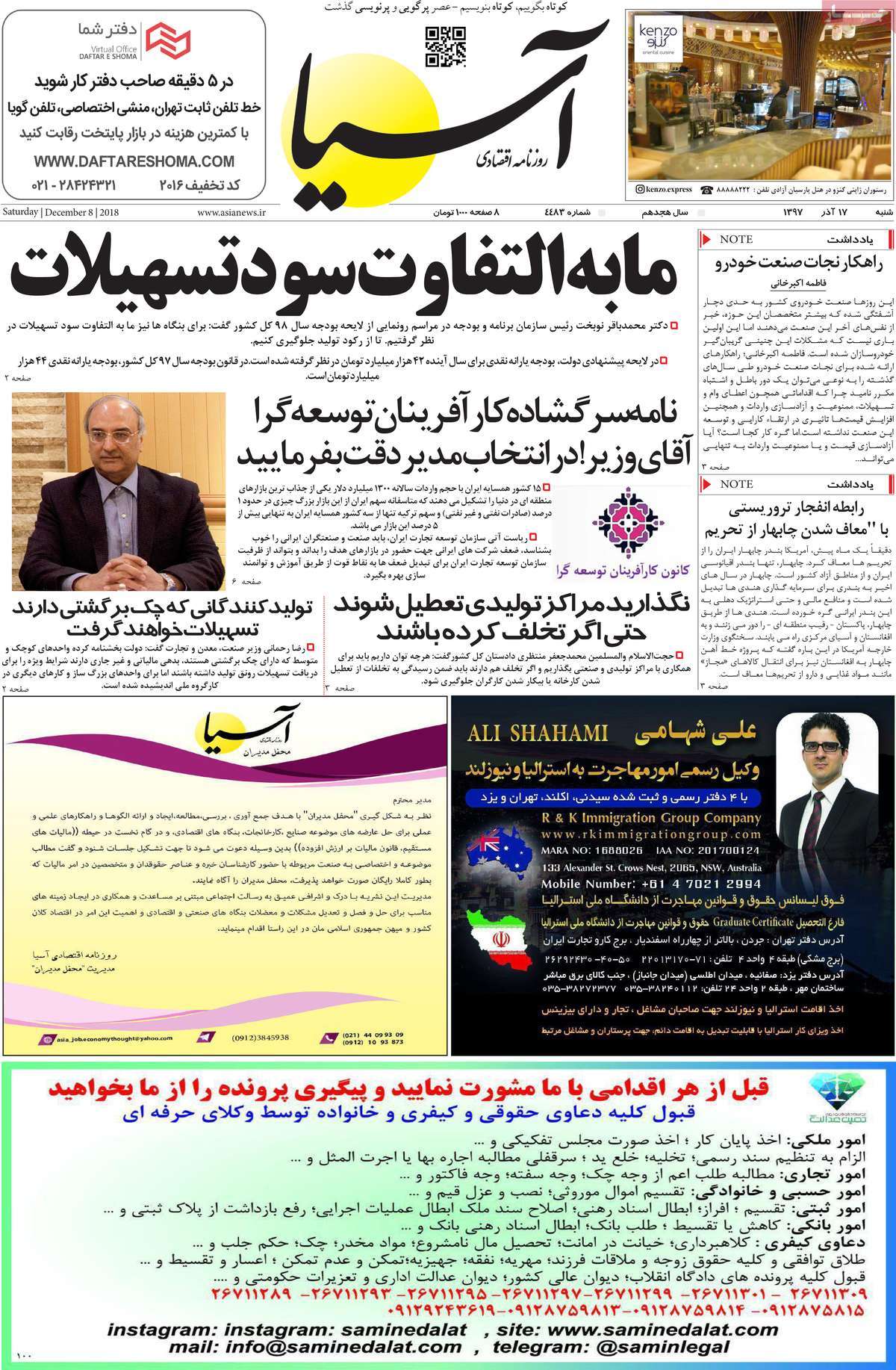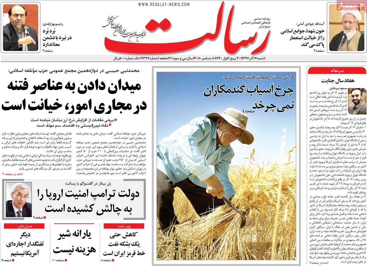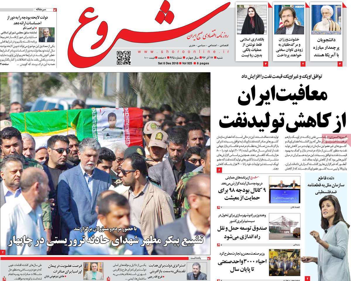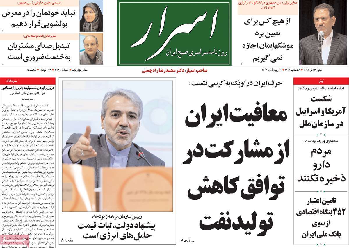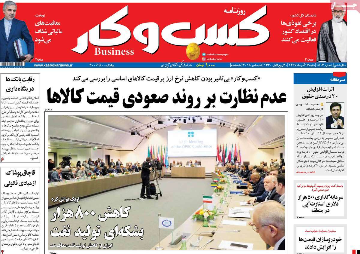 صفحه اول روزنامه های کشوری و استانی؛ شنبه 17 آذرماه 1397 /تصاویر