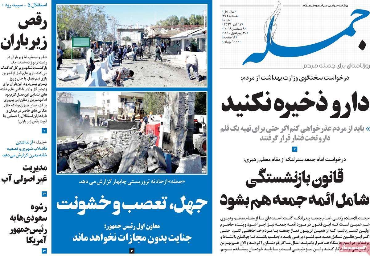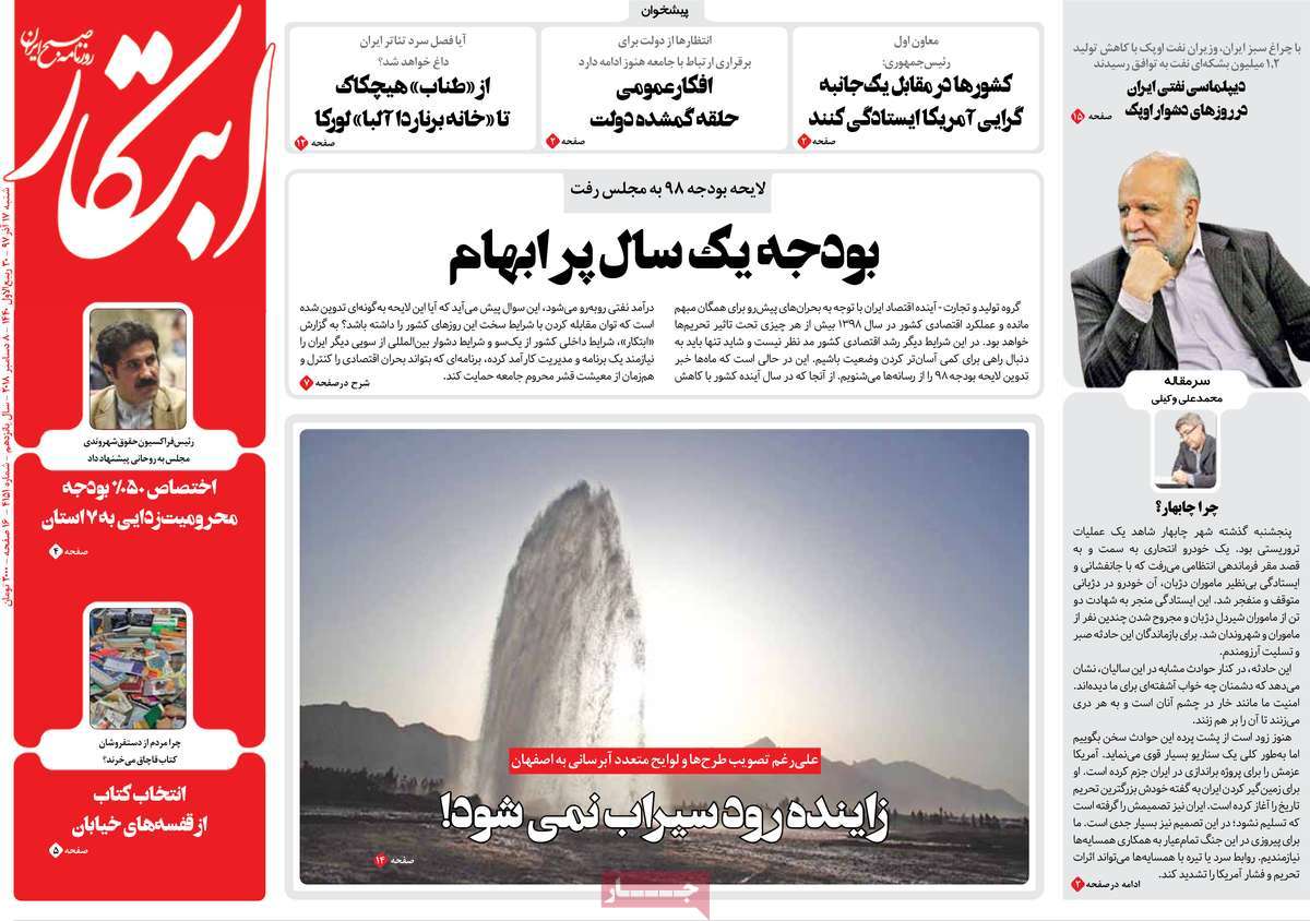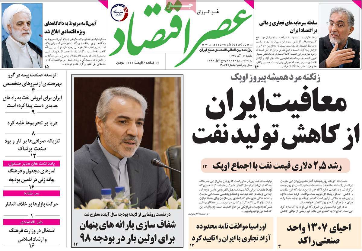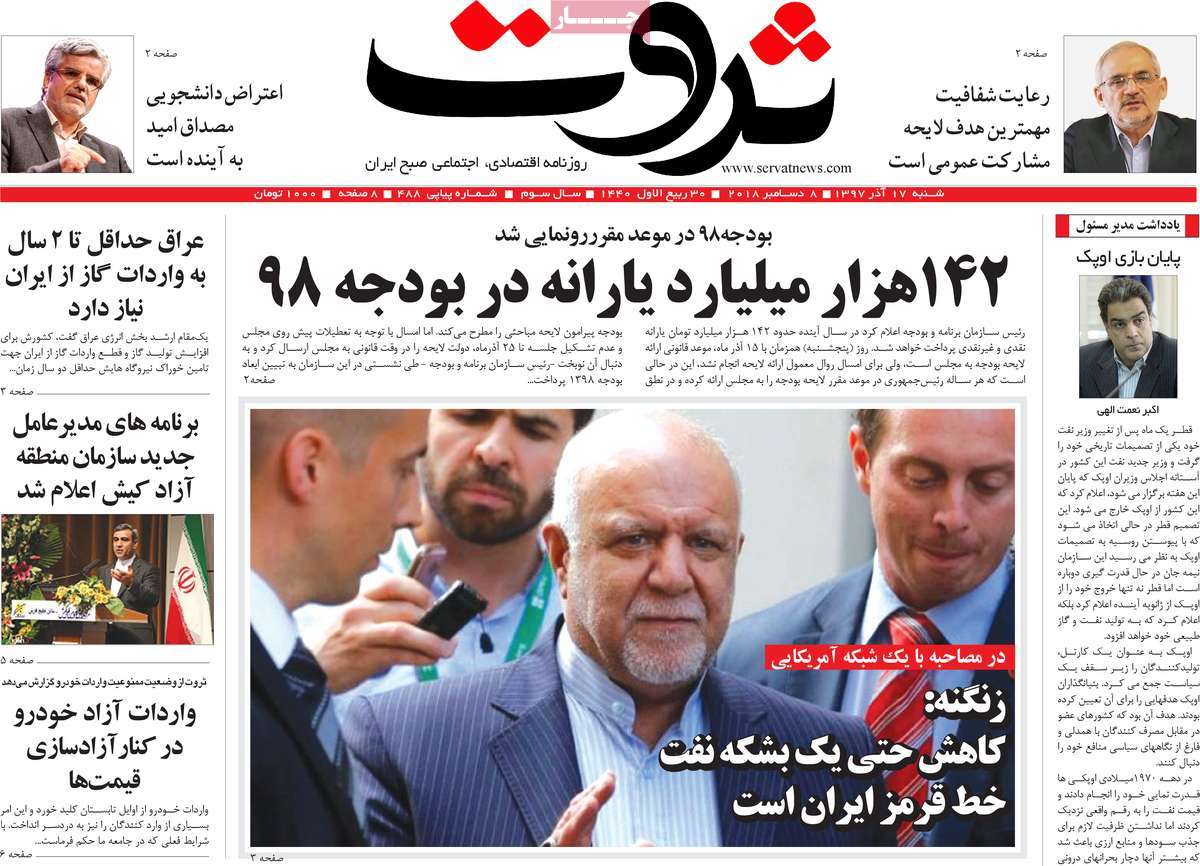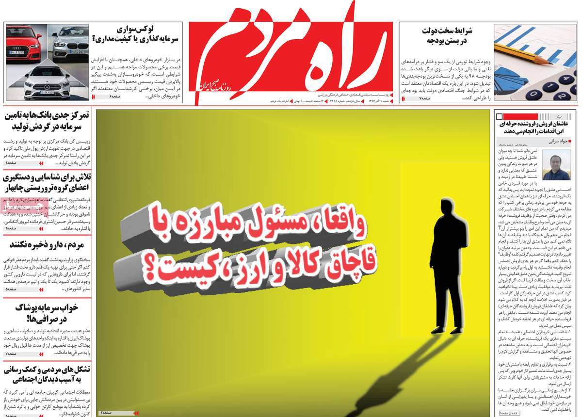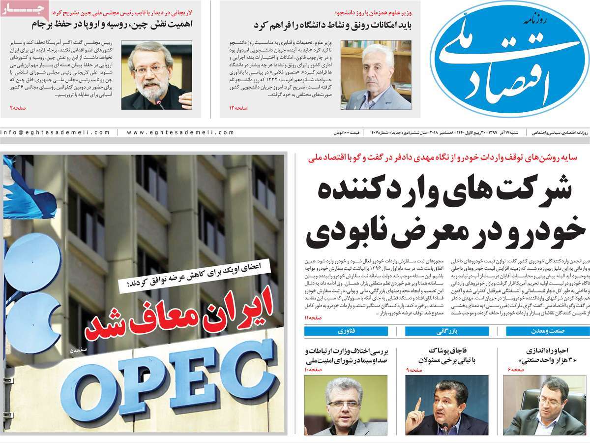 صفحه اول روزنامه های کشوری و استانی؛ شنبه 17 آذرماه 1397 /تصاویر