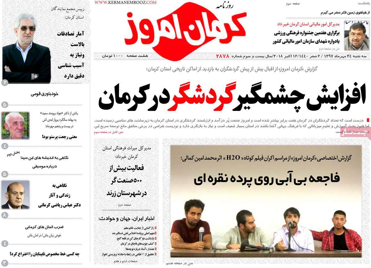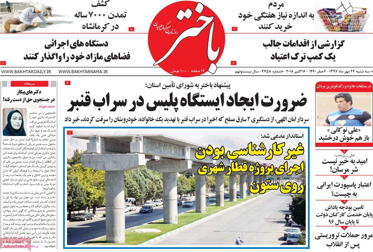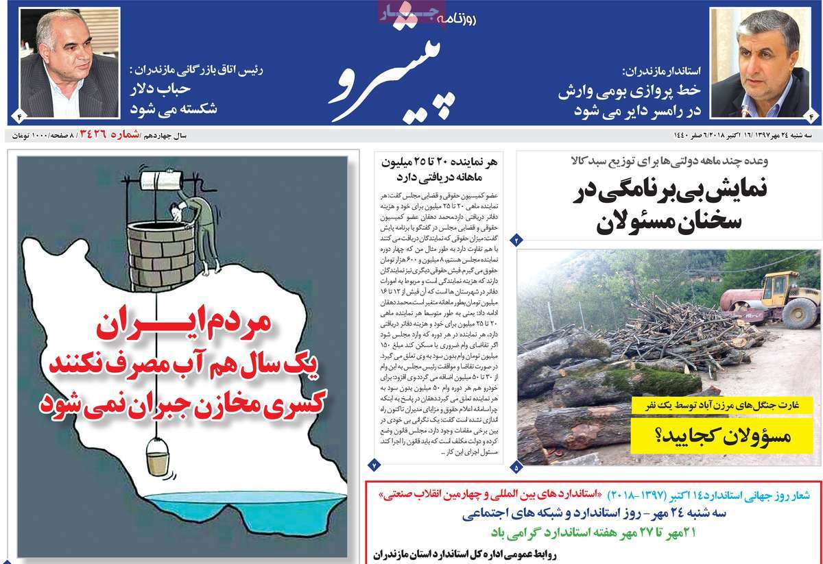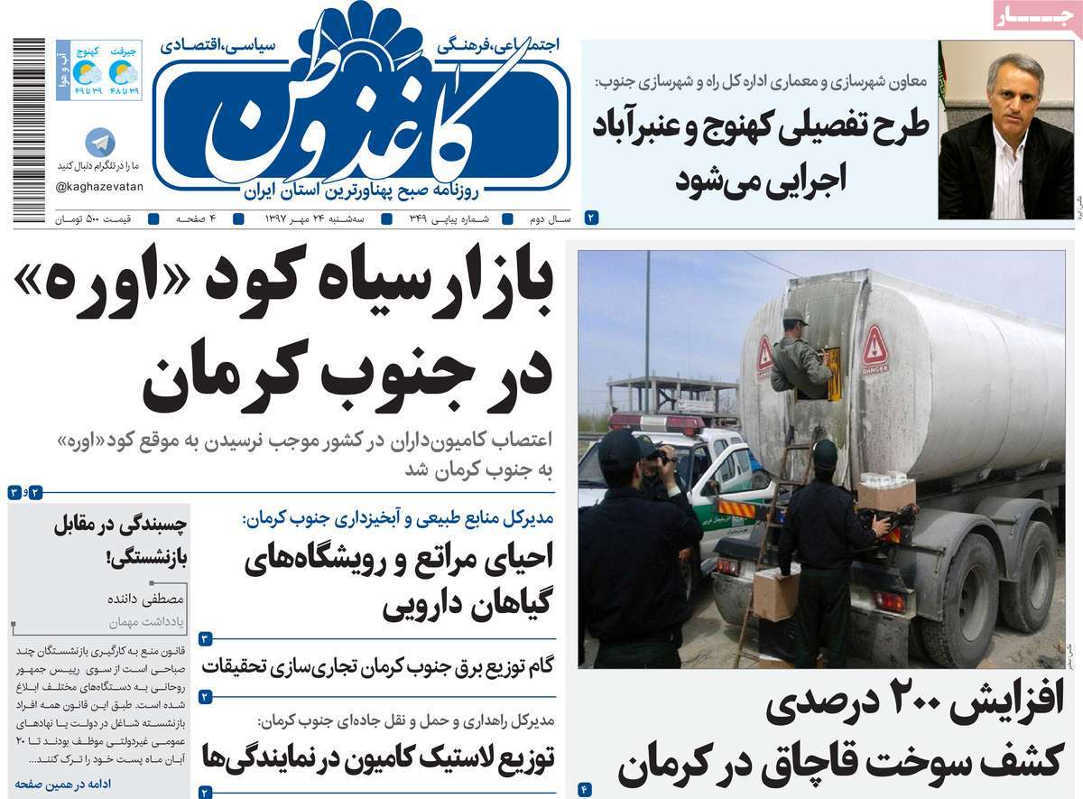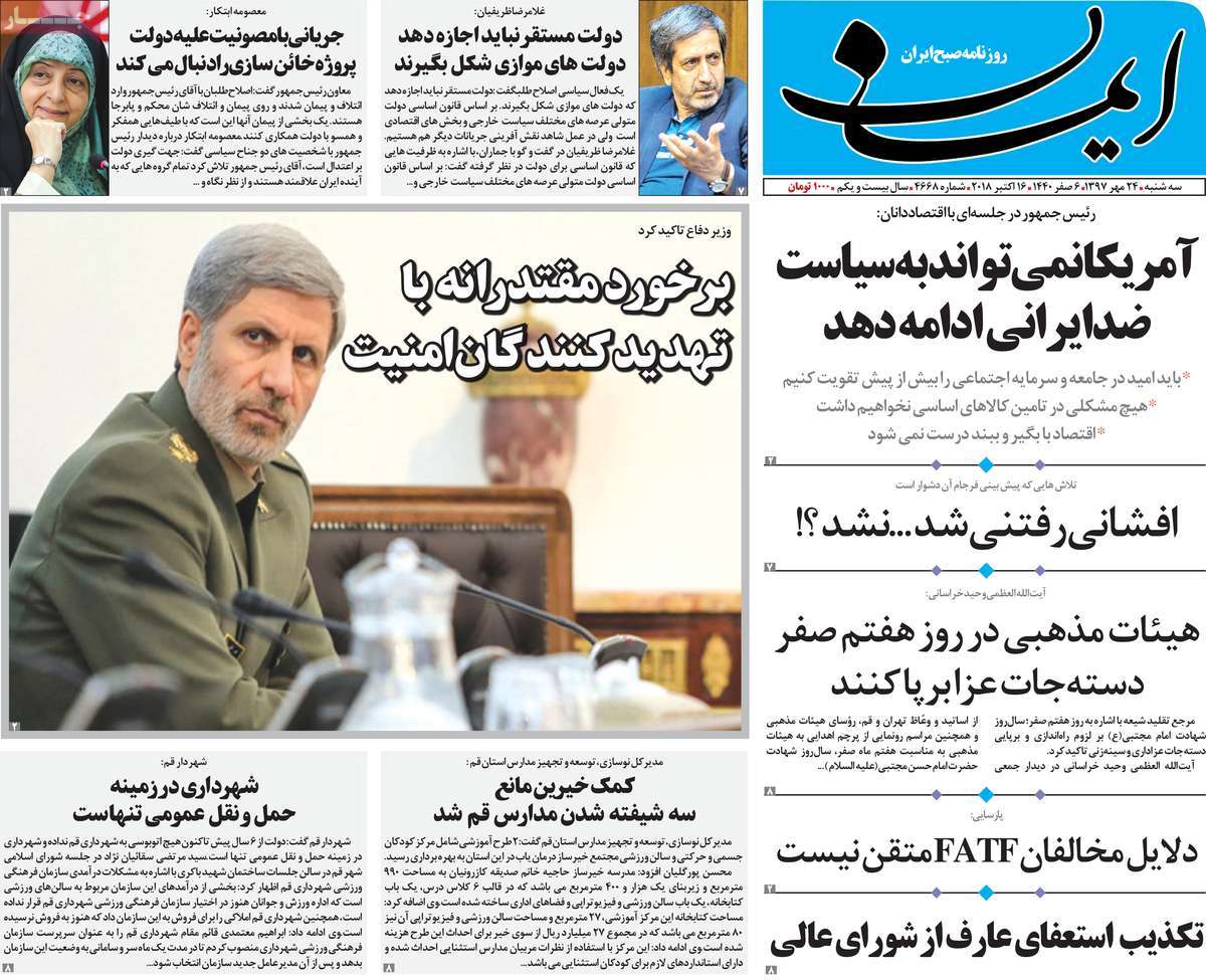 صفحه اول روزنامه های کشوری و استانی؛سه شنبه 24 مهرماه1397 /تصاویر