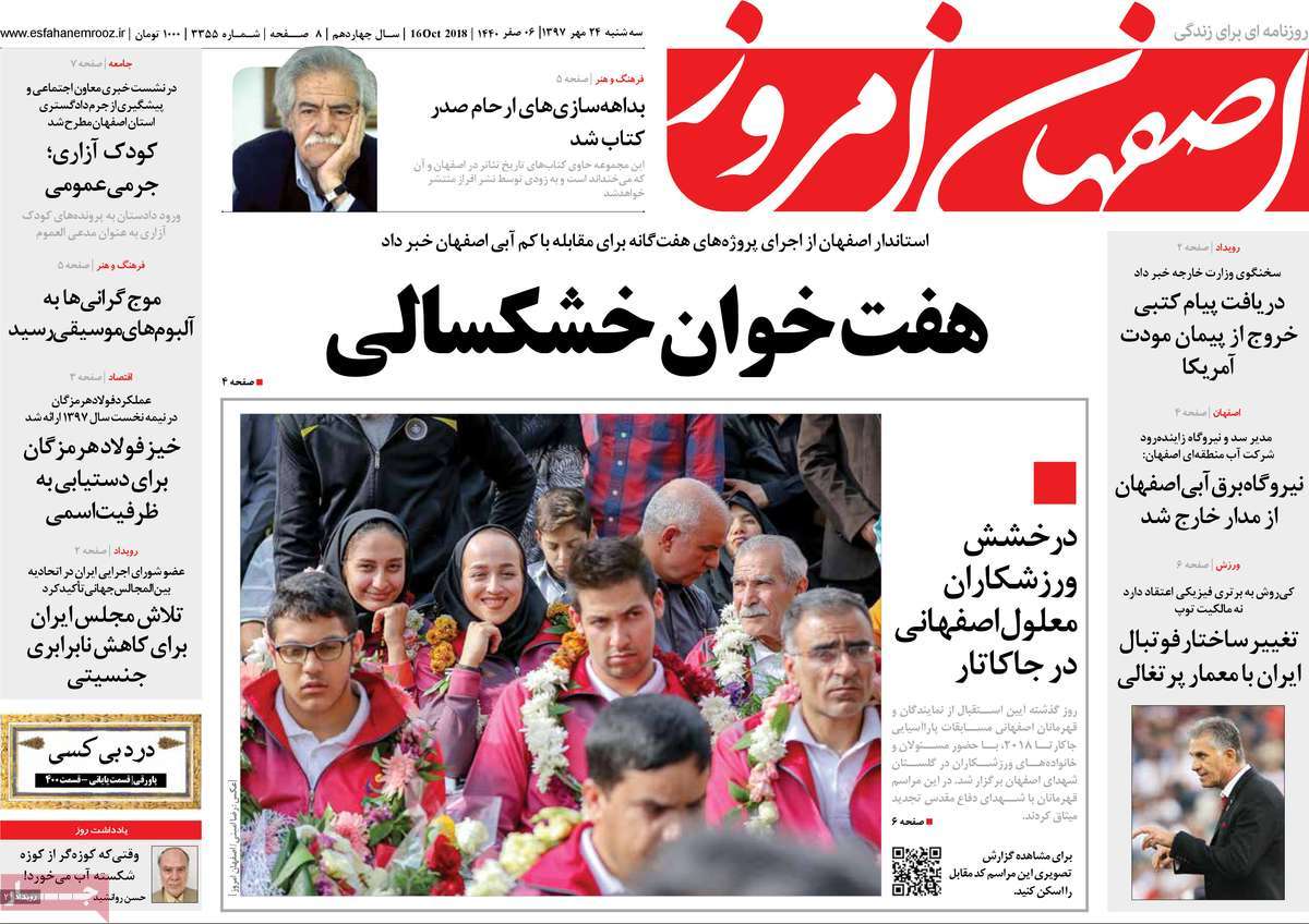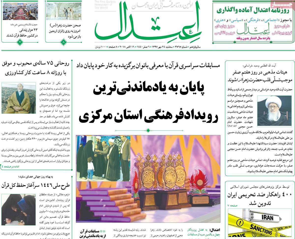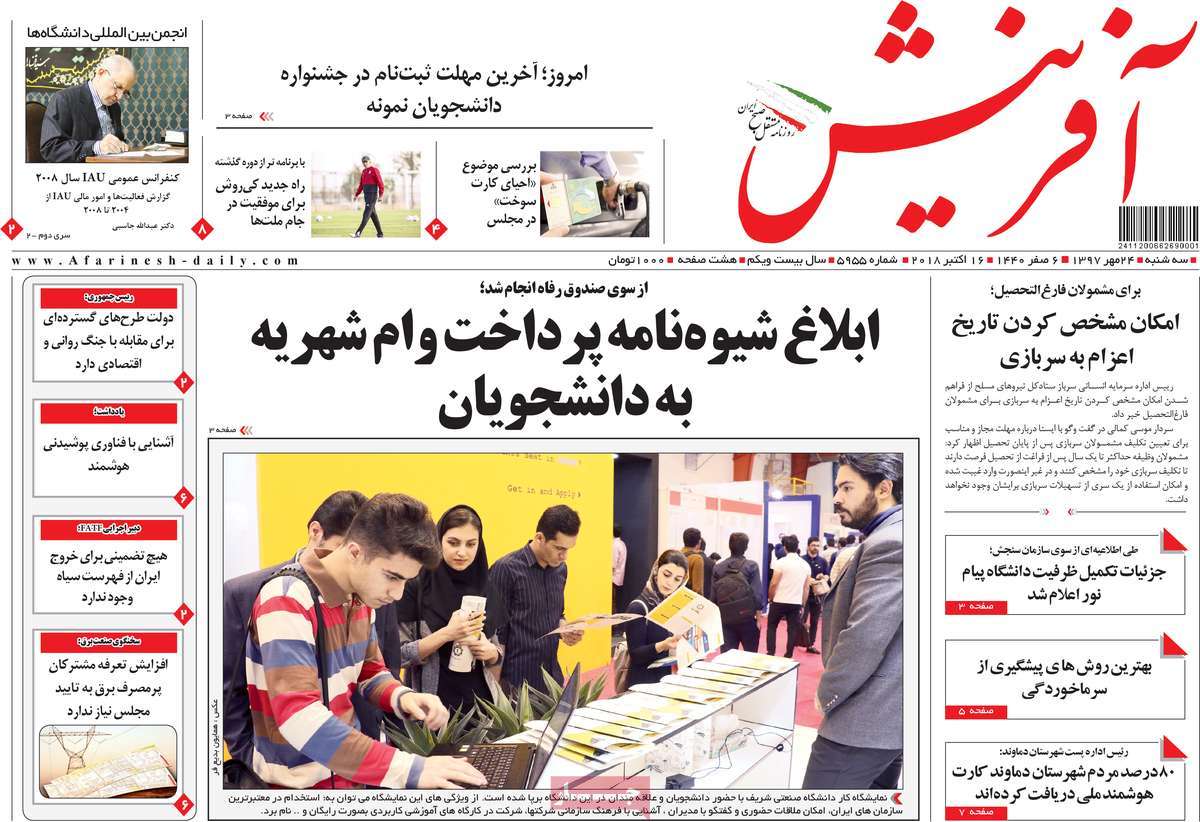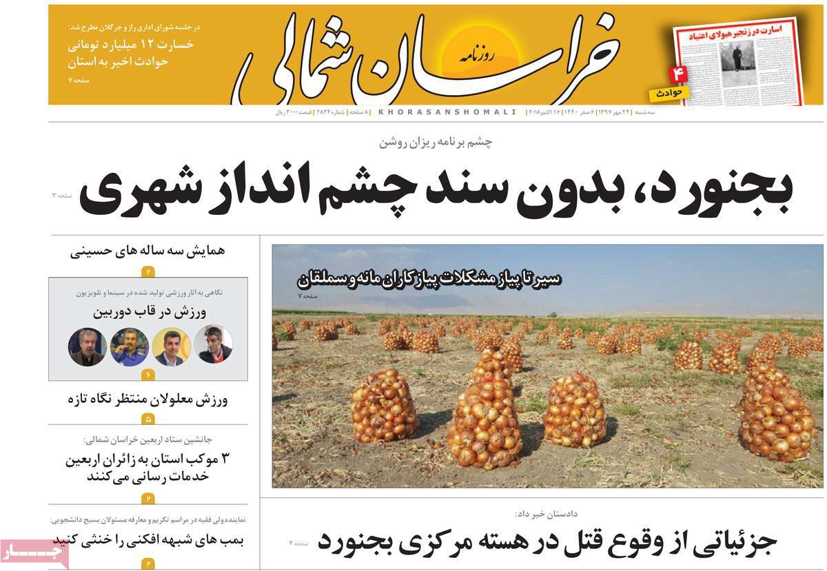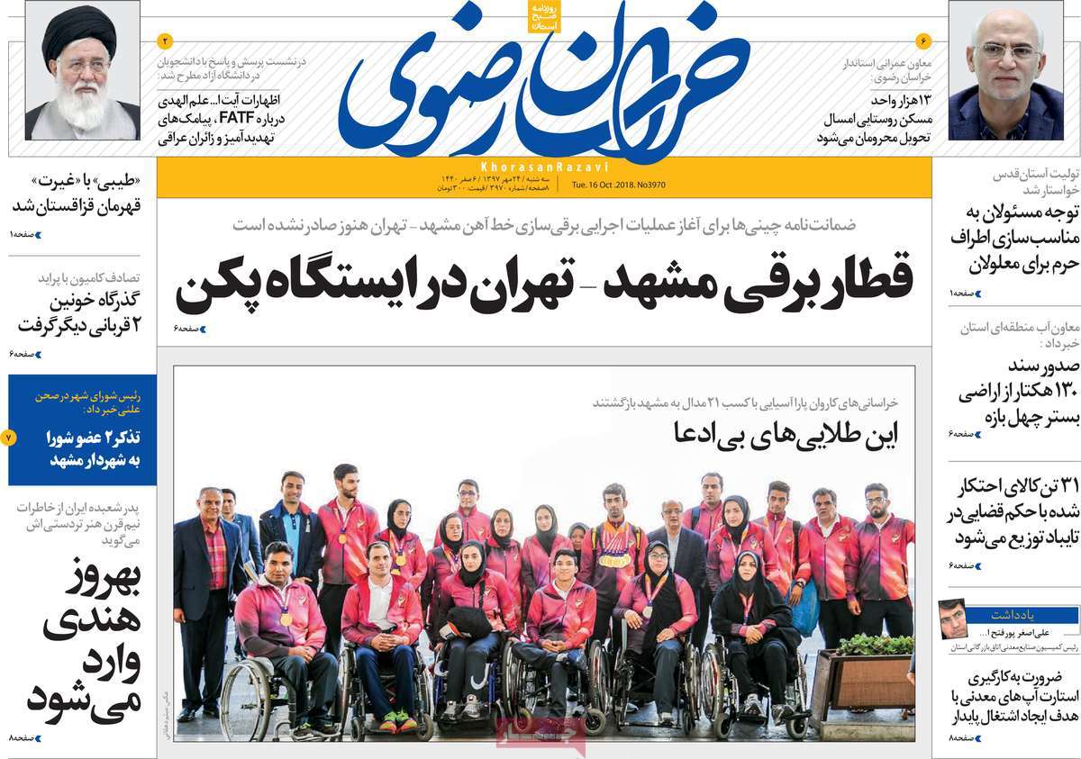 صفحه اول روزنامه های کشوری و استانی؛سه شنبه 24 مهرماه1397 /تصاویر
