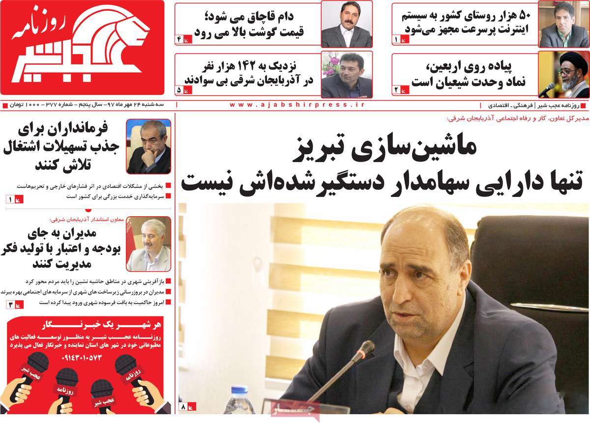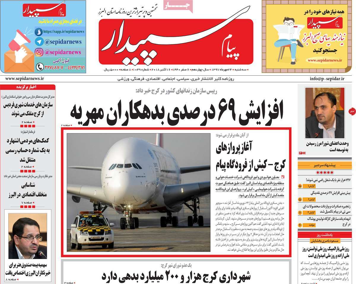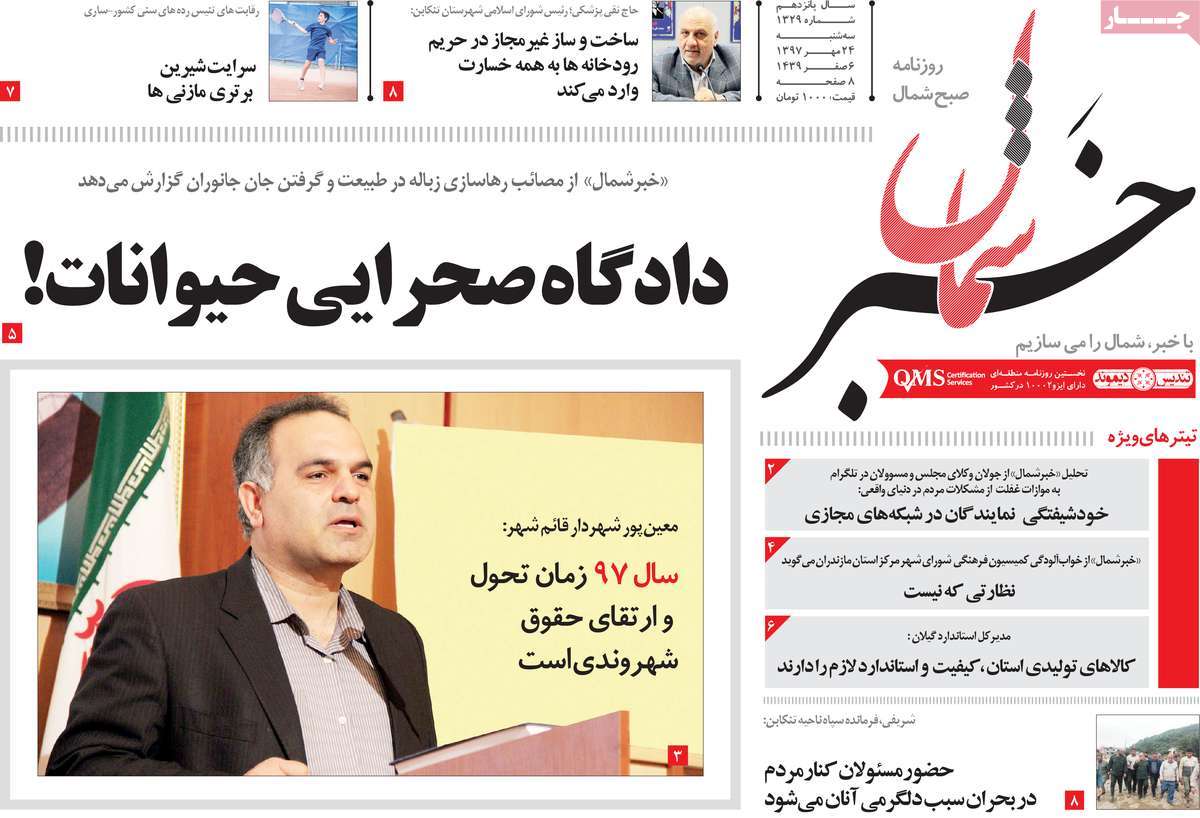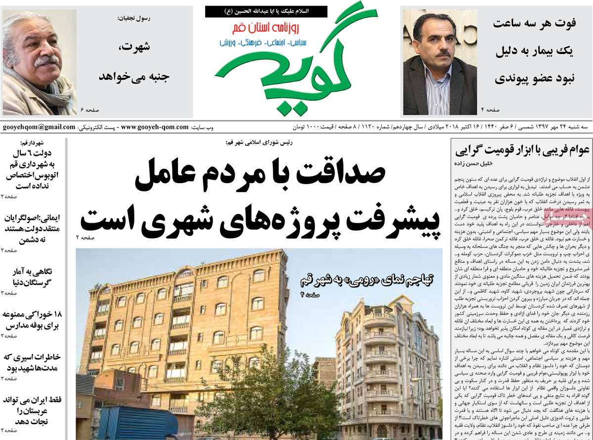 صفحه اول روزنامه های کشوری و استانی؛سه شنبه 24 مهرماه1397 /تصاویر